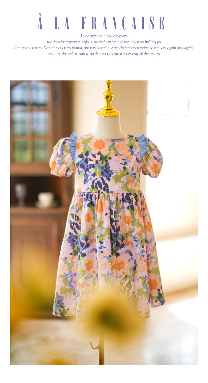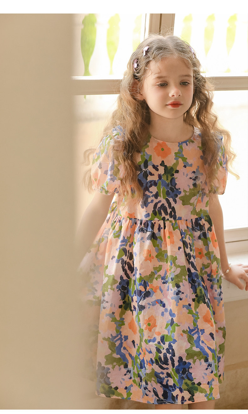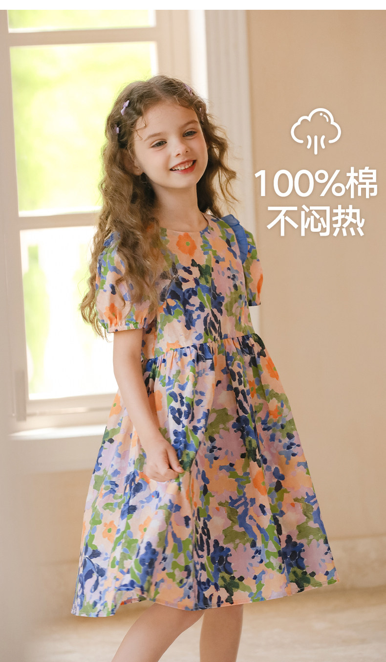 LittleNaive連衣裙女童浪漫甜美碎花裙子中大童度假風法式連衣裙