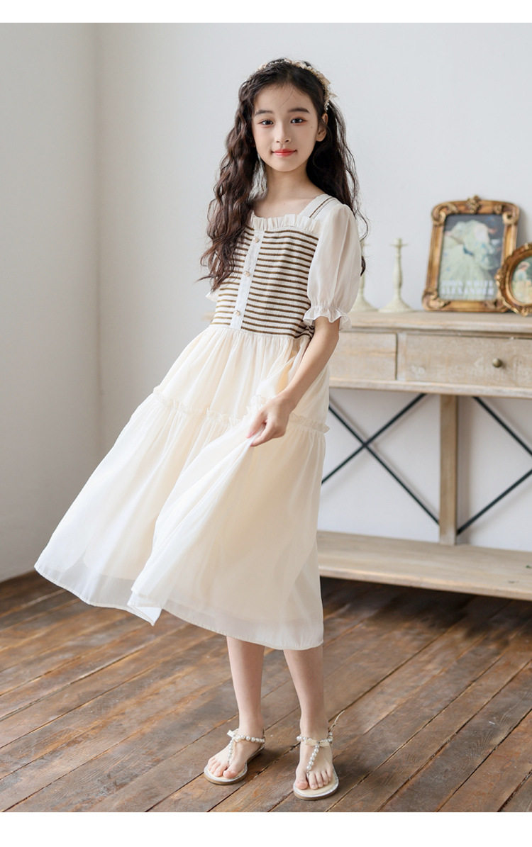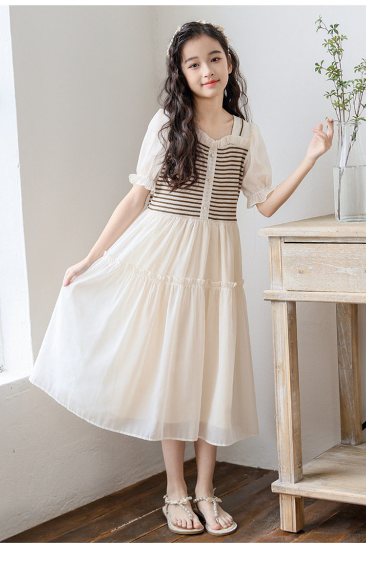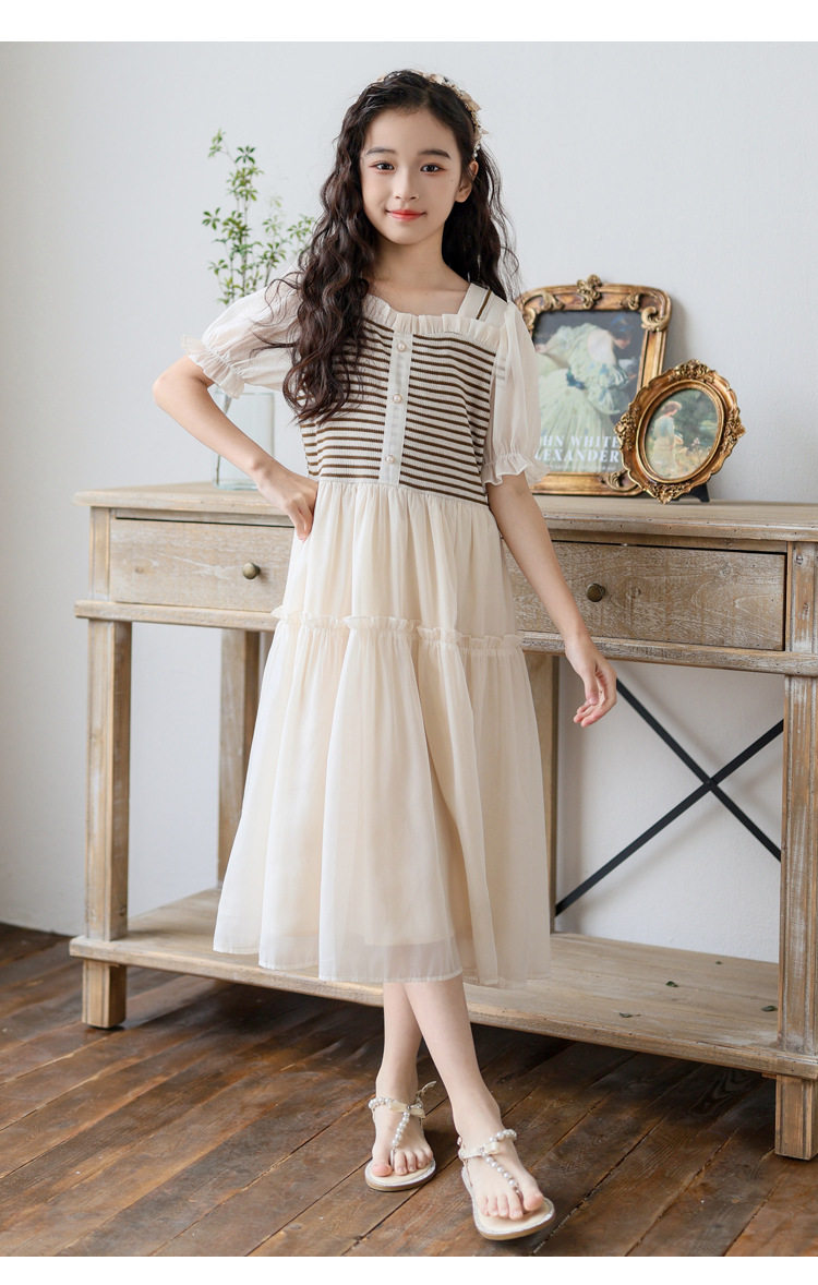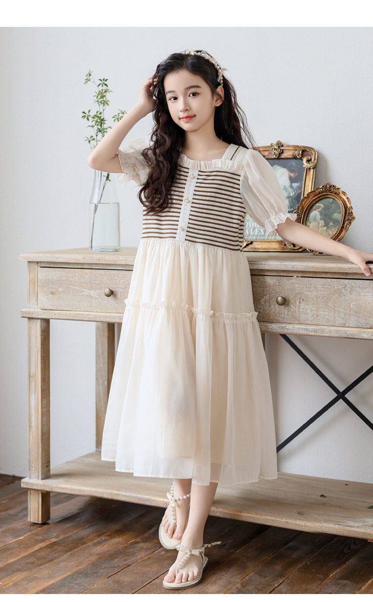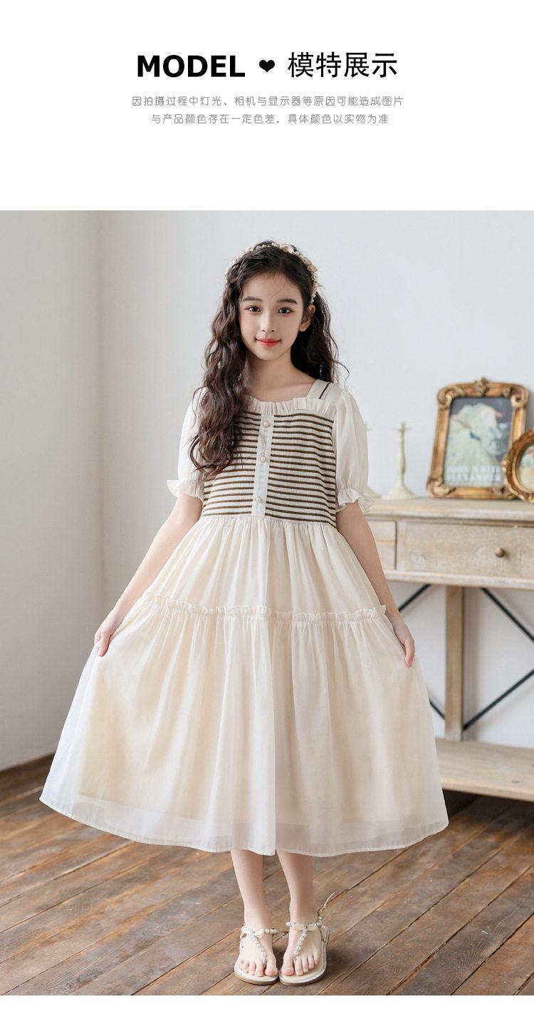 女童連衣裙夏裝2026新款洋氣中大童夏季假兩件短袖公主裙子初中生