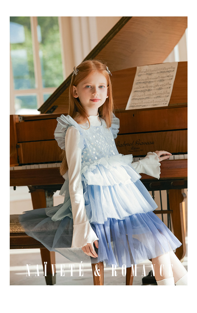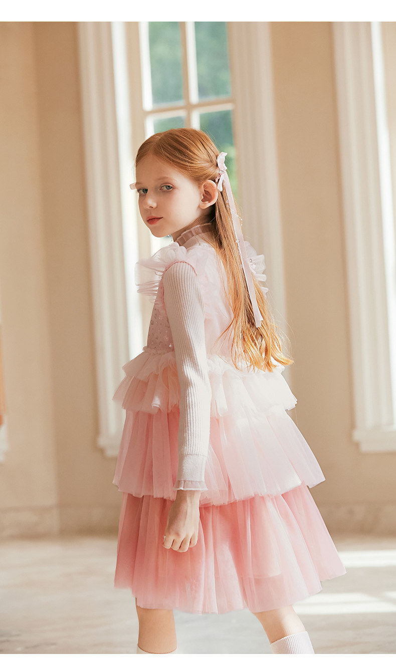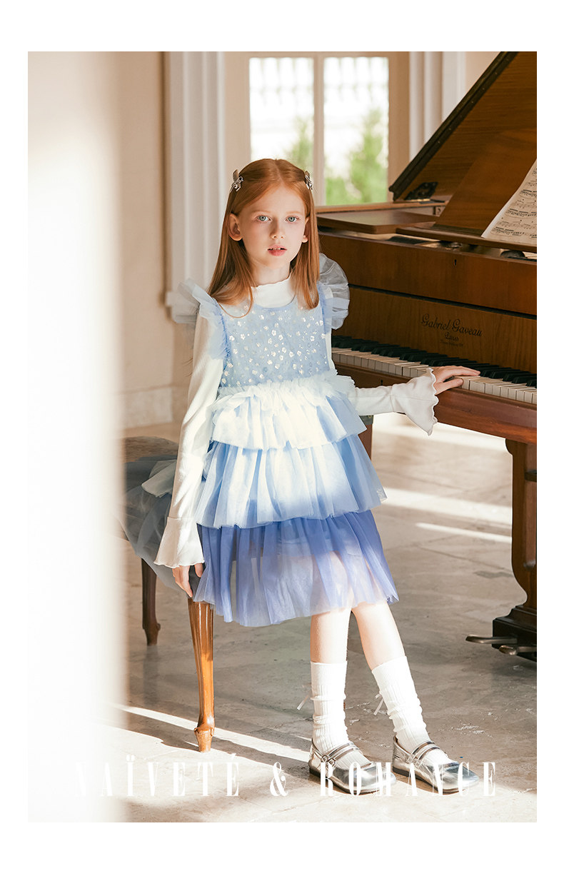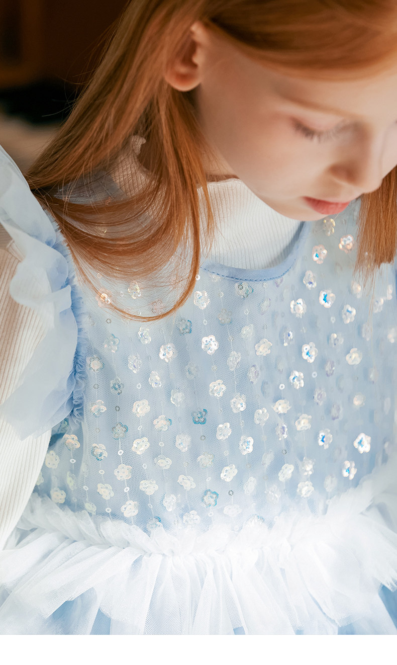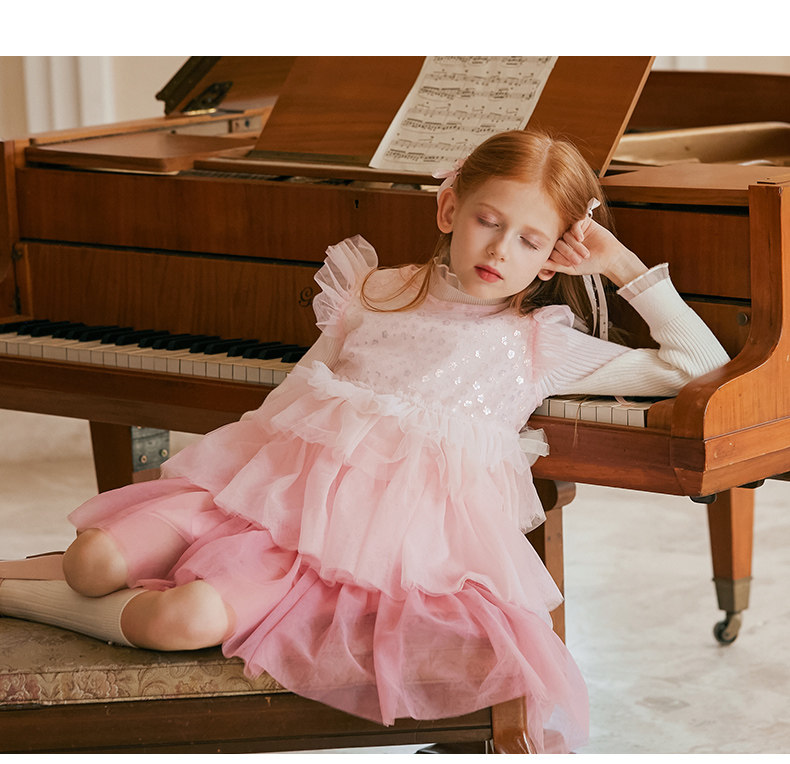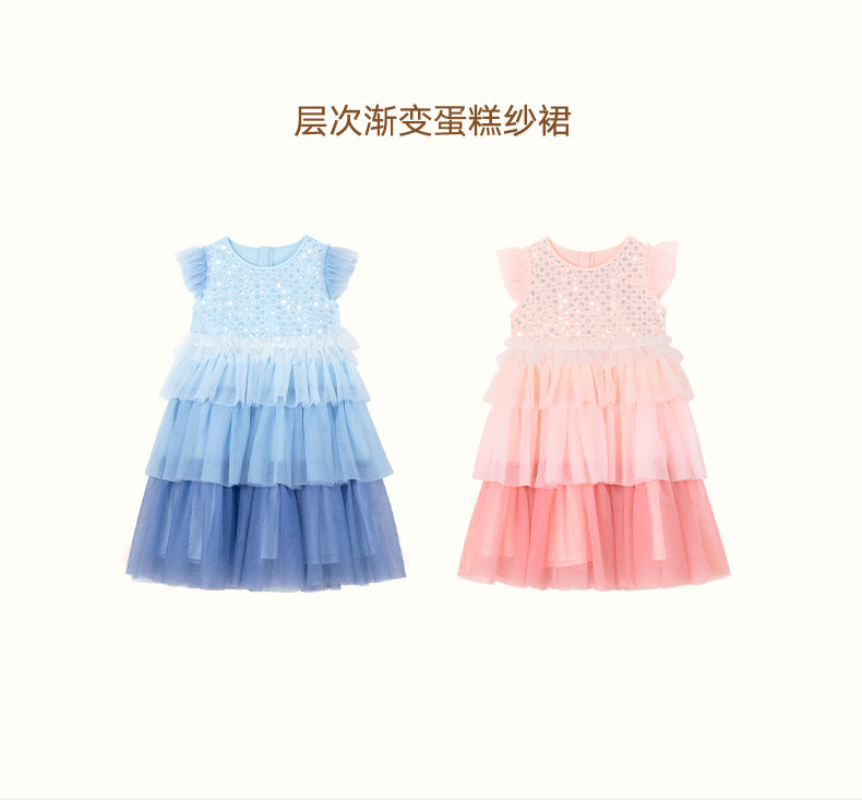 LittleNaive兒童禮服無袖漸變亮片網紗公主裙女童蛋糕連衣裙春秋