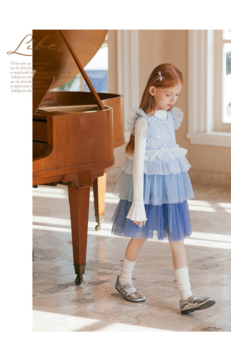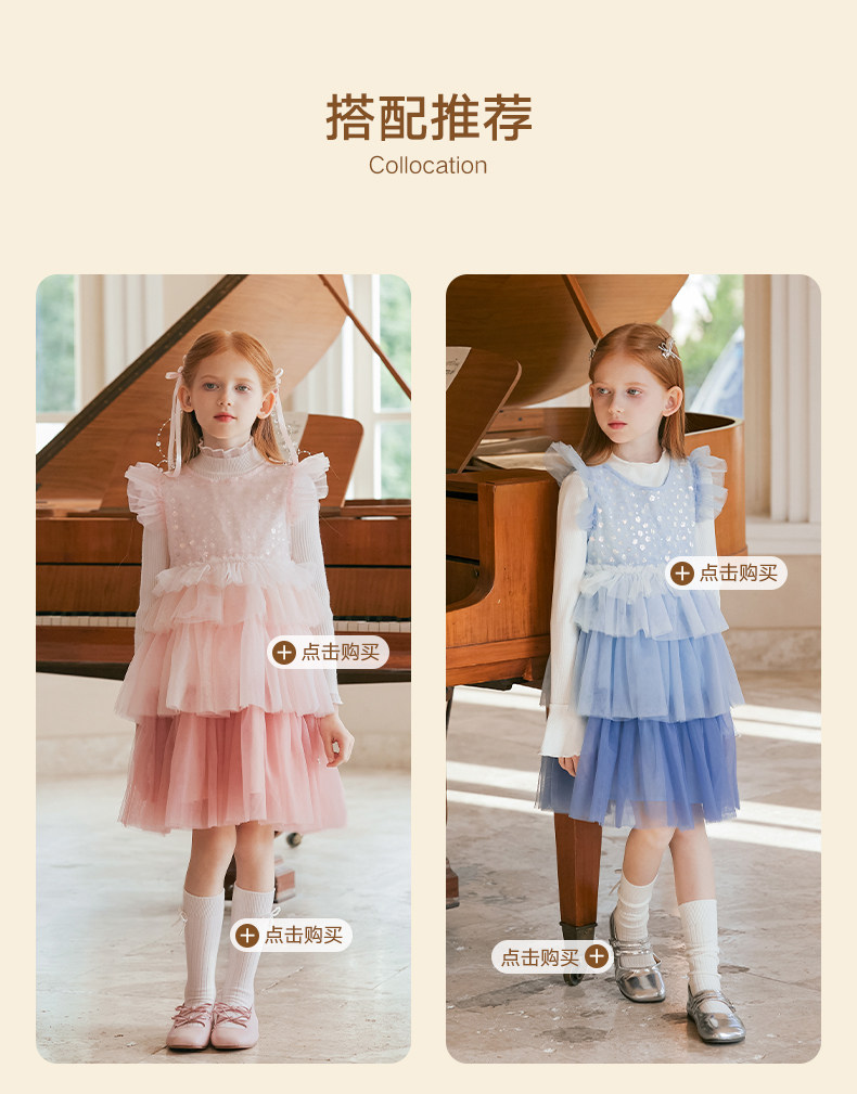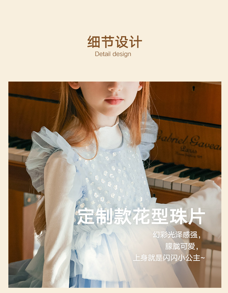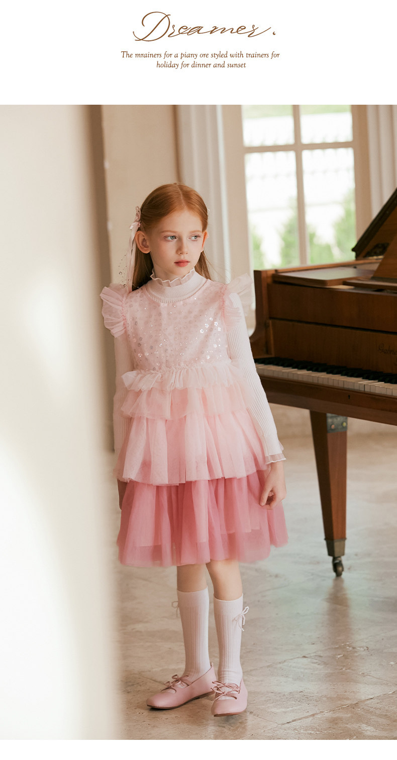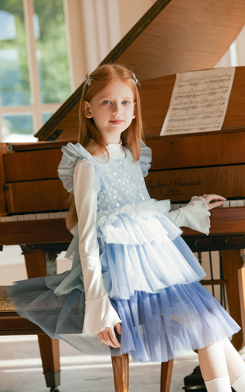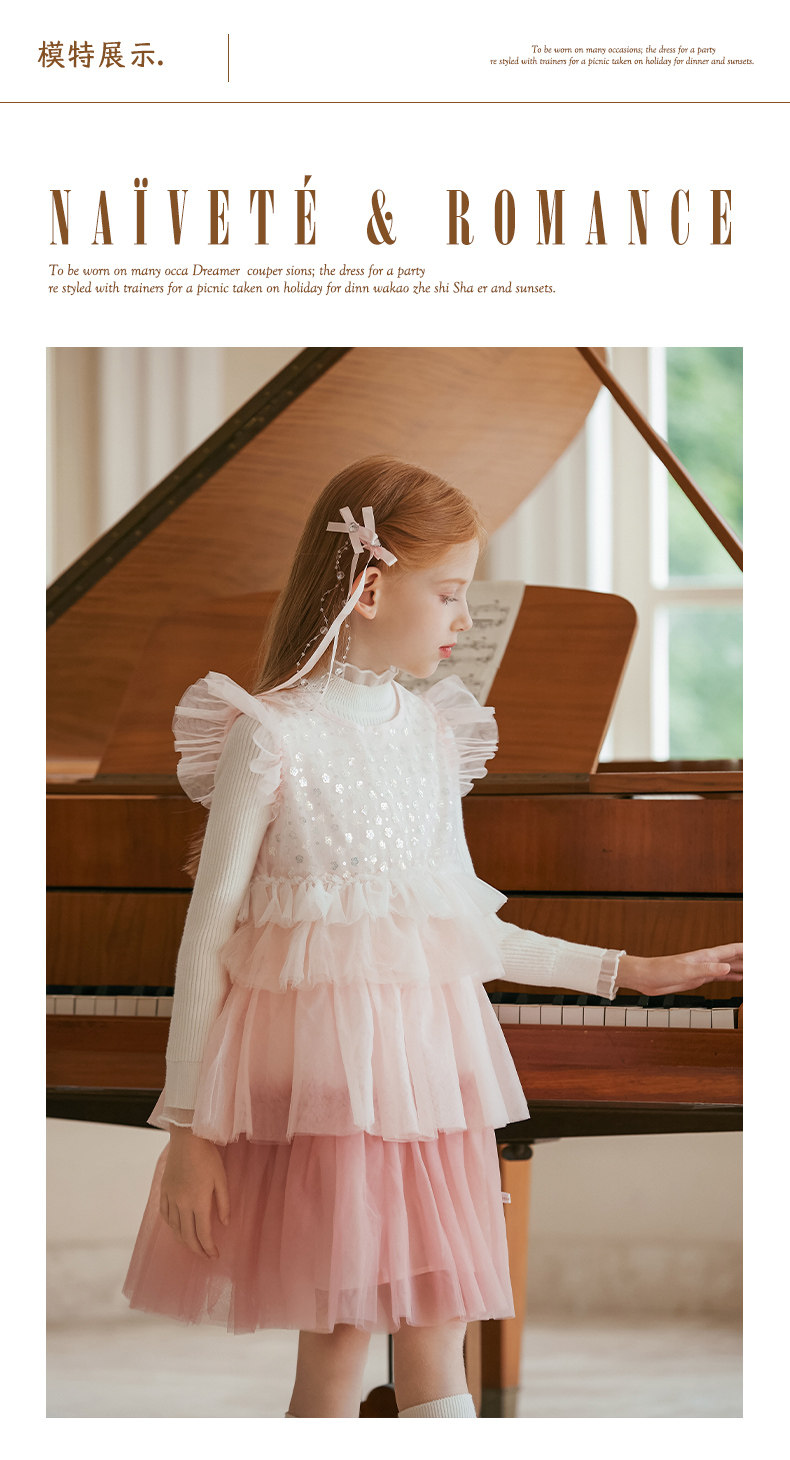 LittleNaive兒童禮服無袖漸變亮片網紗公主裙女童蛋糕連衣裙春秋
