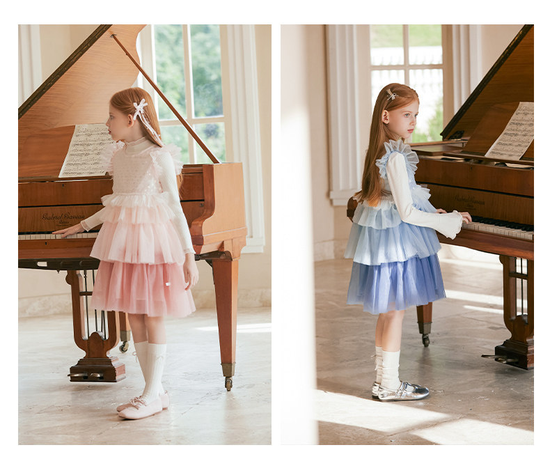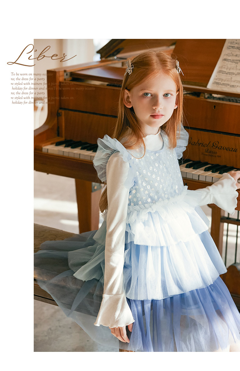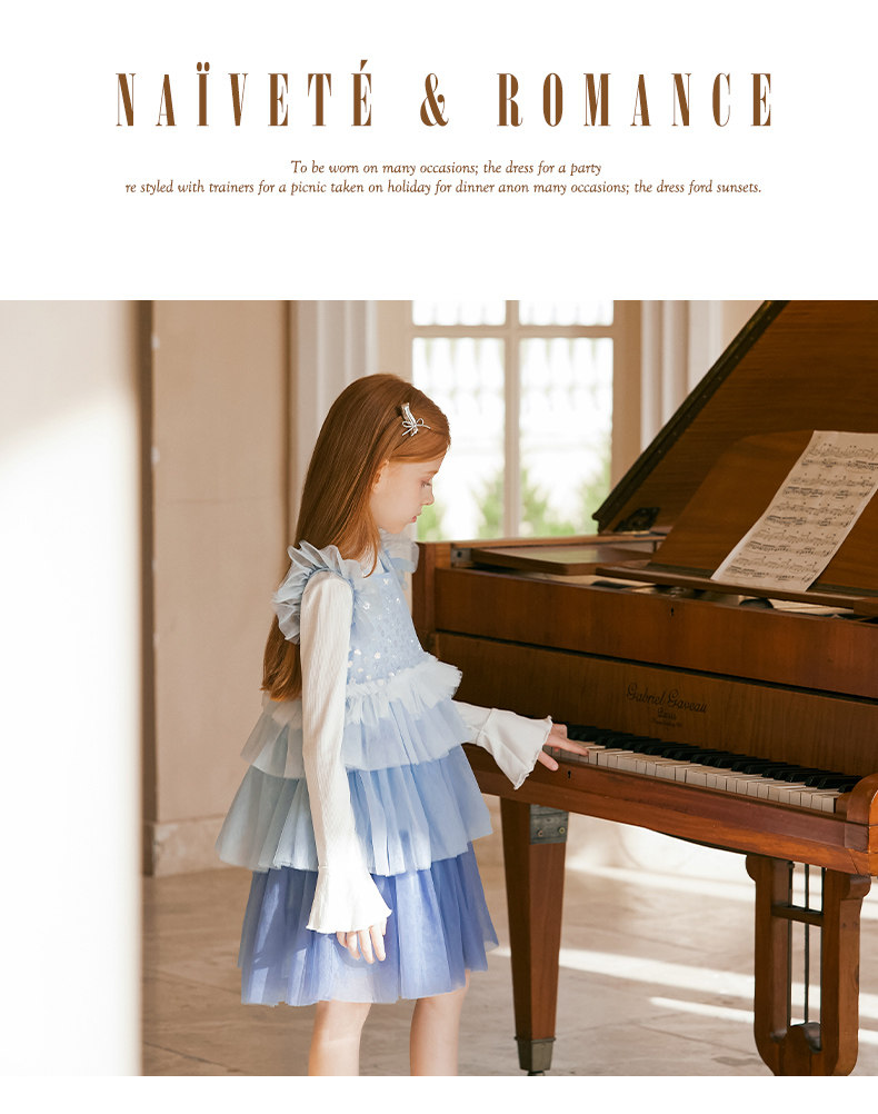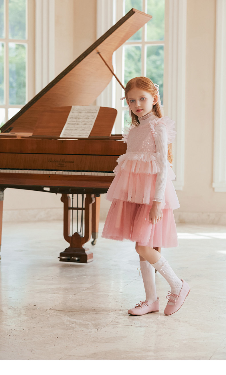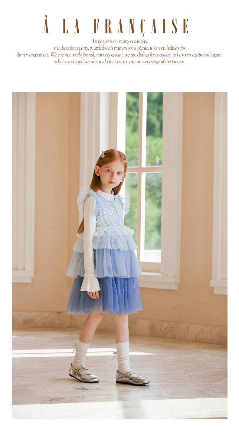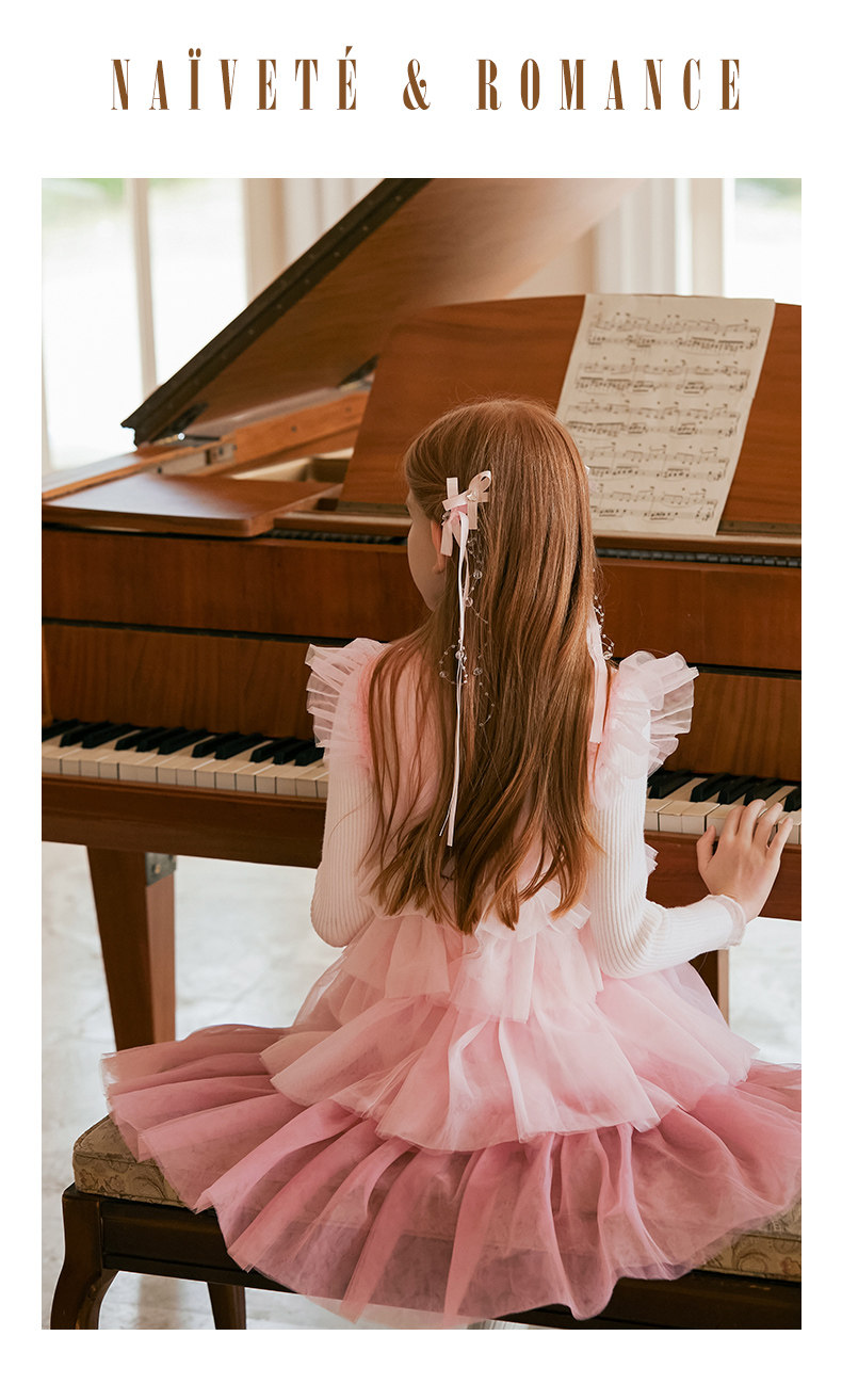 LittleNaive兒童禮服無袖漸變亮片網紗公主裙女童蛋糕連衣裙春秋