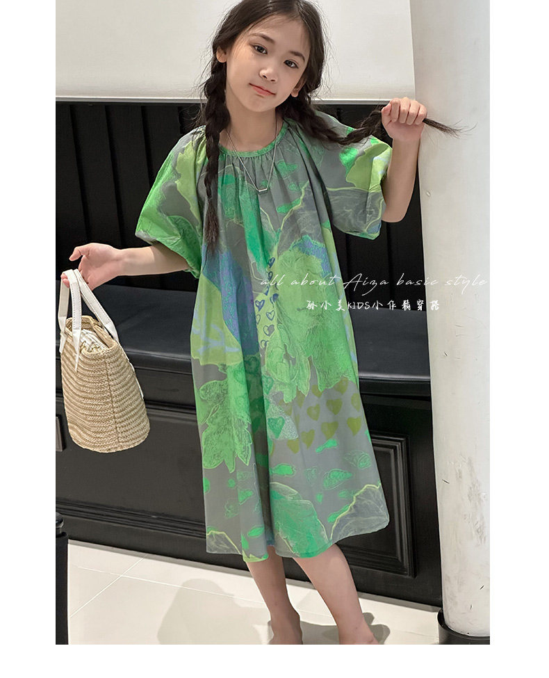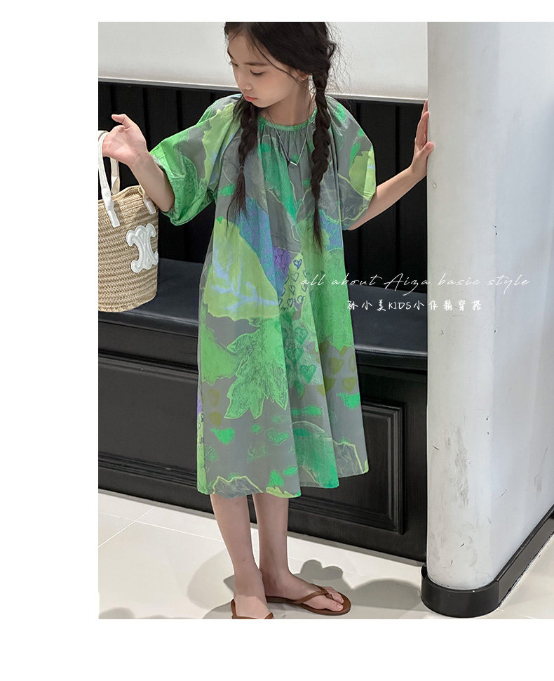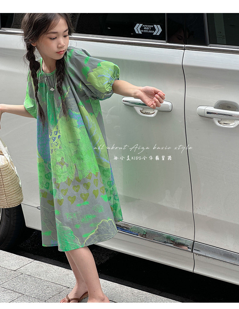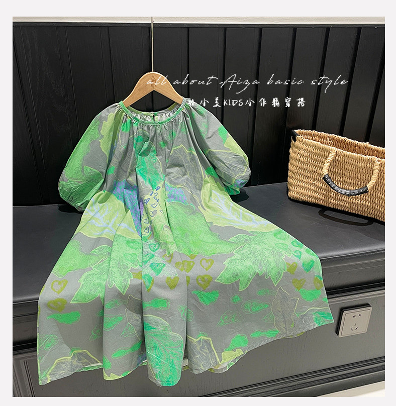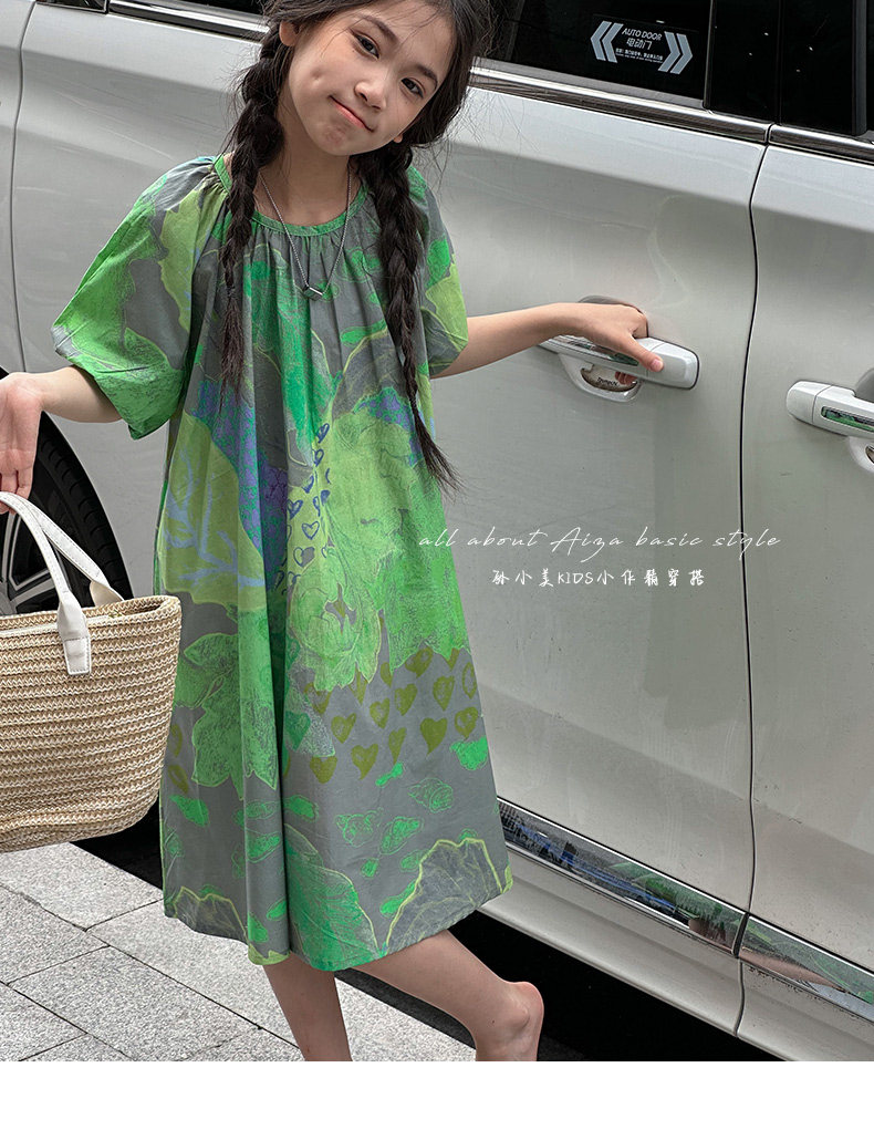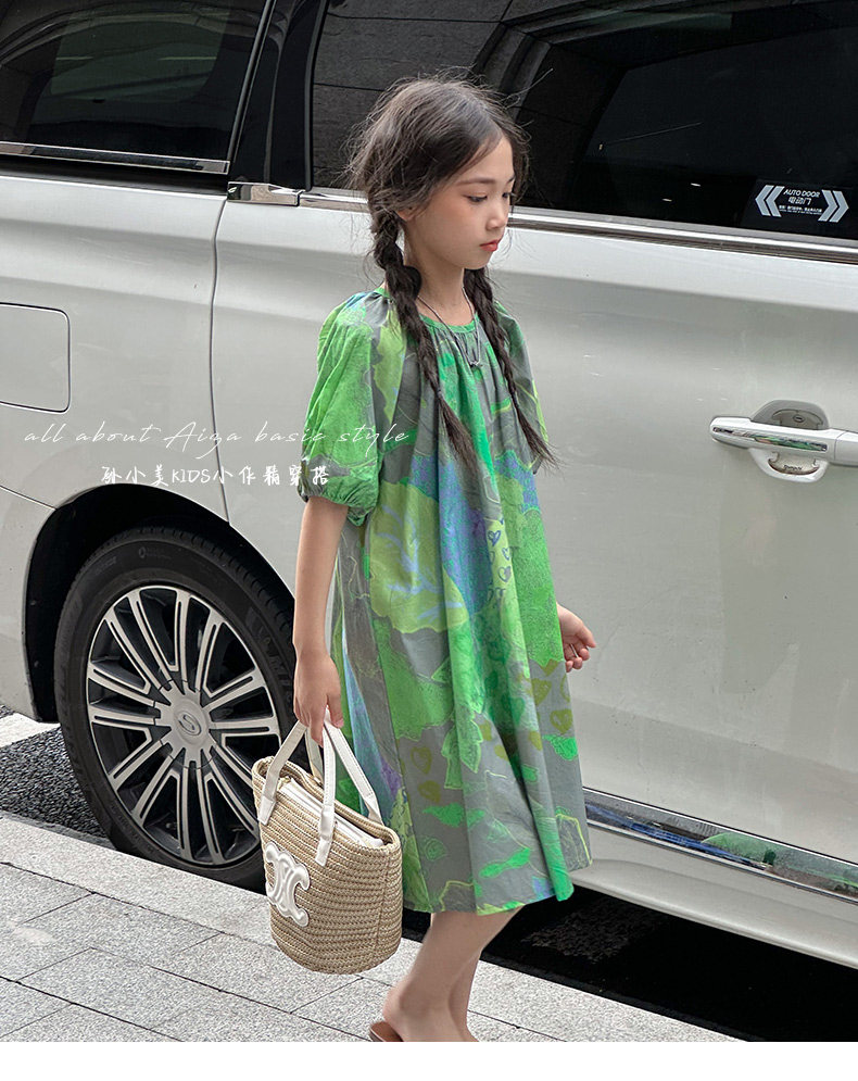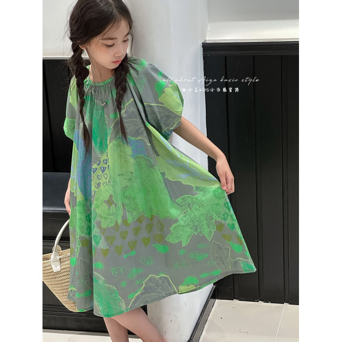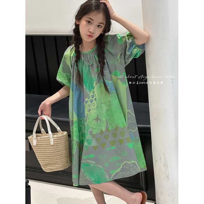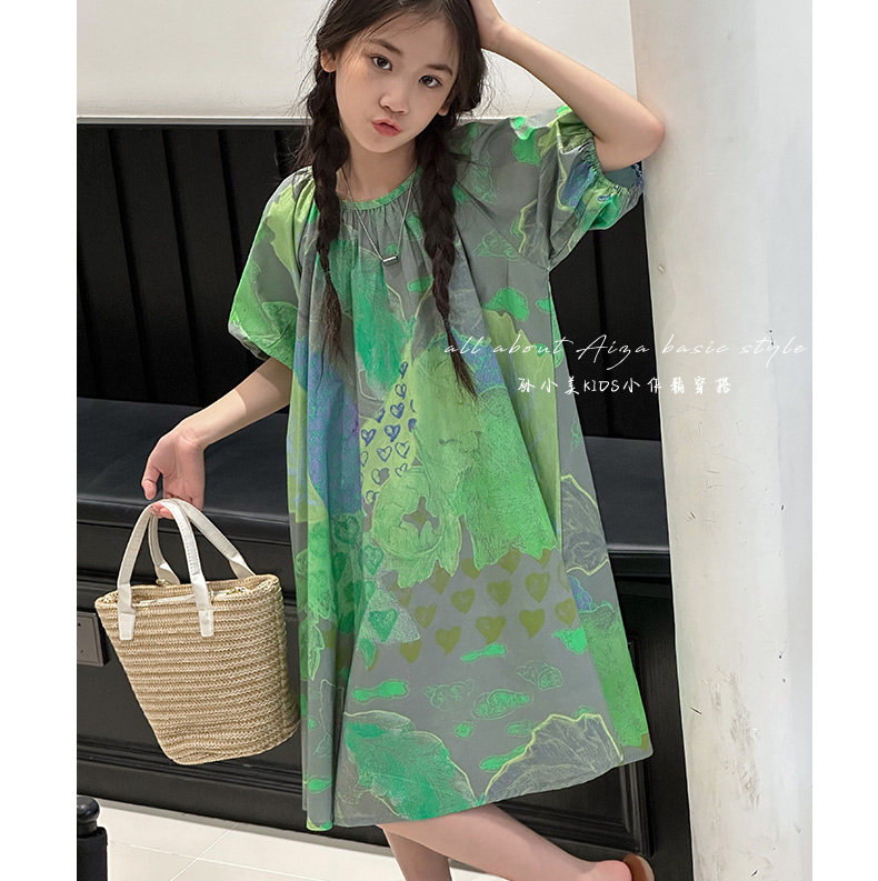 韓國童裝水墨畫女童短袖連衣裙2025夏裝新款兒童夏天氣質女孩裙子