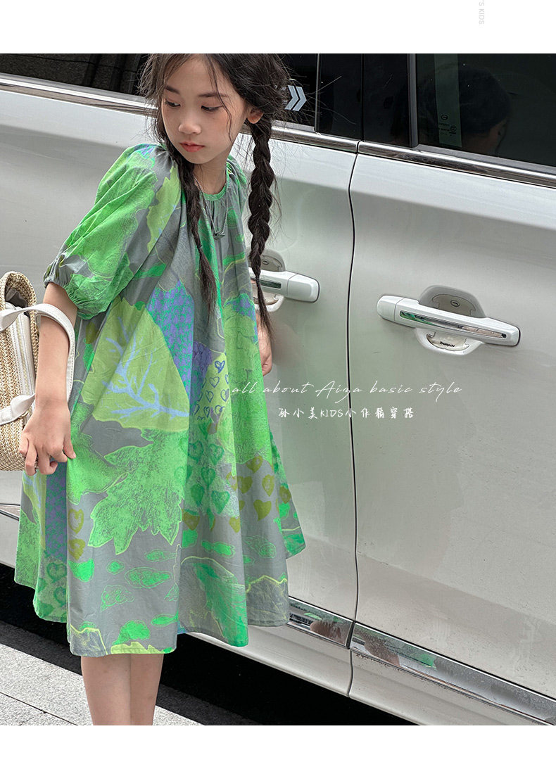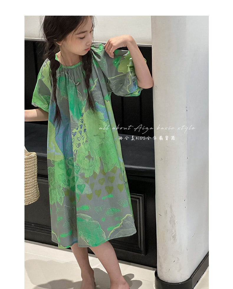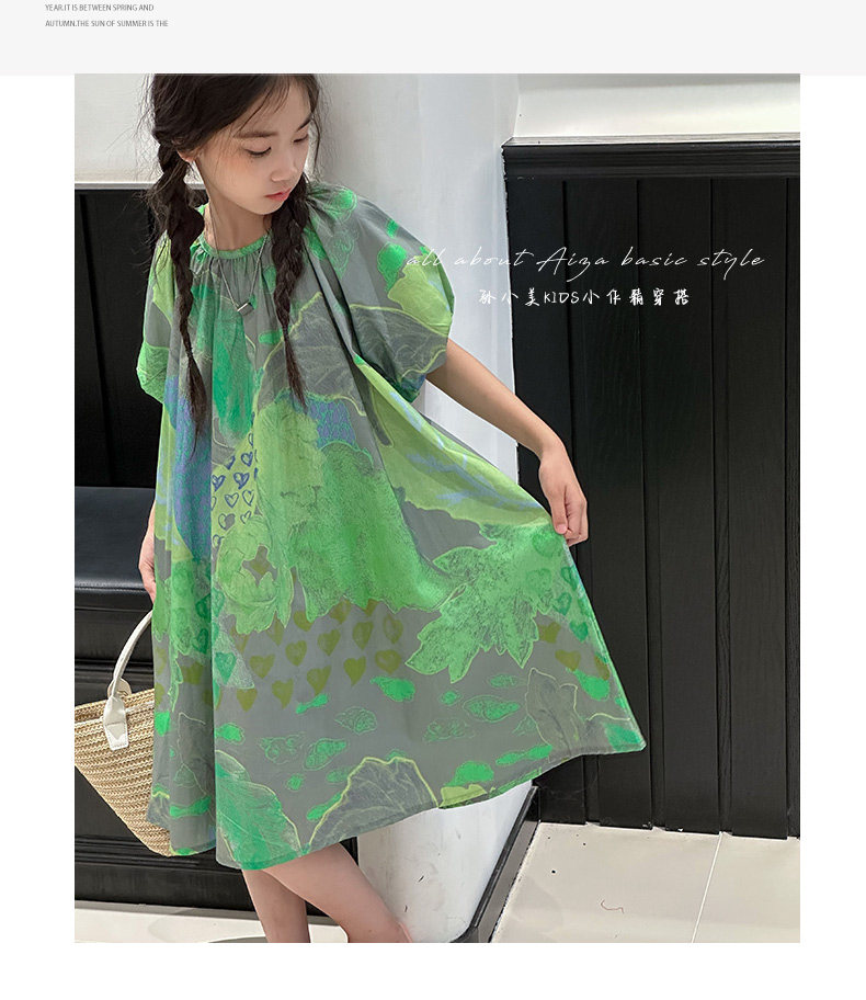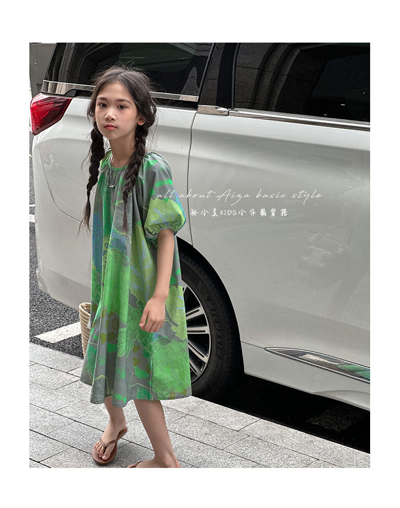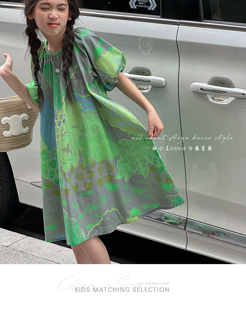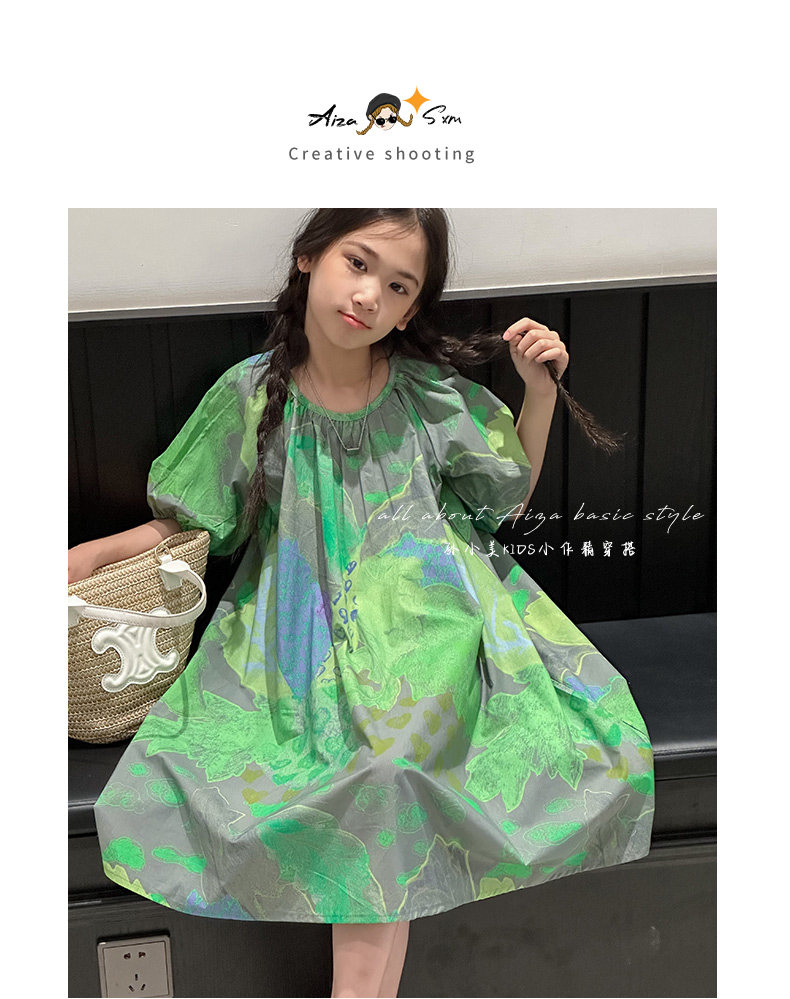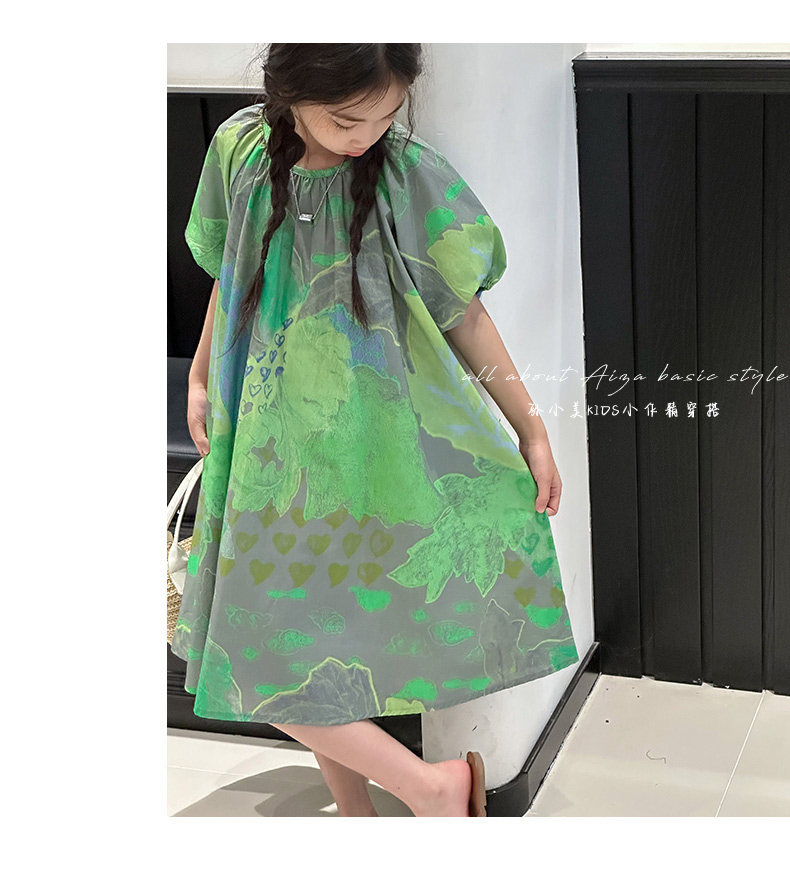 韓國童裝水墨畫女童短袖連衣裙2025夏裝新款兒童夏天氣質女孩裙子