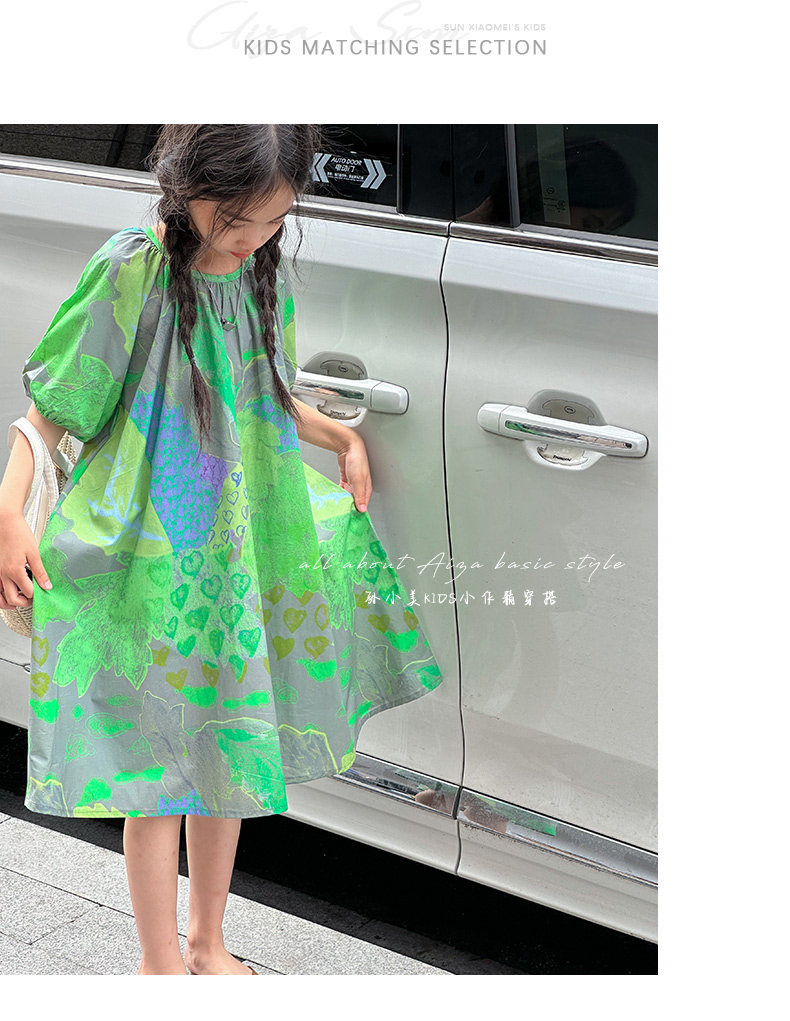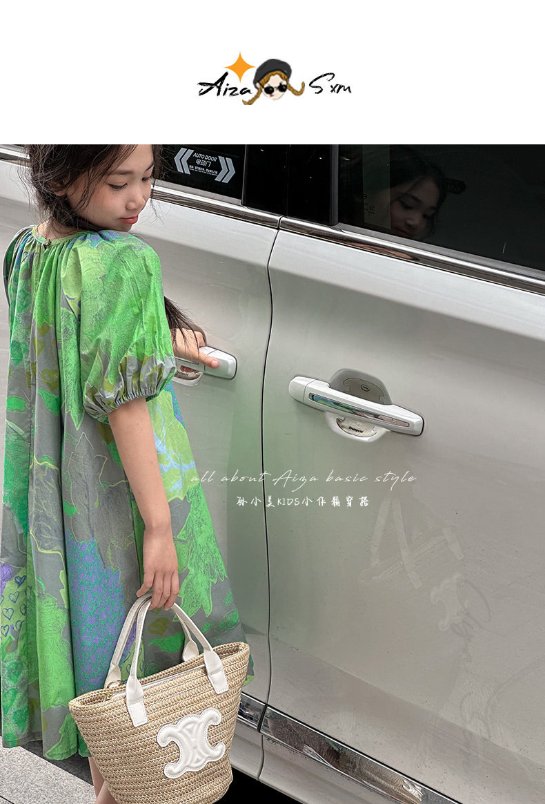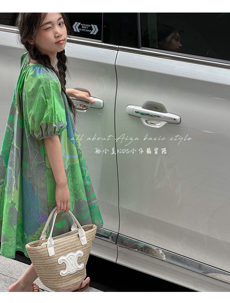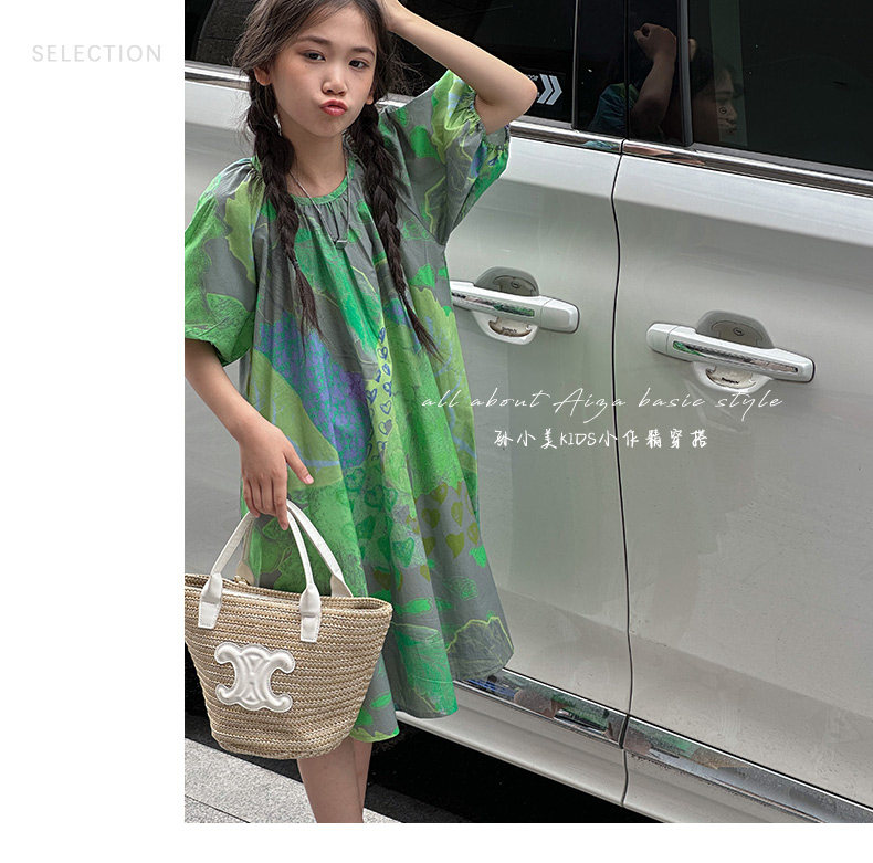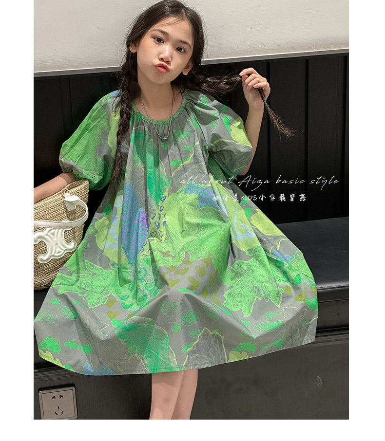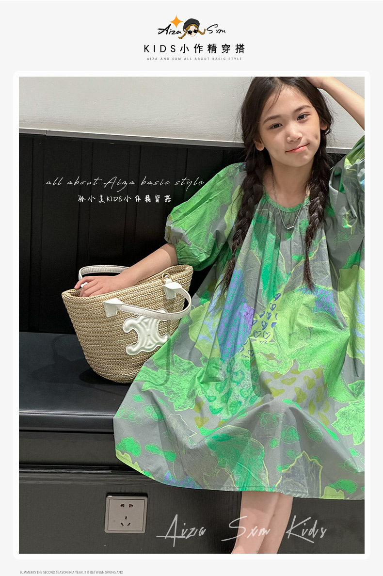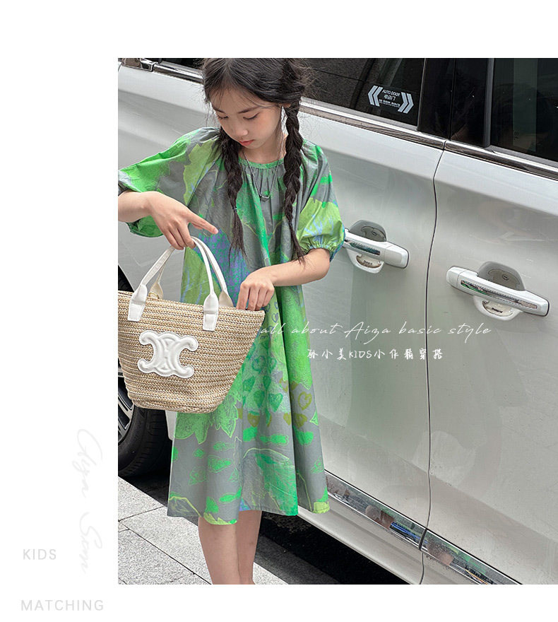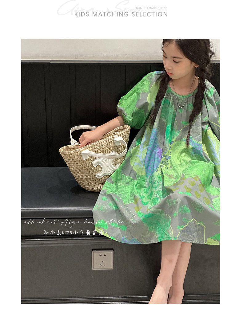韓國童裝水墨畫女童短袖連衣裙2025夏裝新款兒童夏天氣質女孩裙子