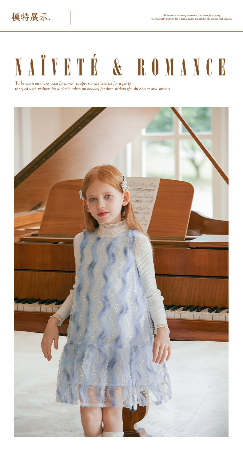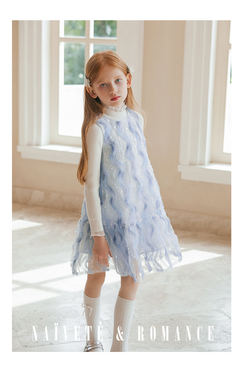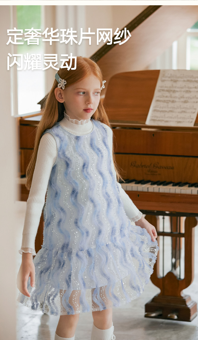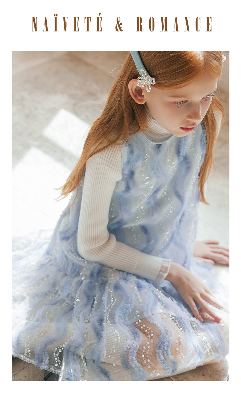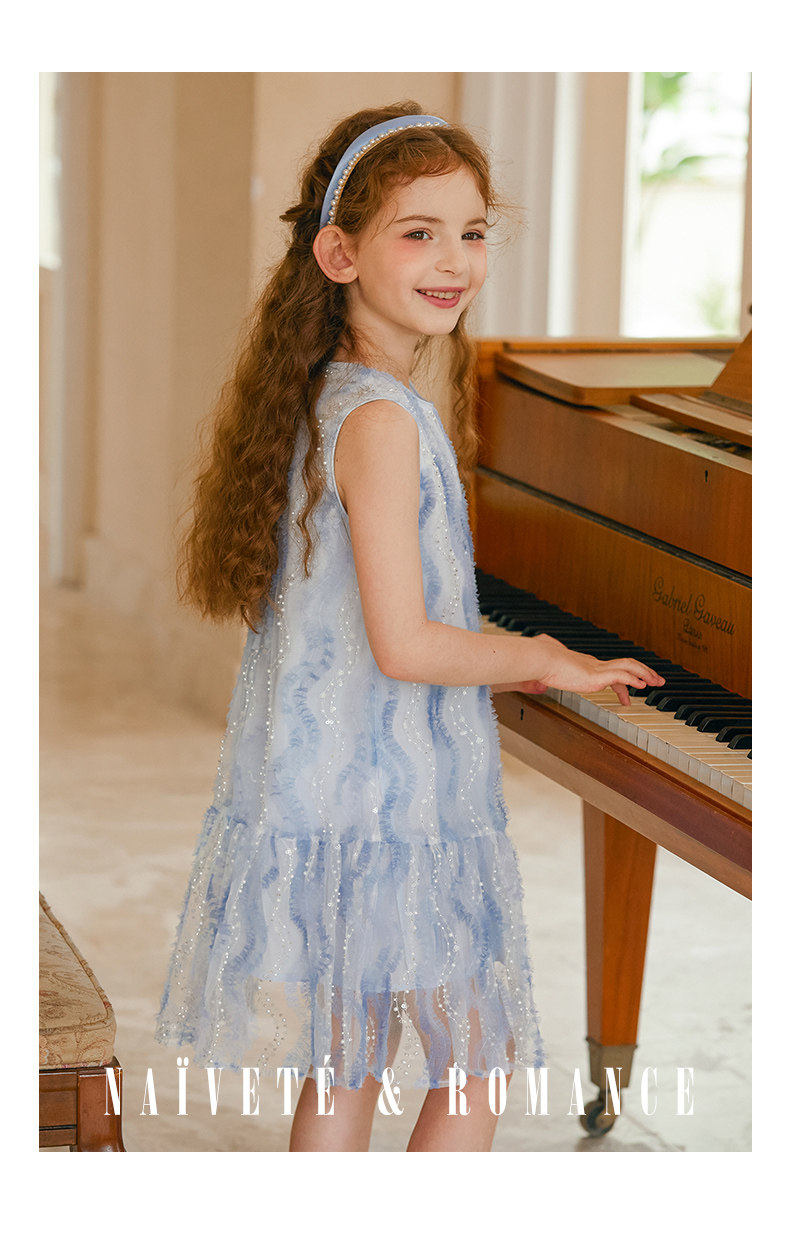 LittleNaive 女童連衣裙春夏新款無袖公主裙珠片紗裙兒童背心裙