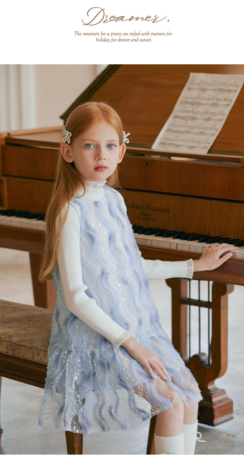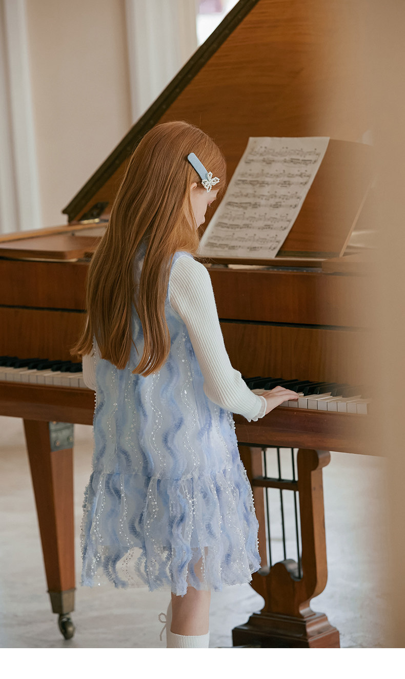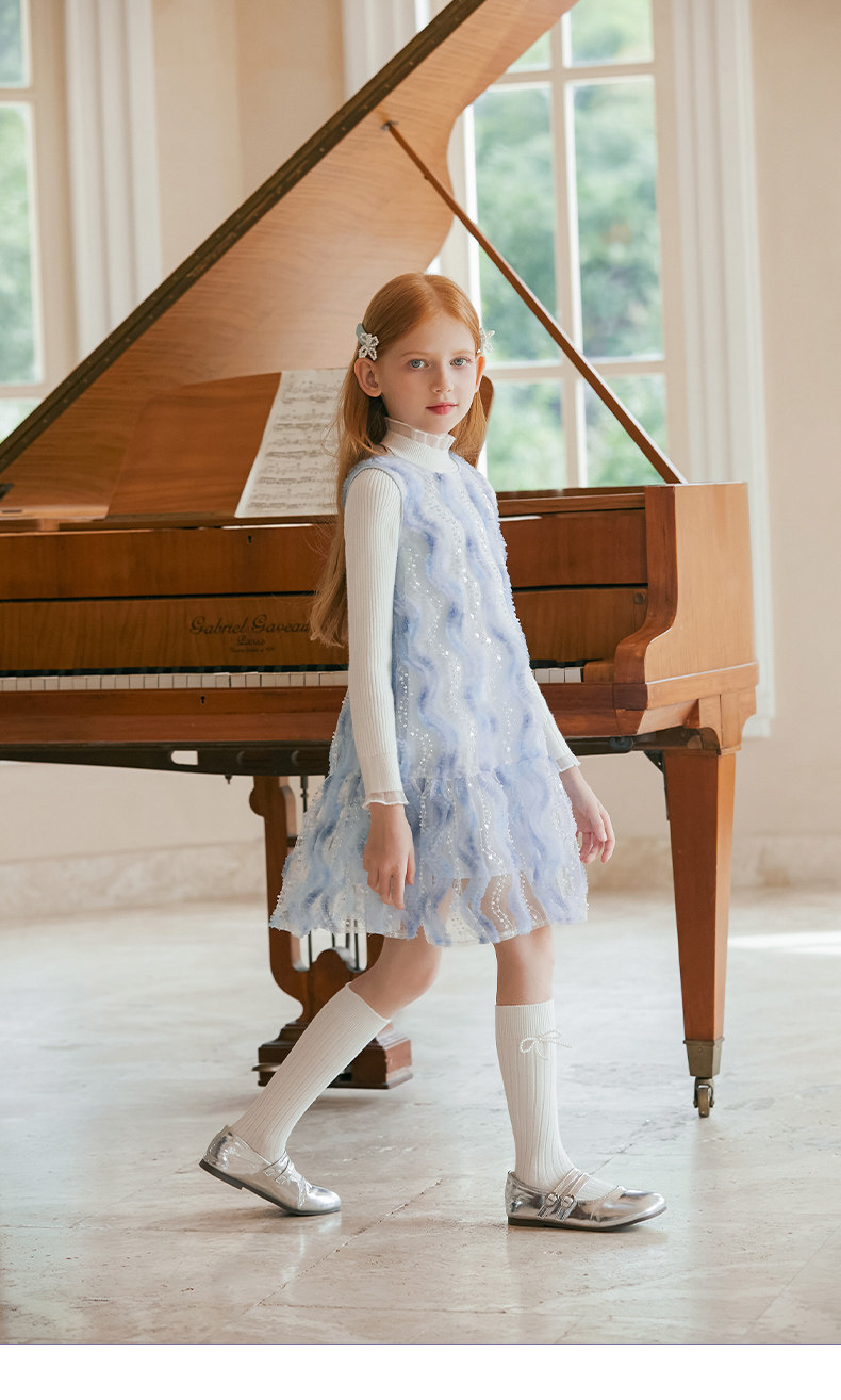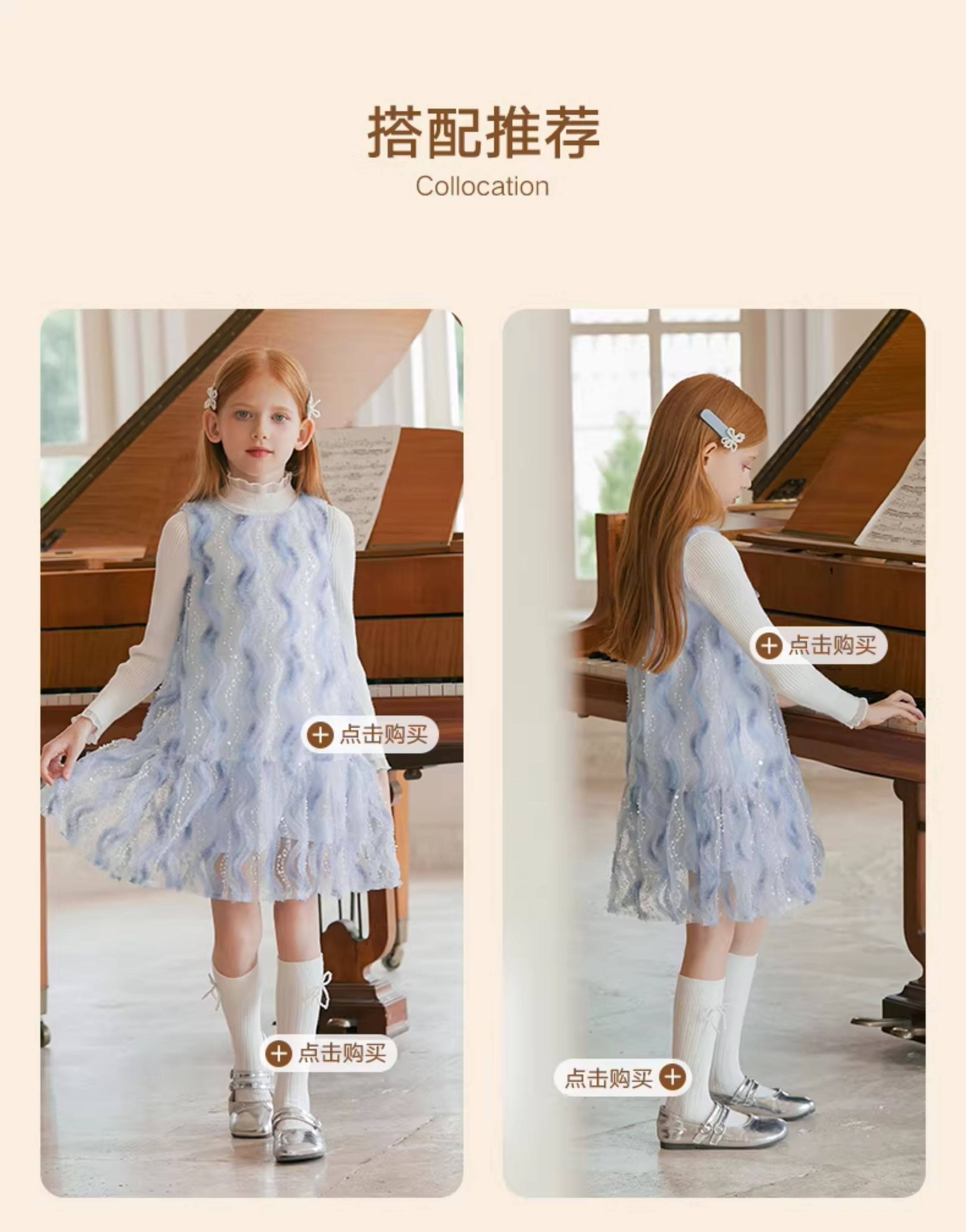 LittleNaive 女童連衣裙春夏新款無袖公主裙珠片紗裙兒童背心裙