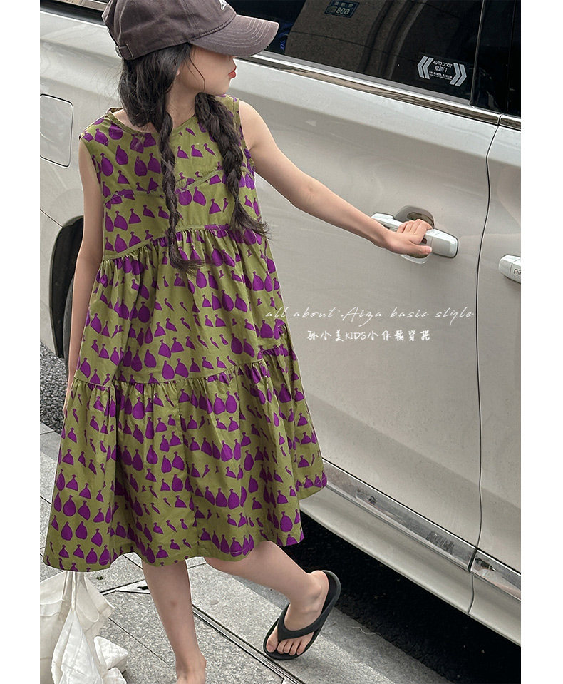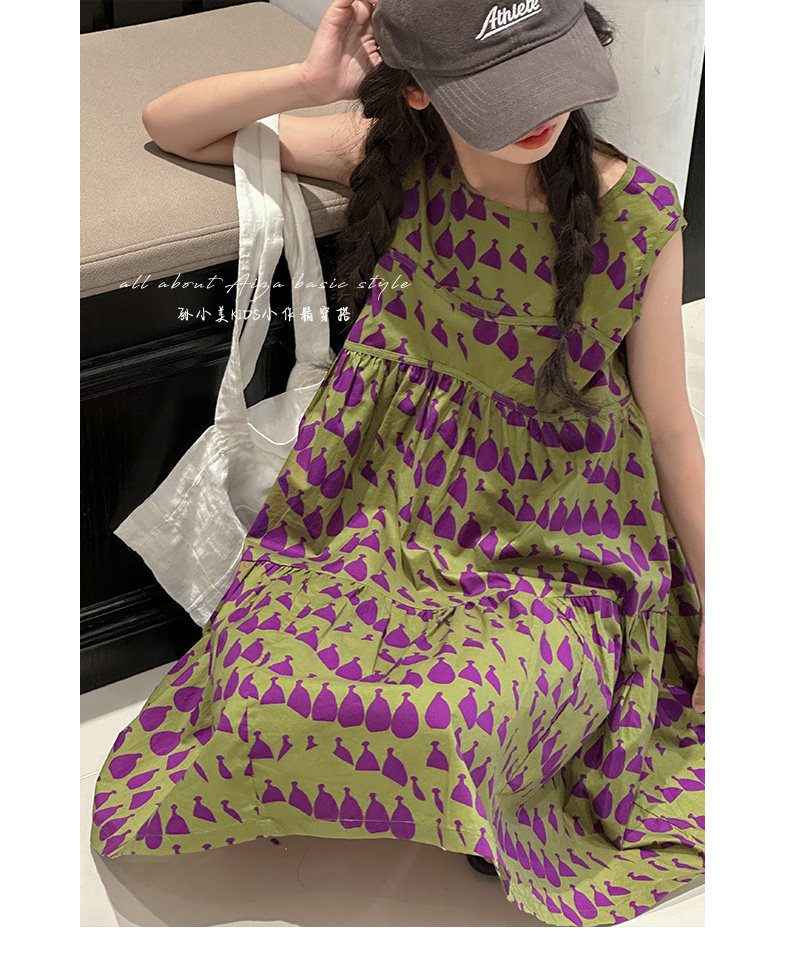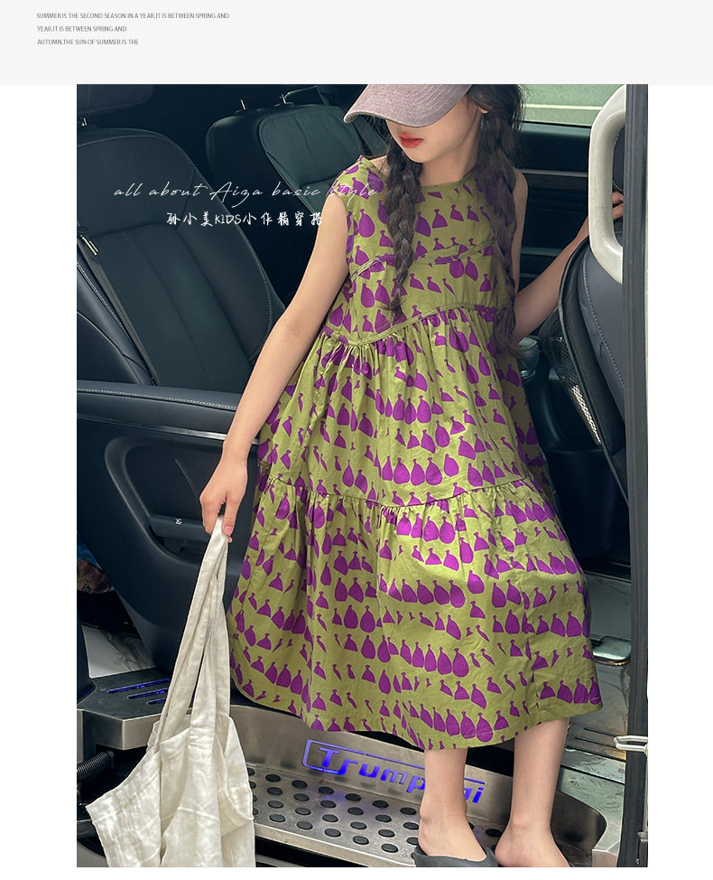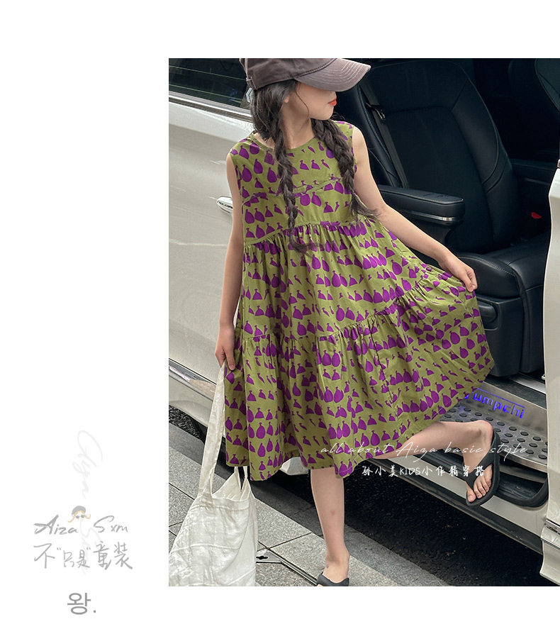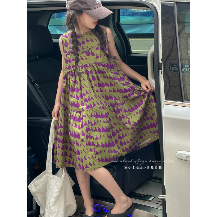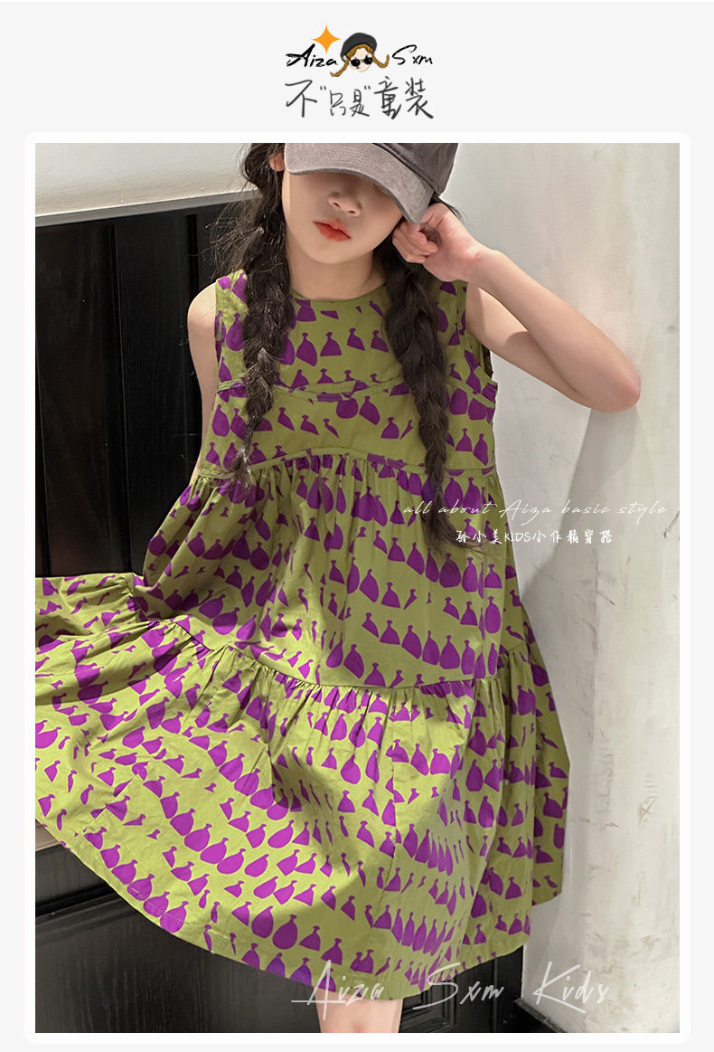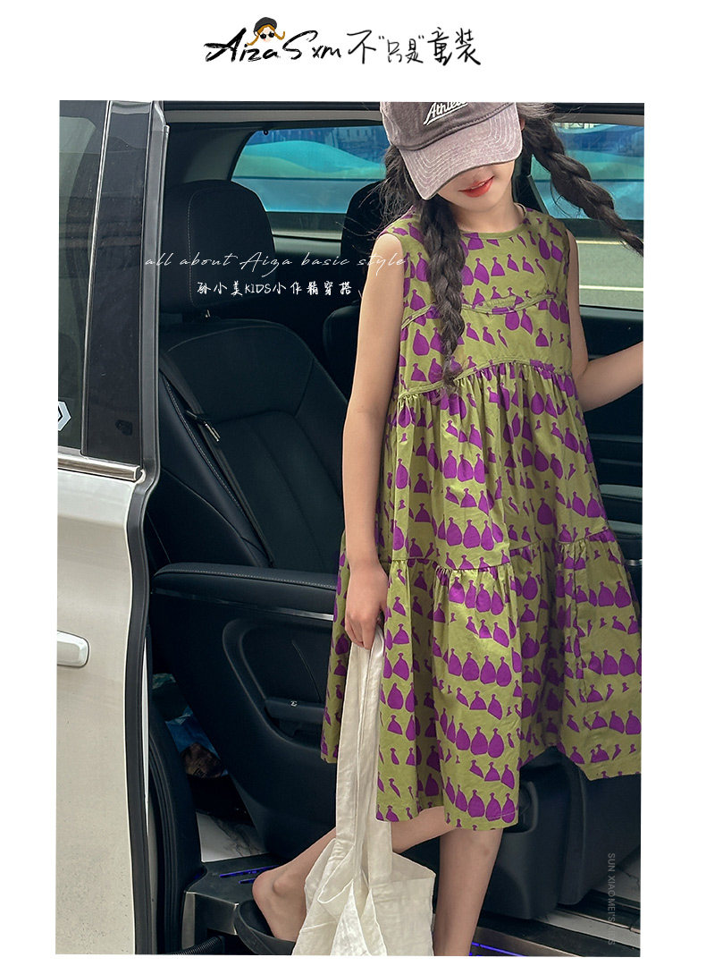 高級滿印女童連衣裙2025新款夏季兒童無袖裙子小女孩背心裙A字裙