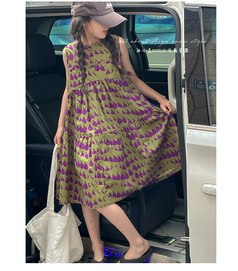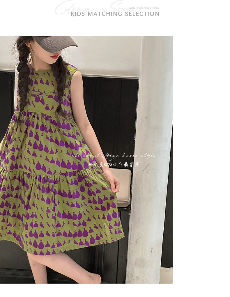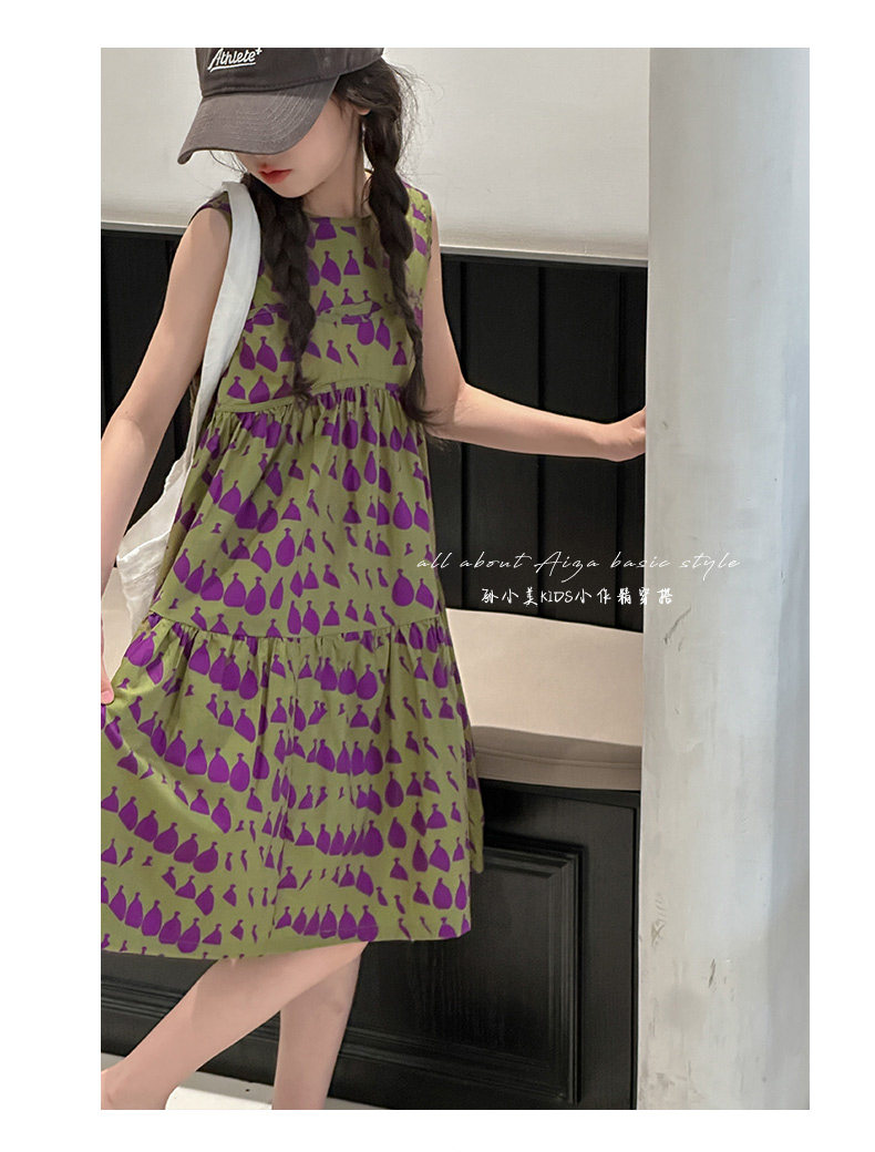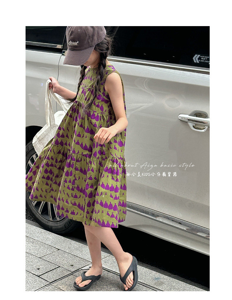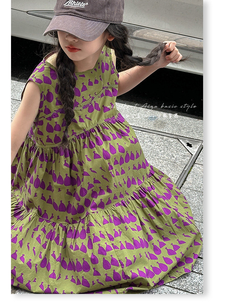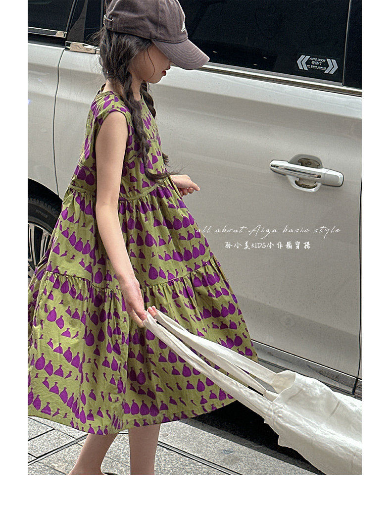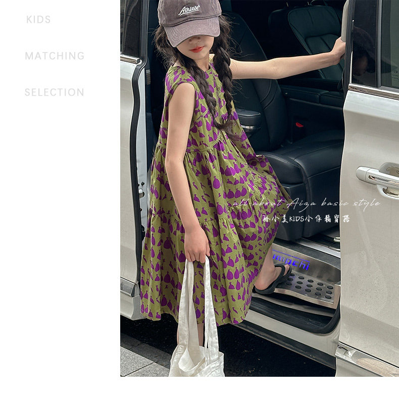 高級滿印女童連衣裙2025新款夏季兒童無袖裙子小女孩背心裙A字裙