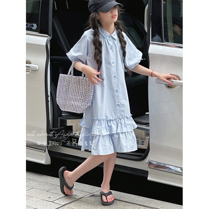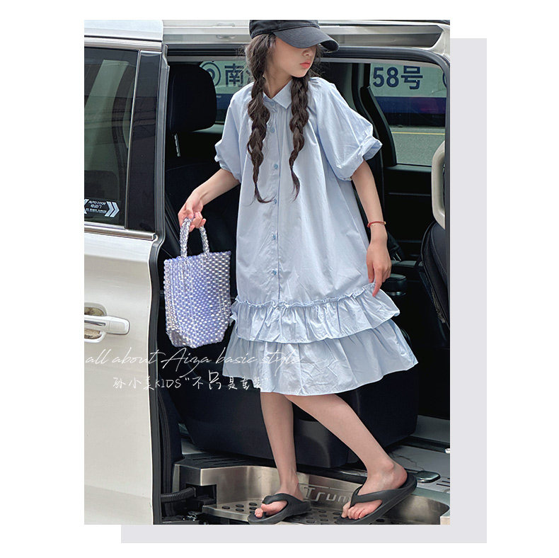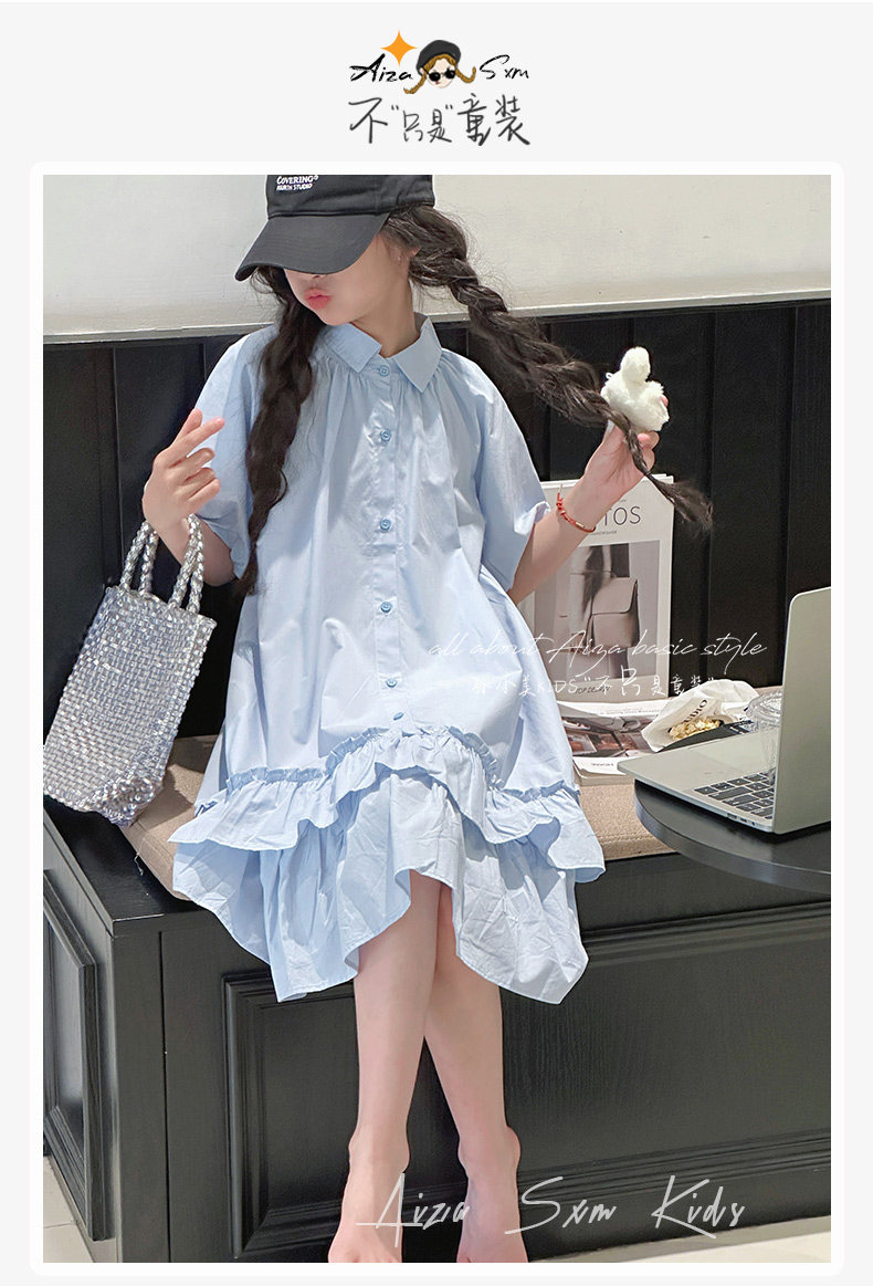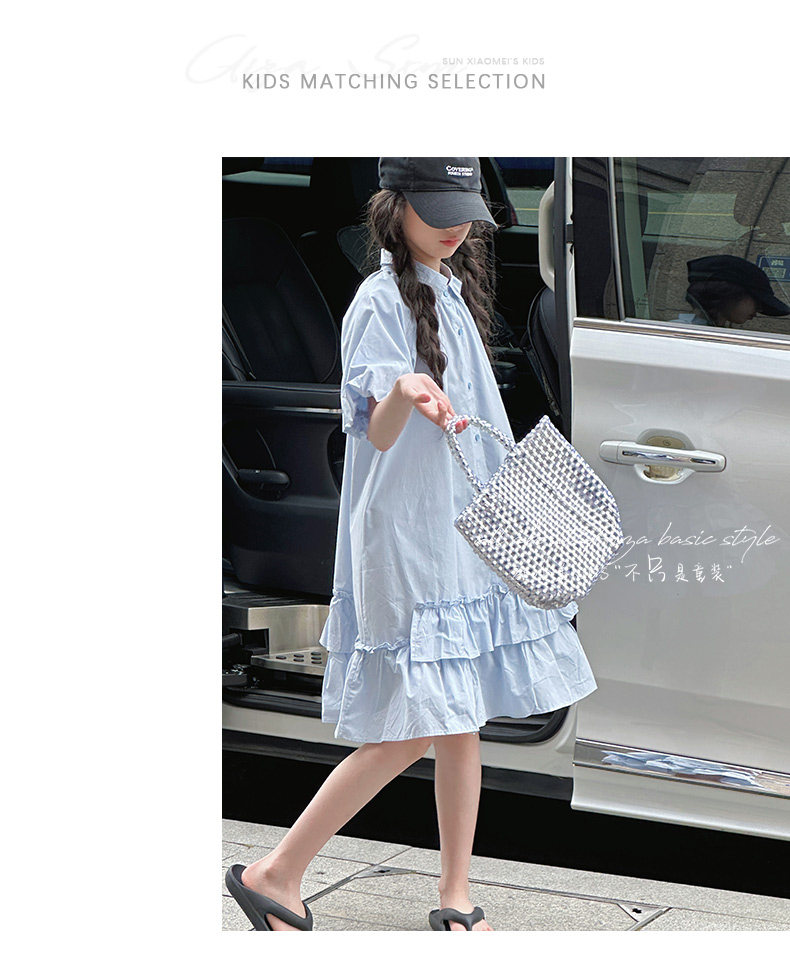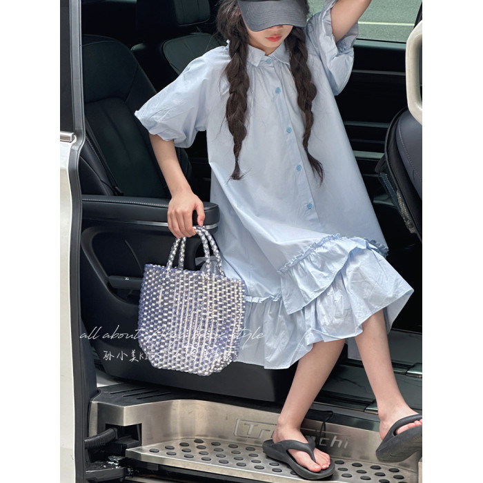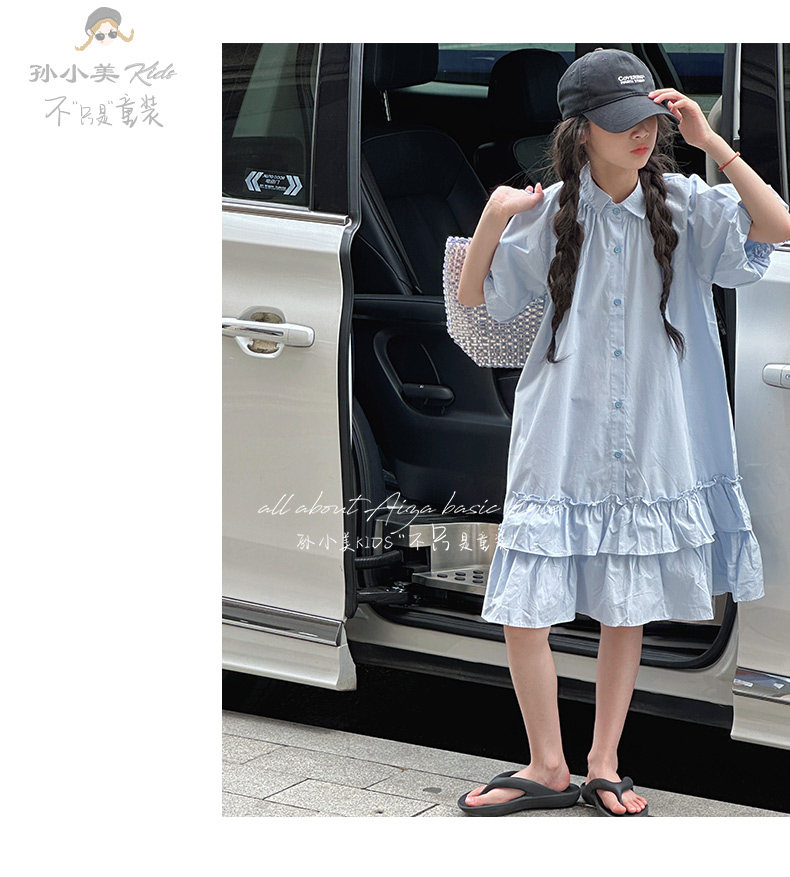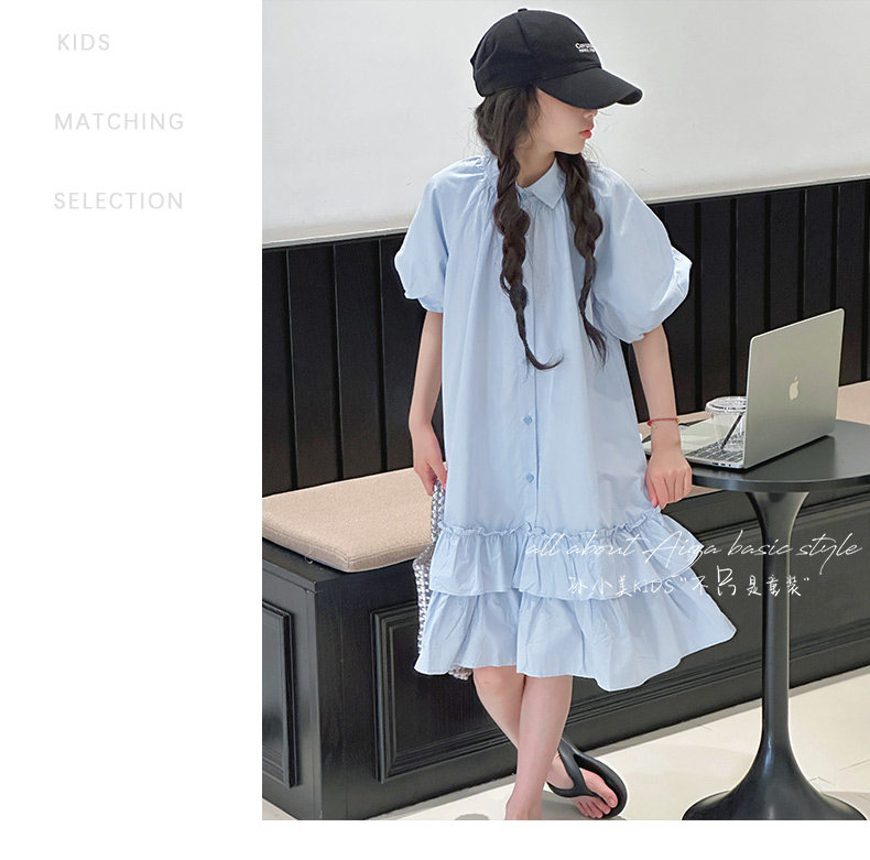 孫小美kids 韓系女童襯衫連衣裙2025新款夏裝兒童泡泡袖裙子A字裙