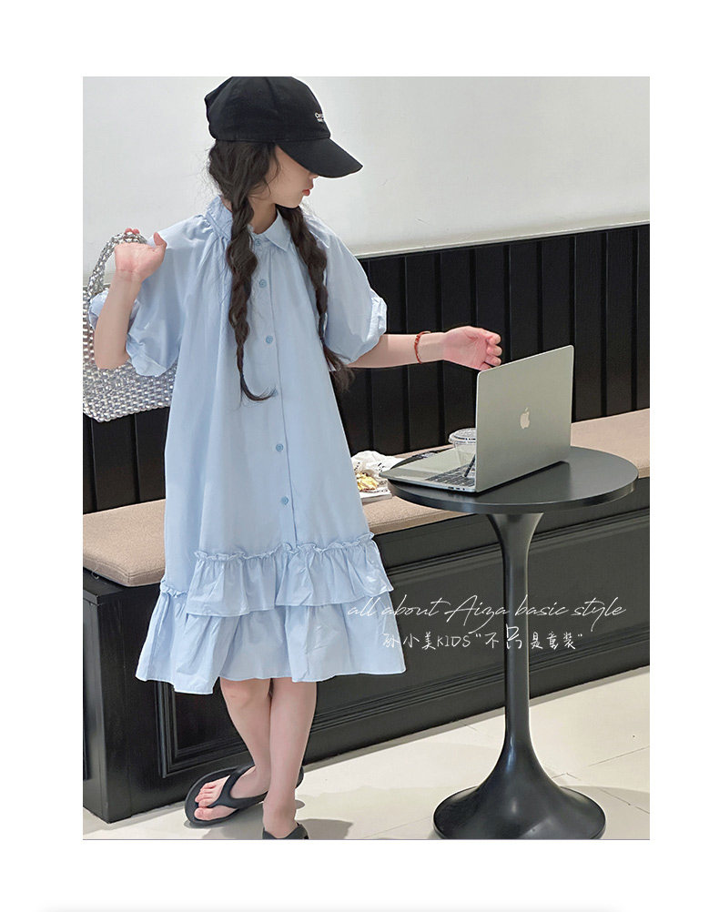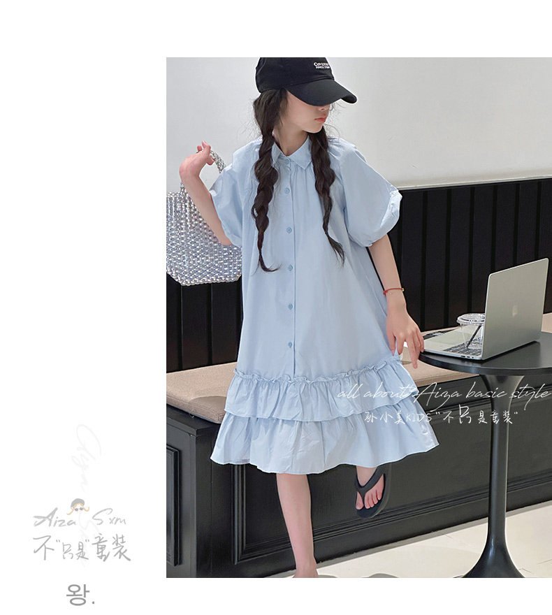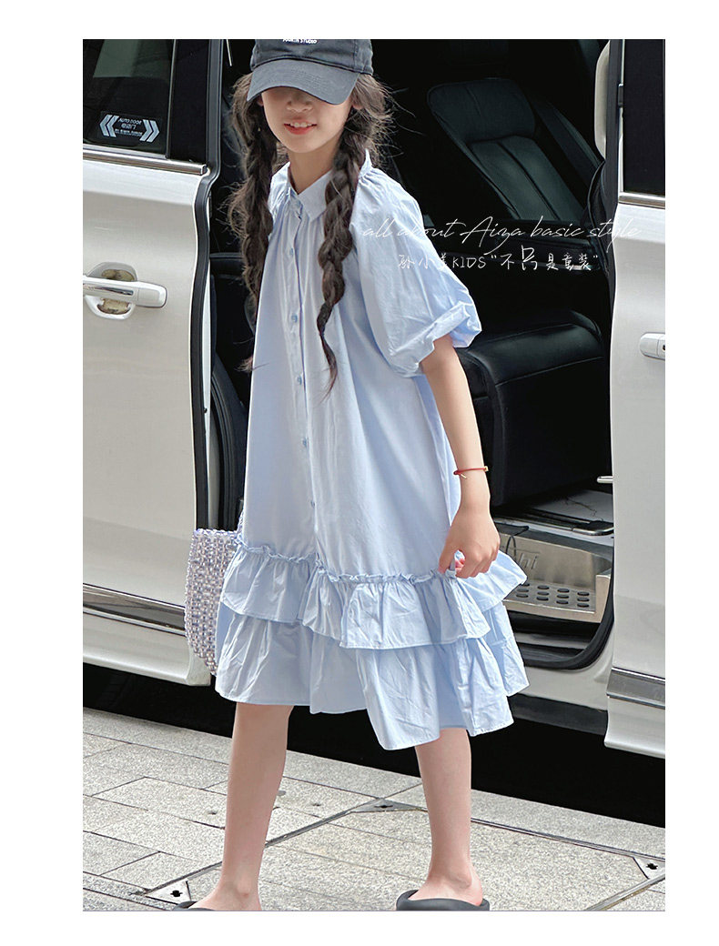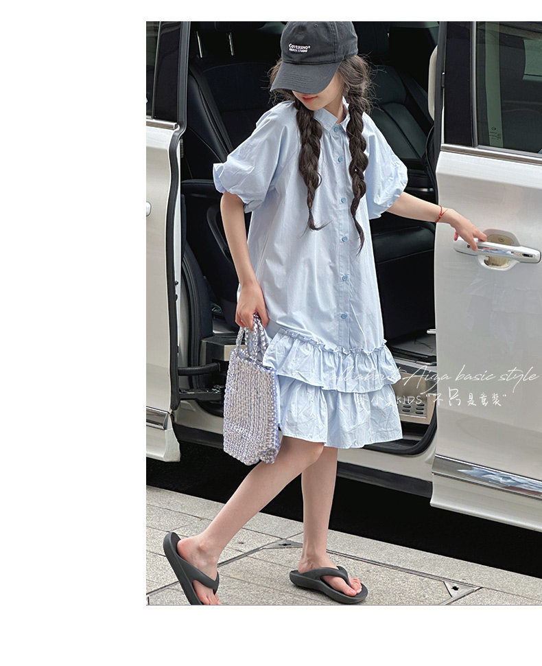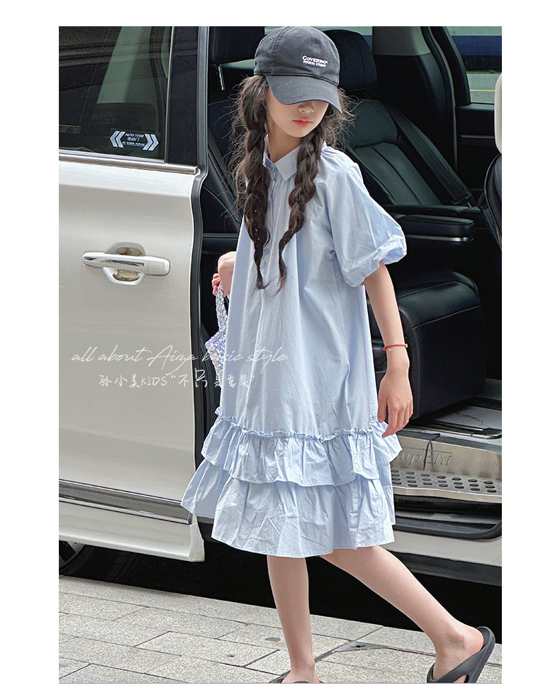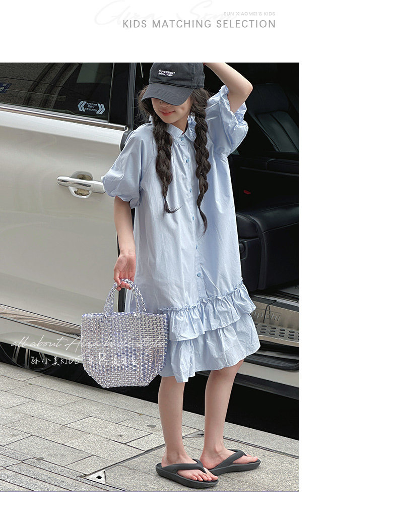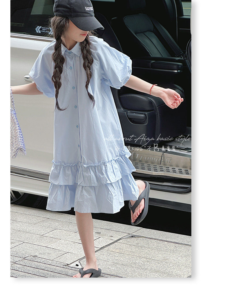 孫小美kids 韓系女童襯衫連衣裙2025新款夏裝兒童泡泡袖裙子A字裙