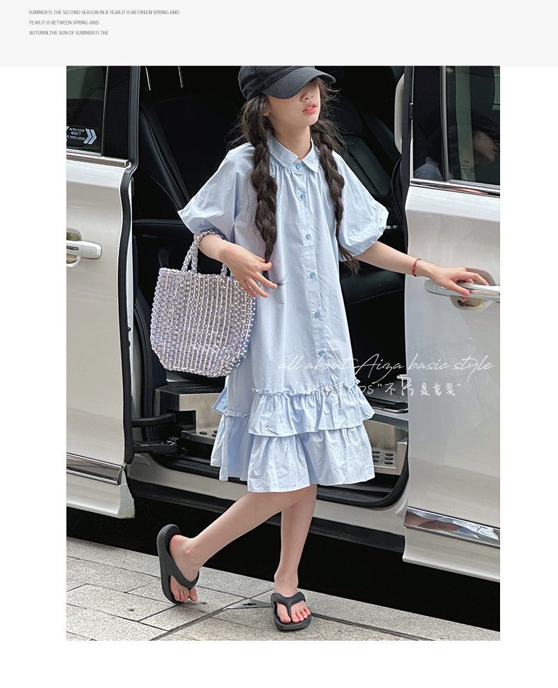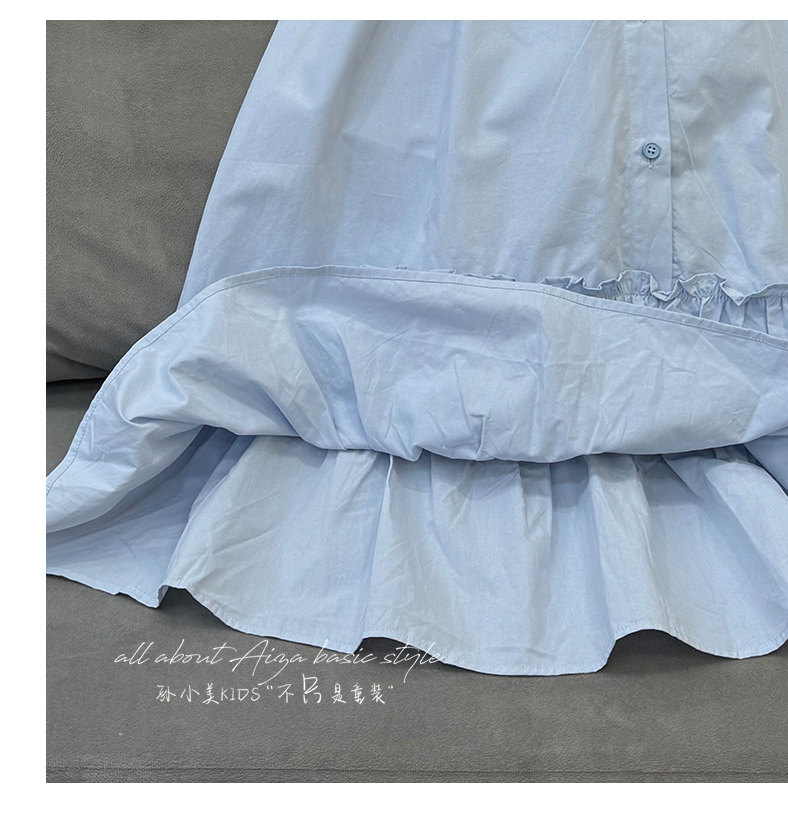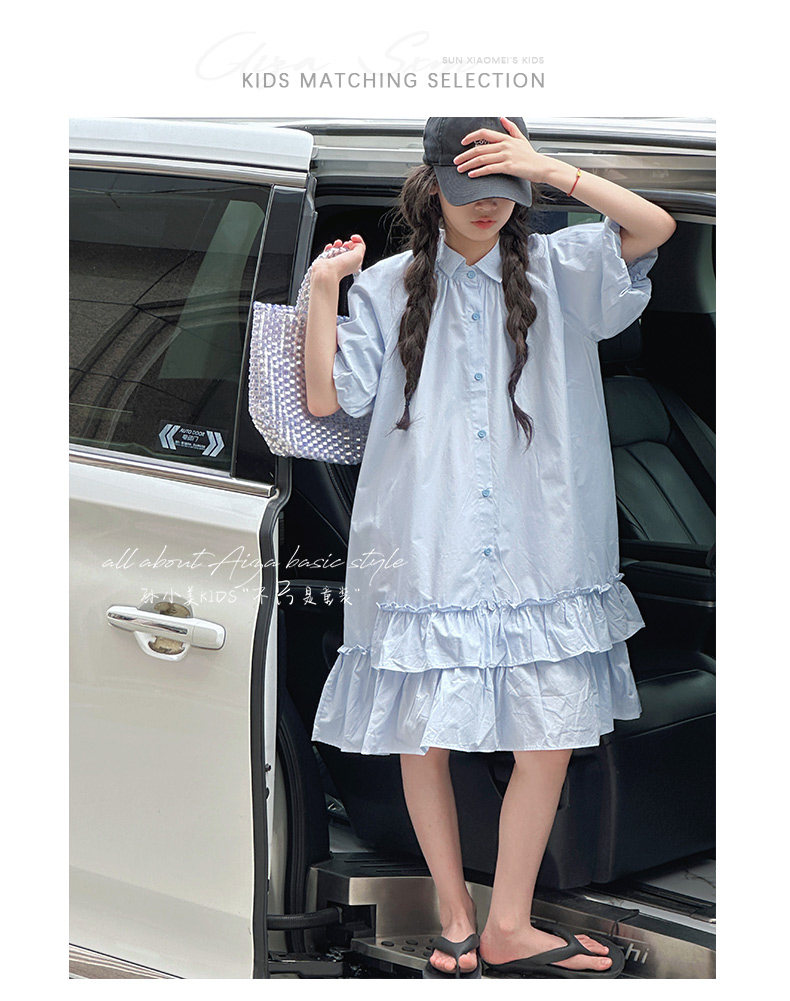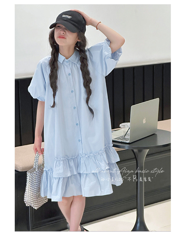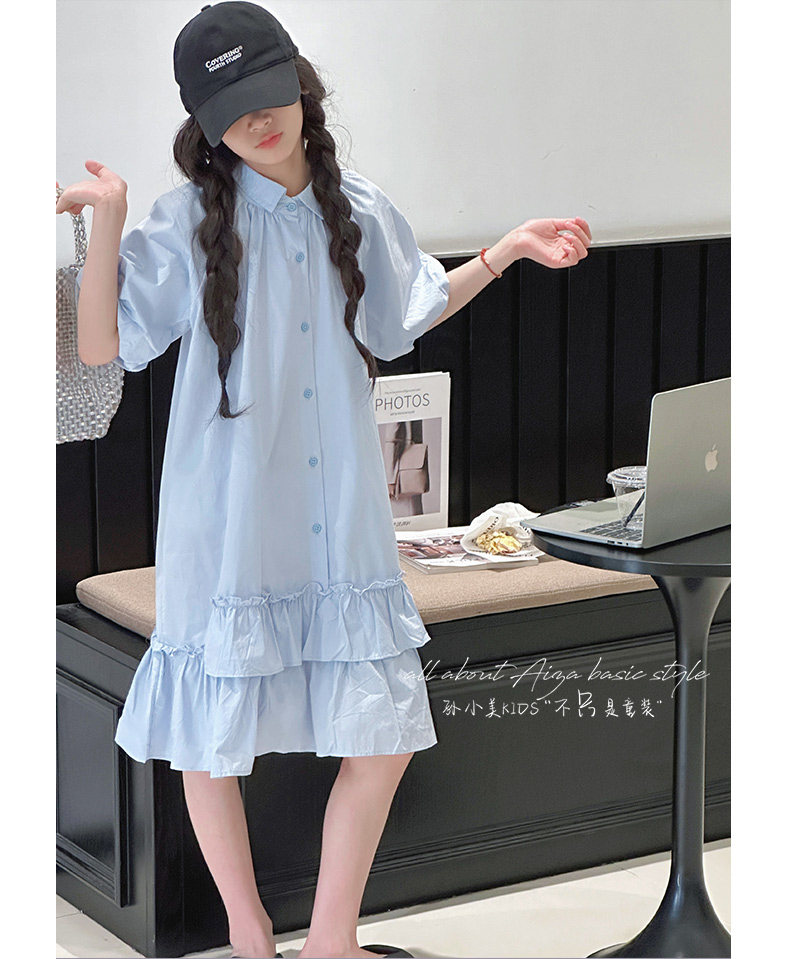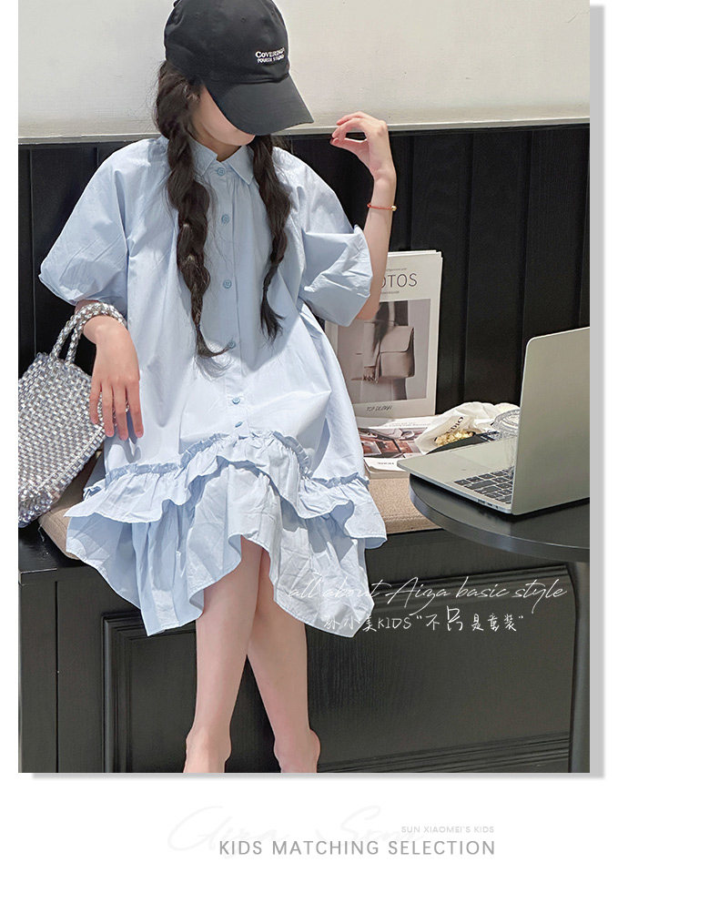 孫小美kids 韓系女童襯衫連衣裙2025新款夏裝兒童泡泡袖裙子A字裙