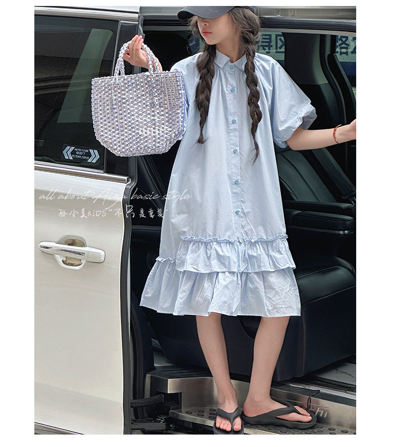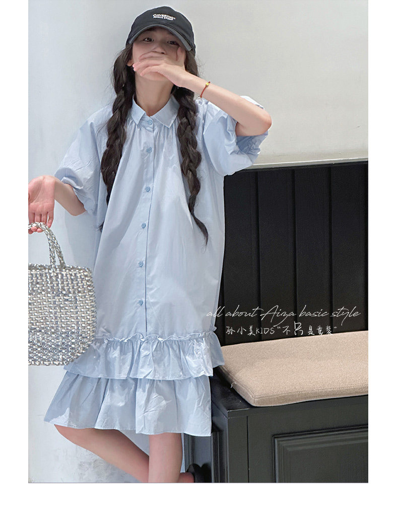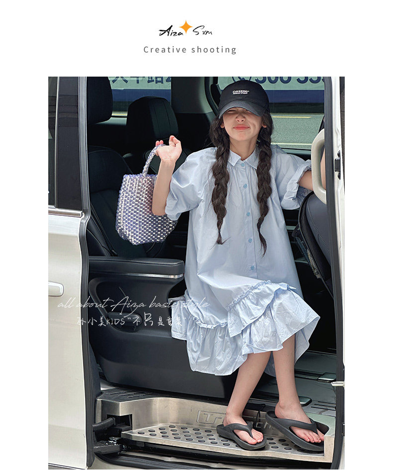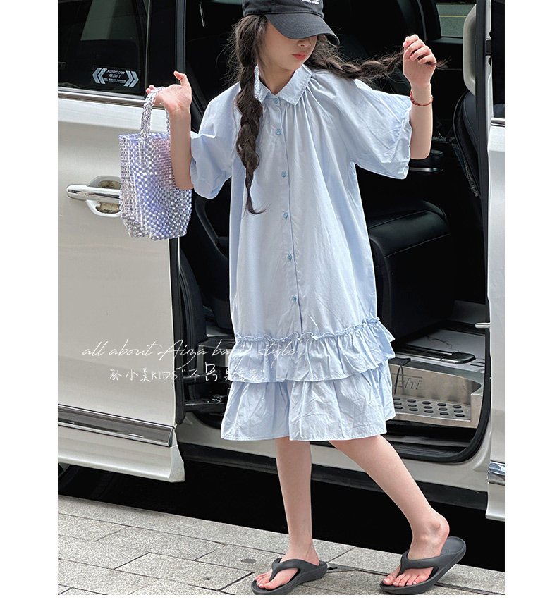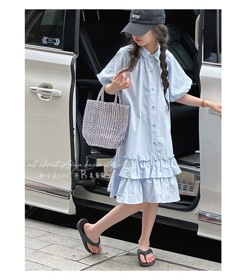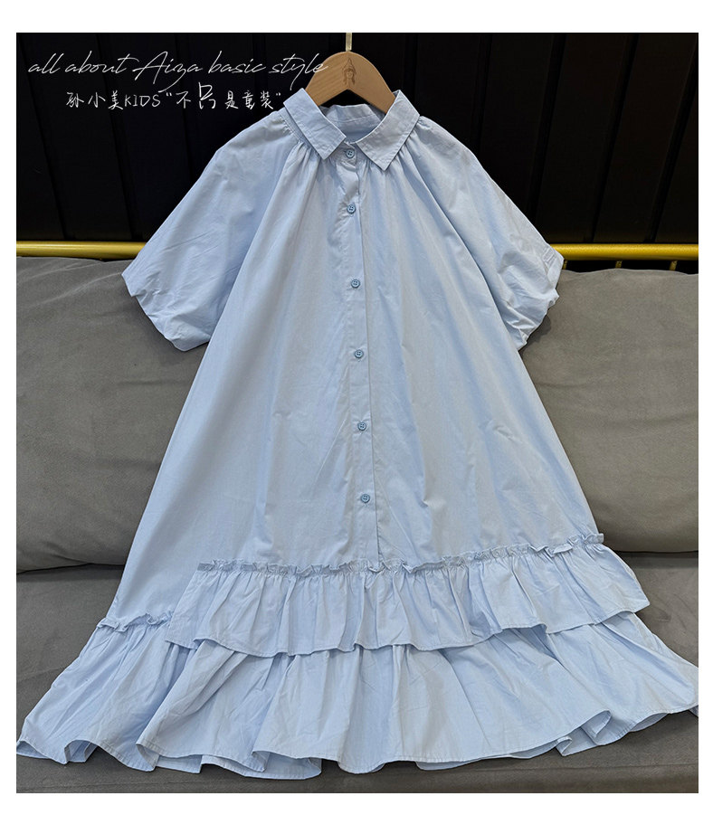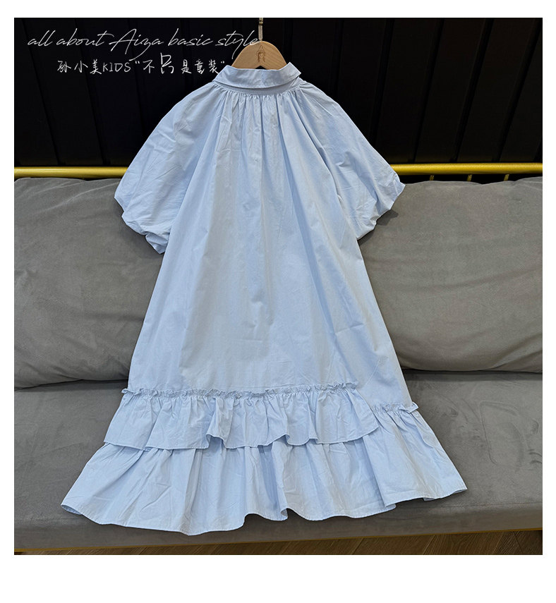 孫小美kids 韓系女童襯衫連衣裙2025新款夏裝兒童泡泡袖裙子A字裙