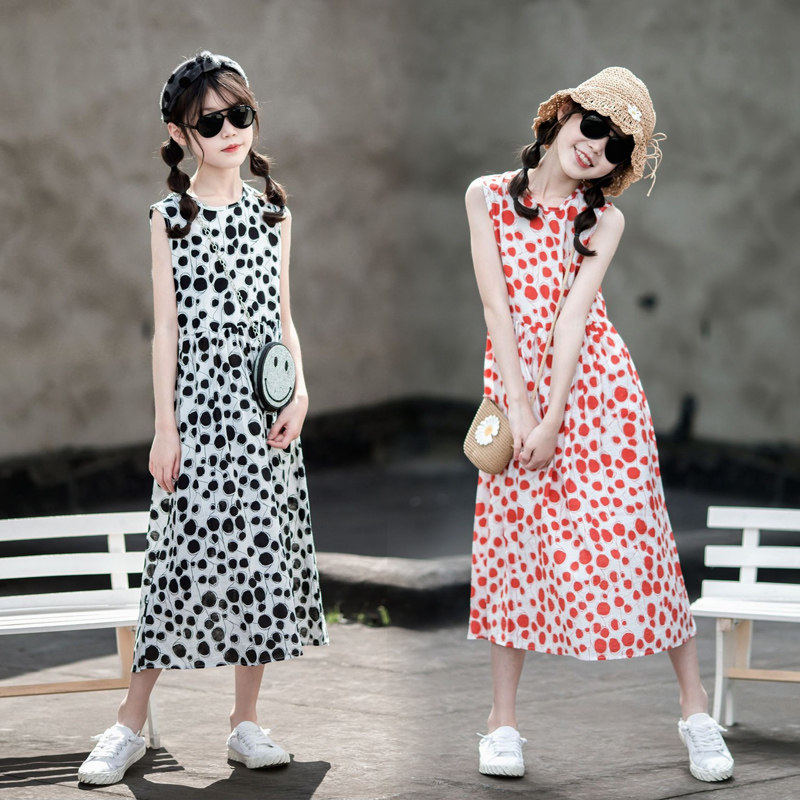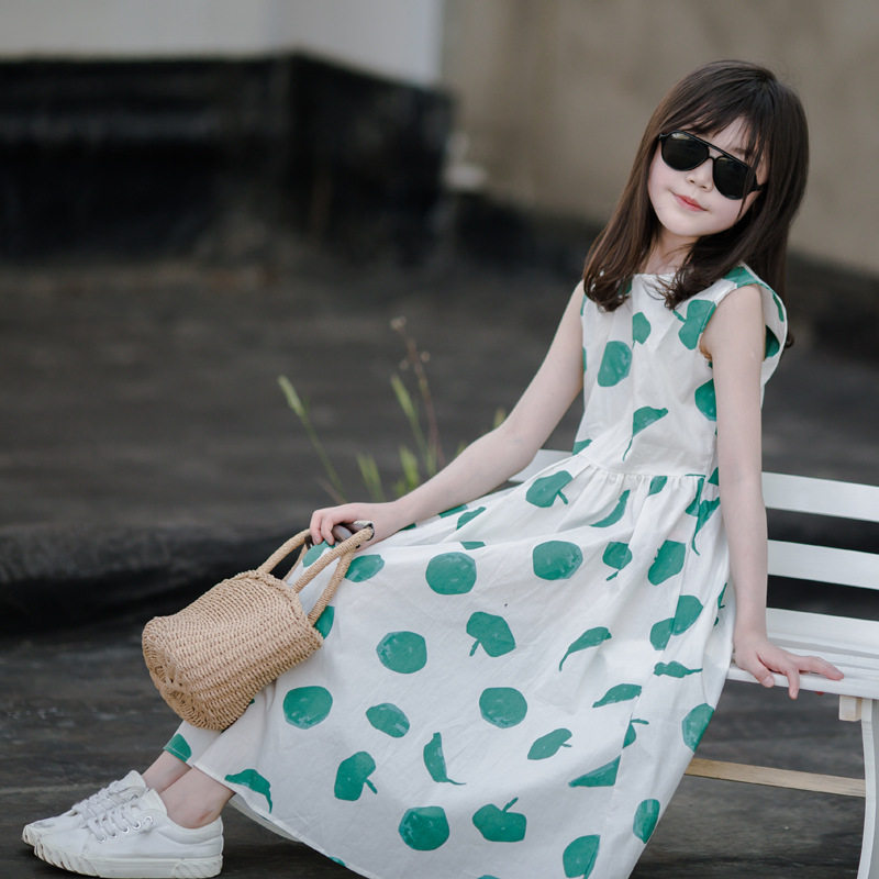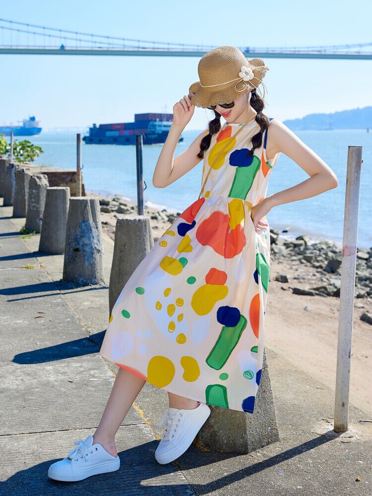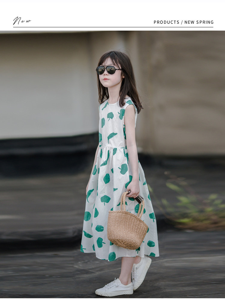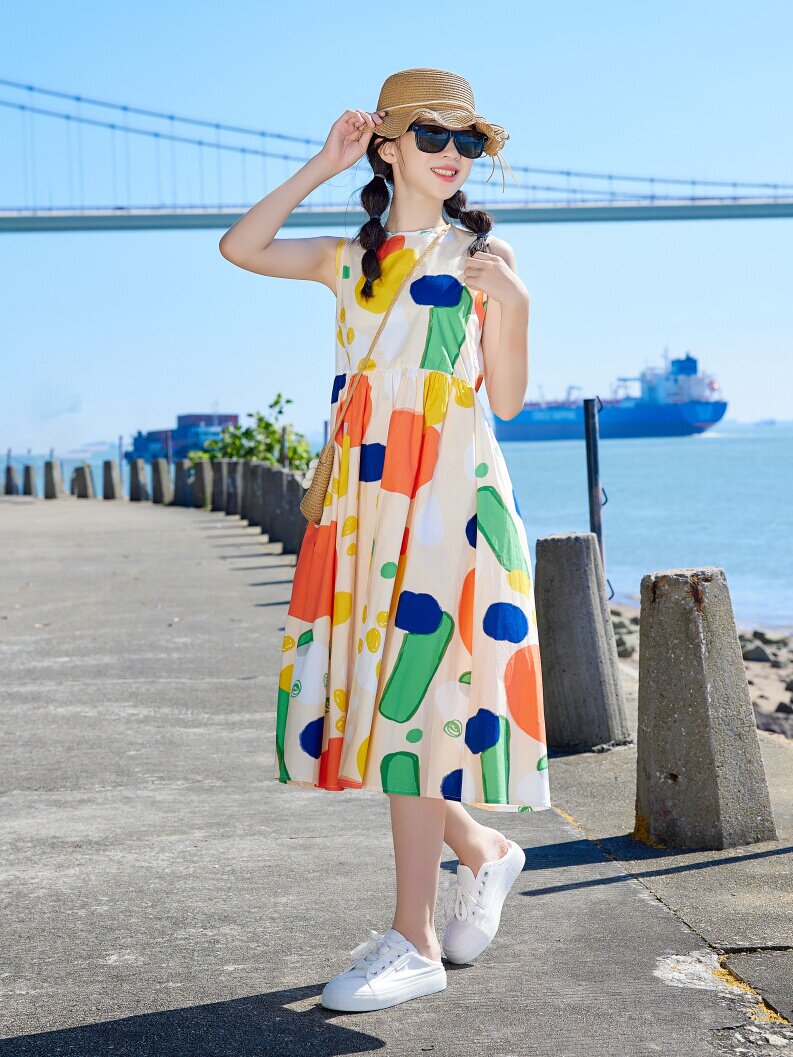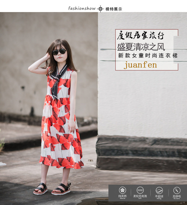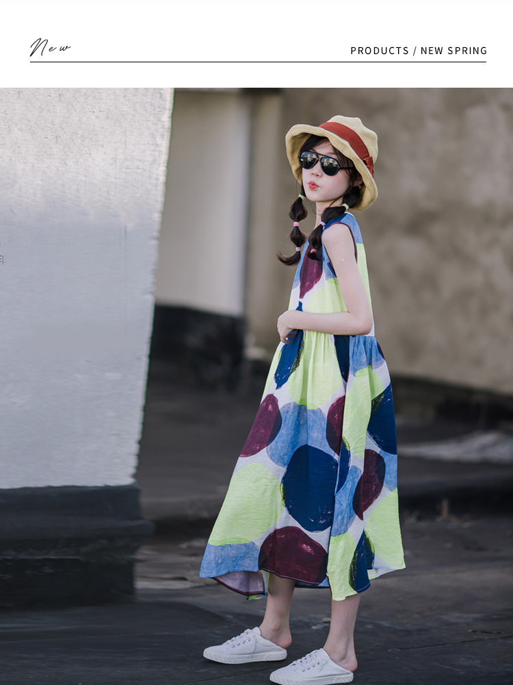 小清新女童沙灘裙洋氣棉波西米亞長裙過膝中大兒童海邊度假連衣裙
