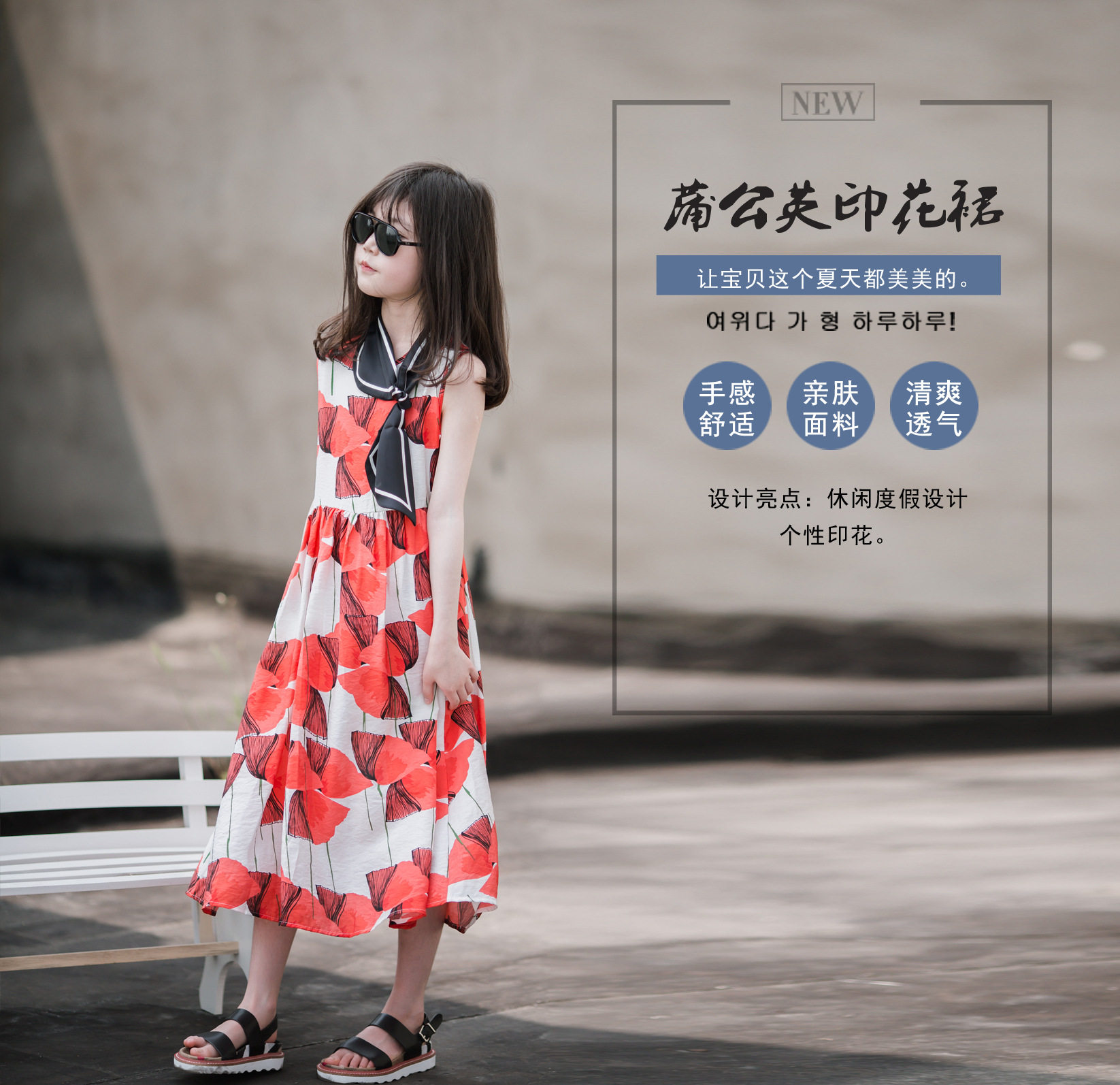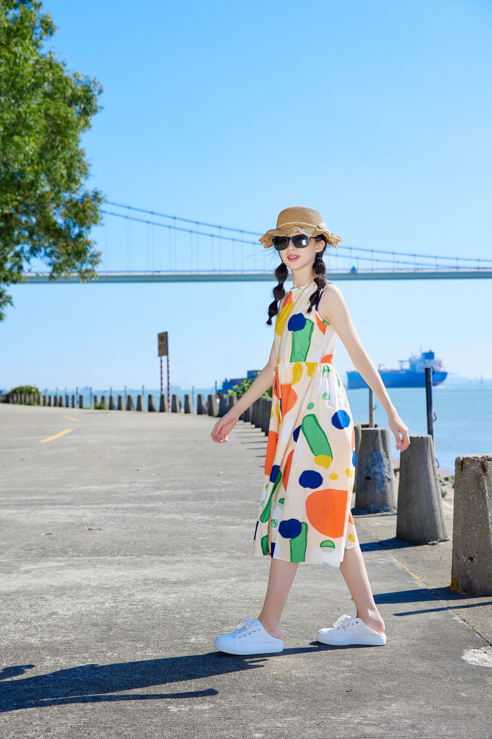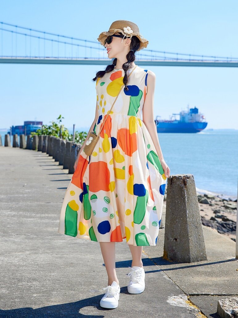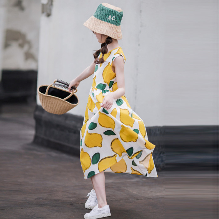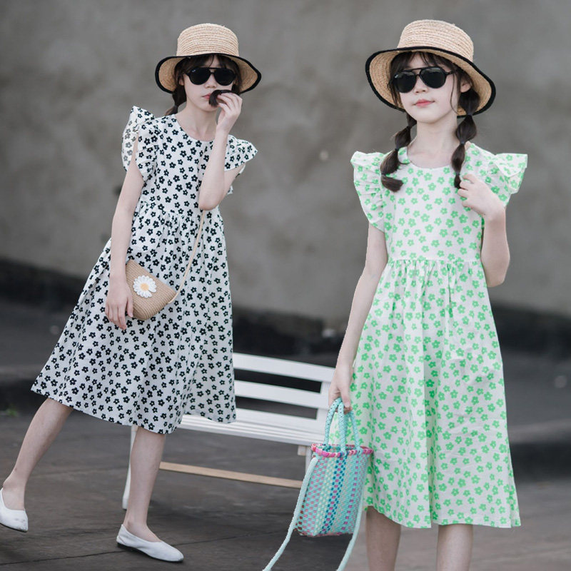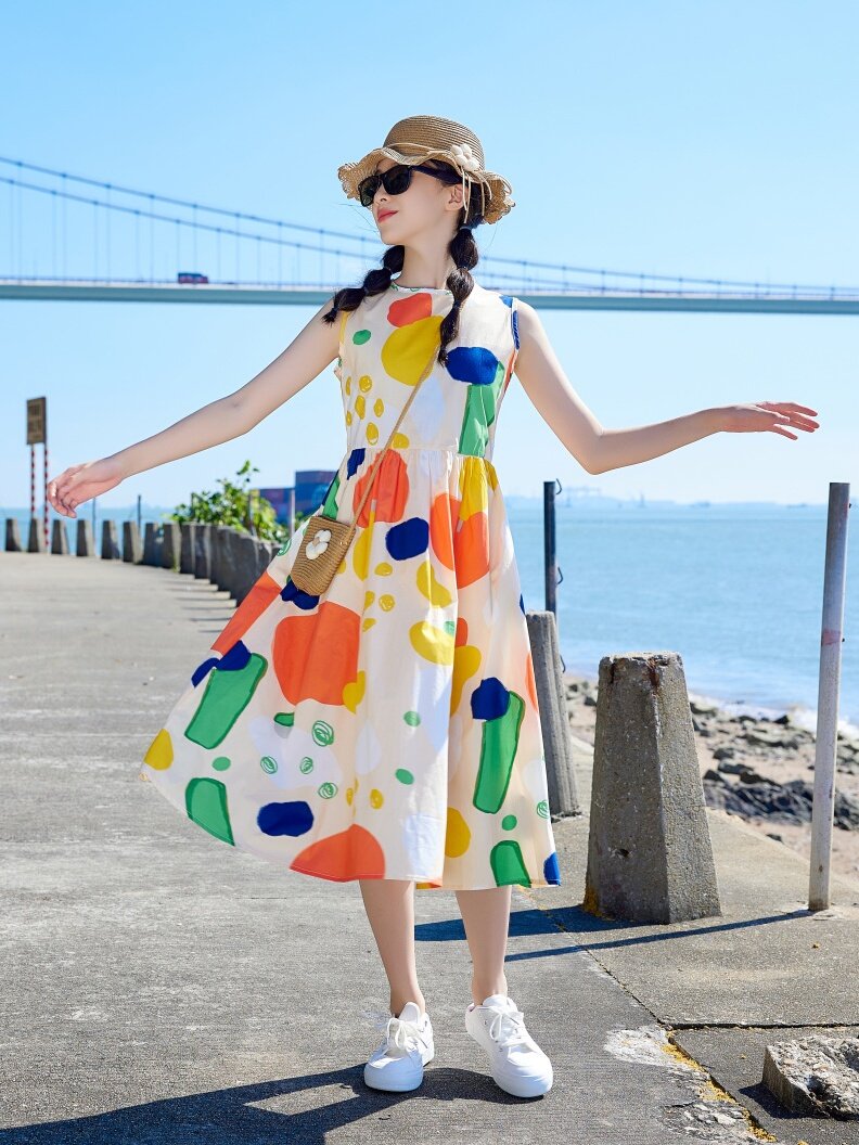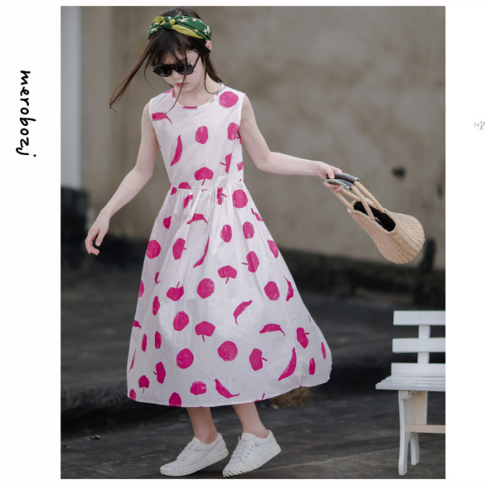 小清新女童沙灘裙洋氣棉波西米亞長裙過膝中大兒童海邊度假連衣裙