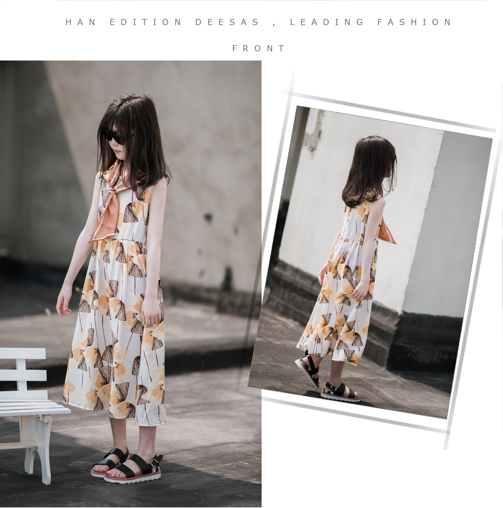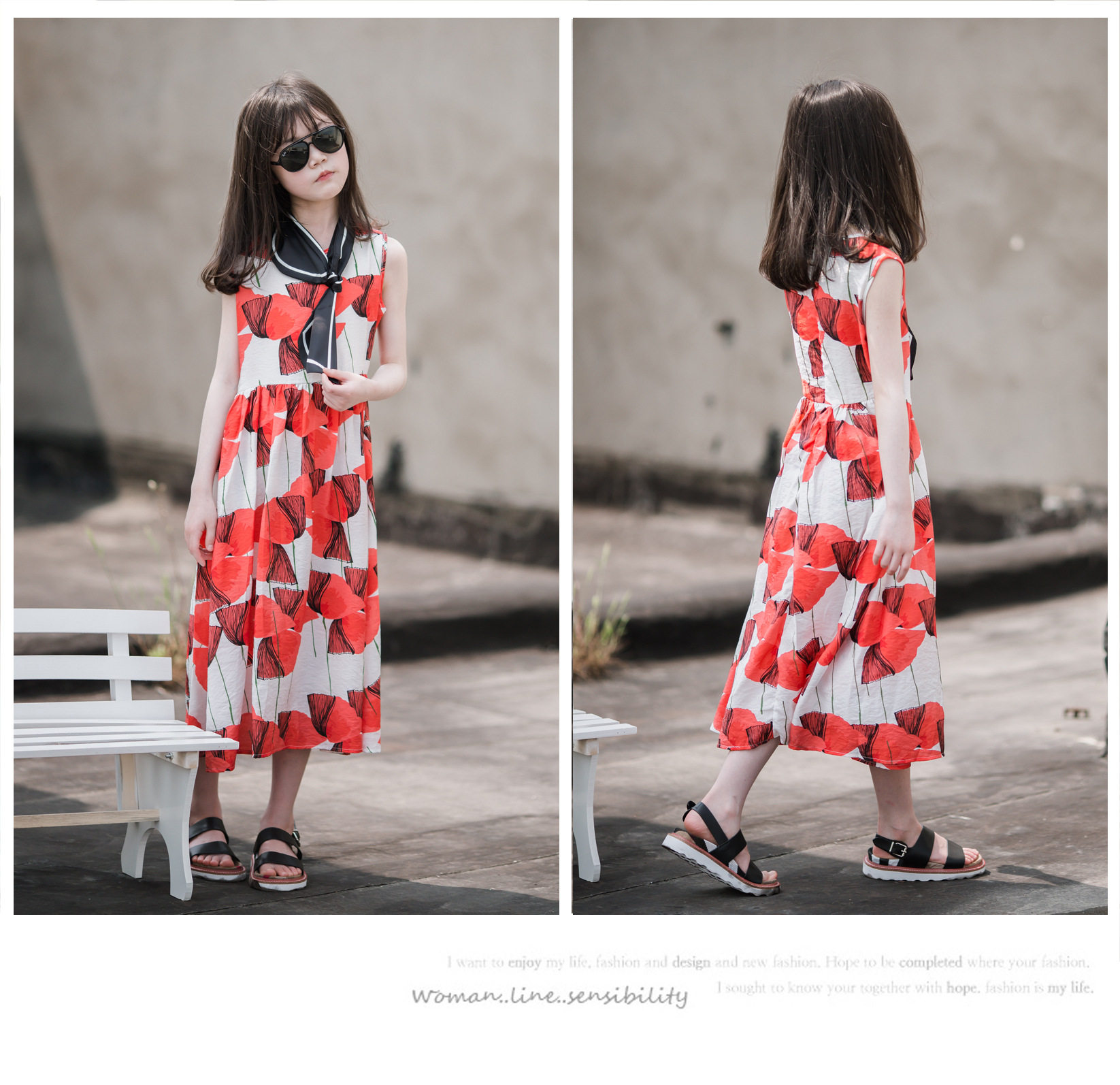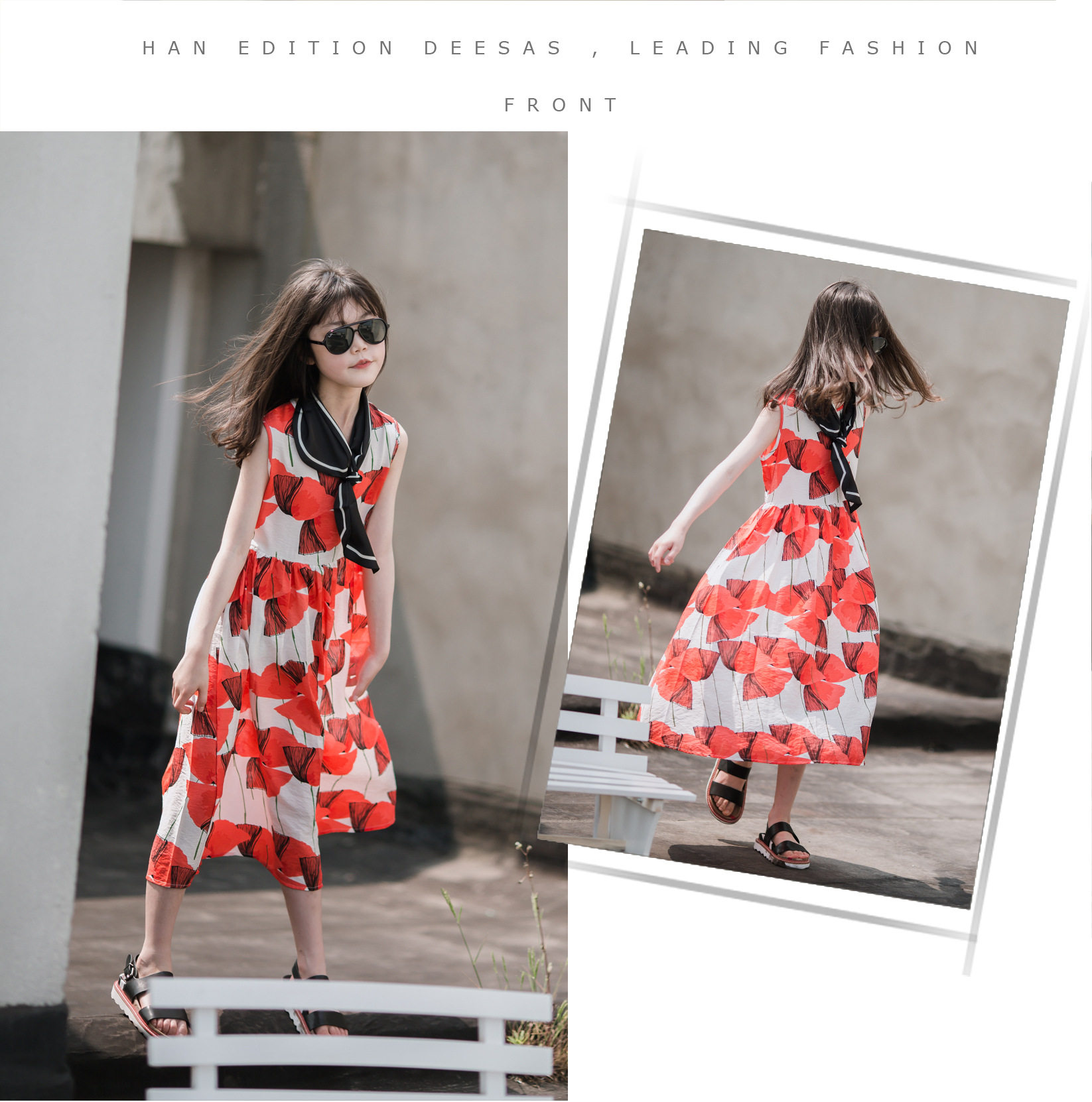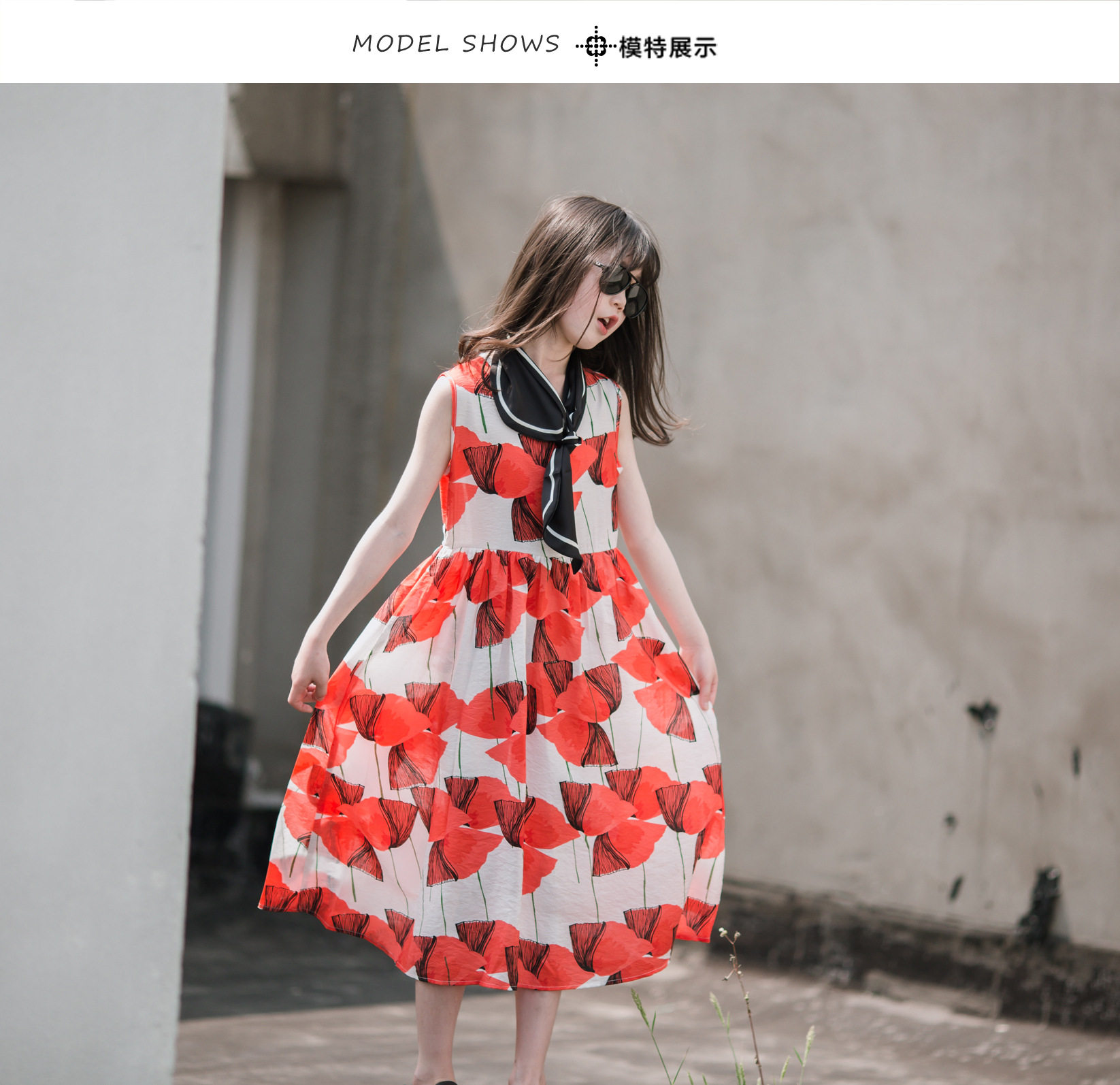小清新女童沙灘裙洋氣棉波西米亞長裙過膝中大兒童海邊度假連衣裙