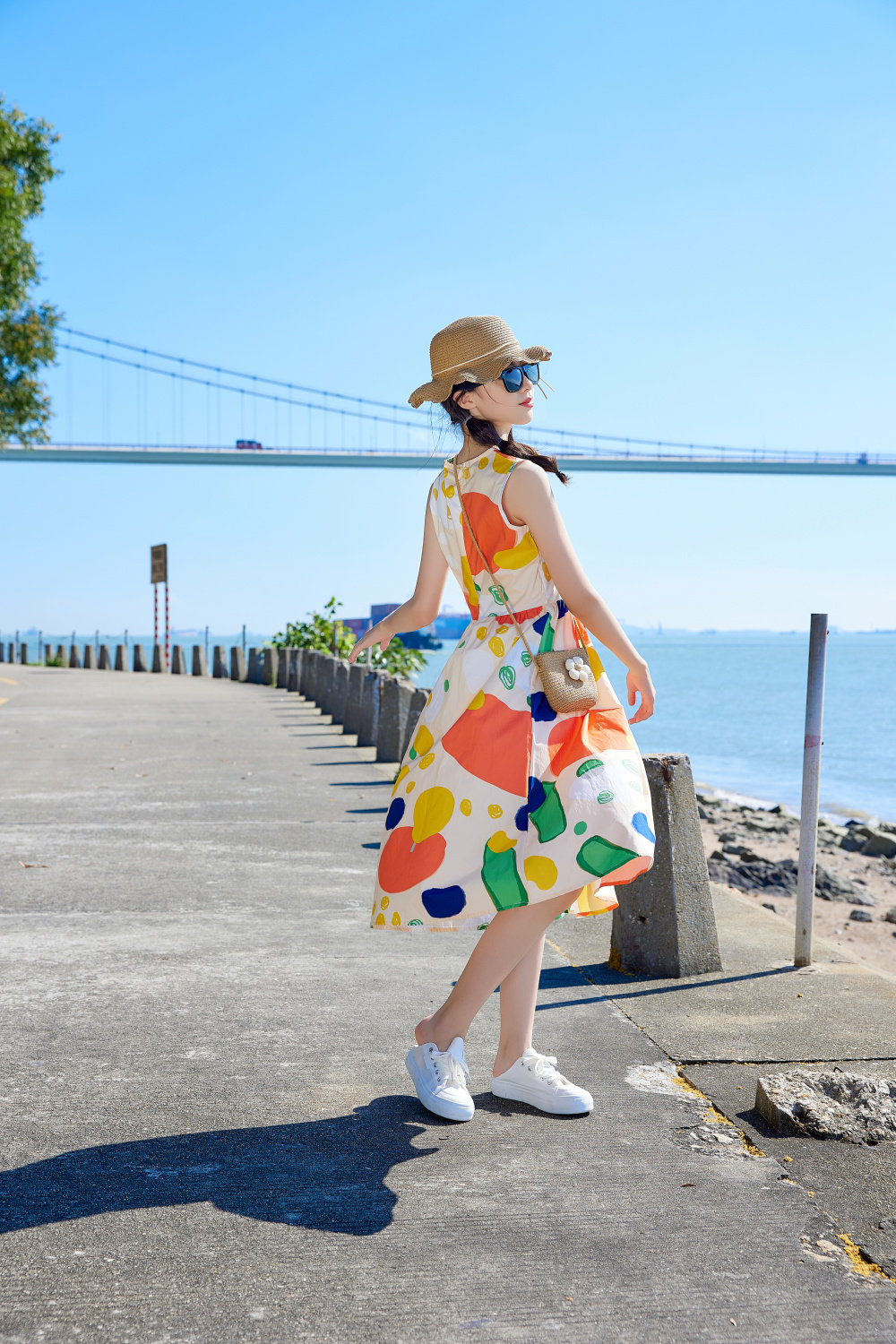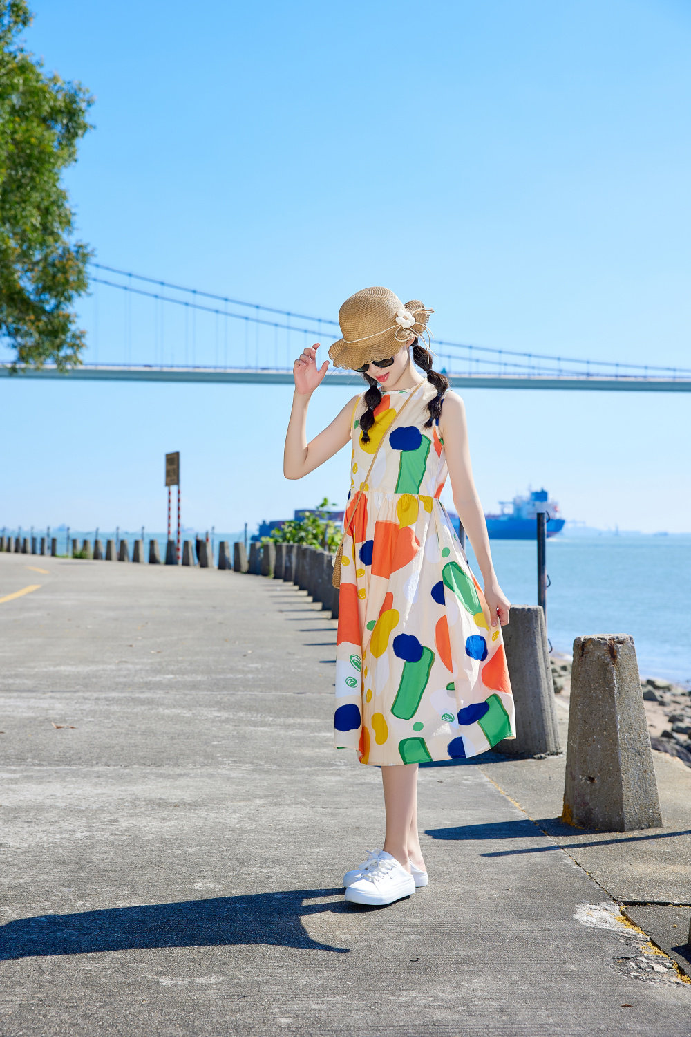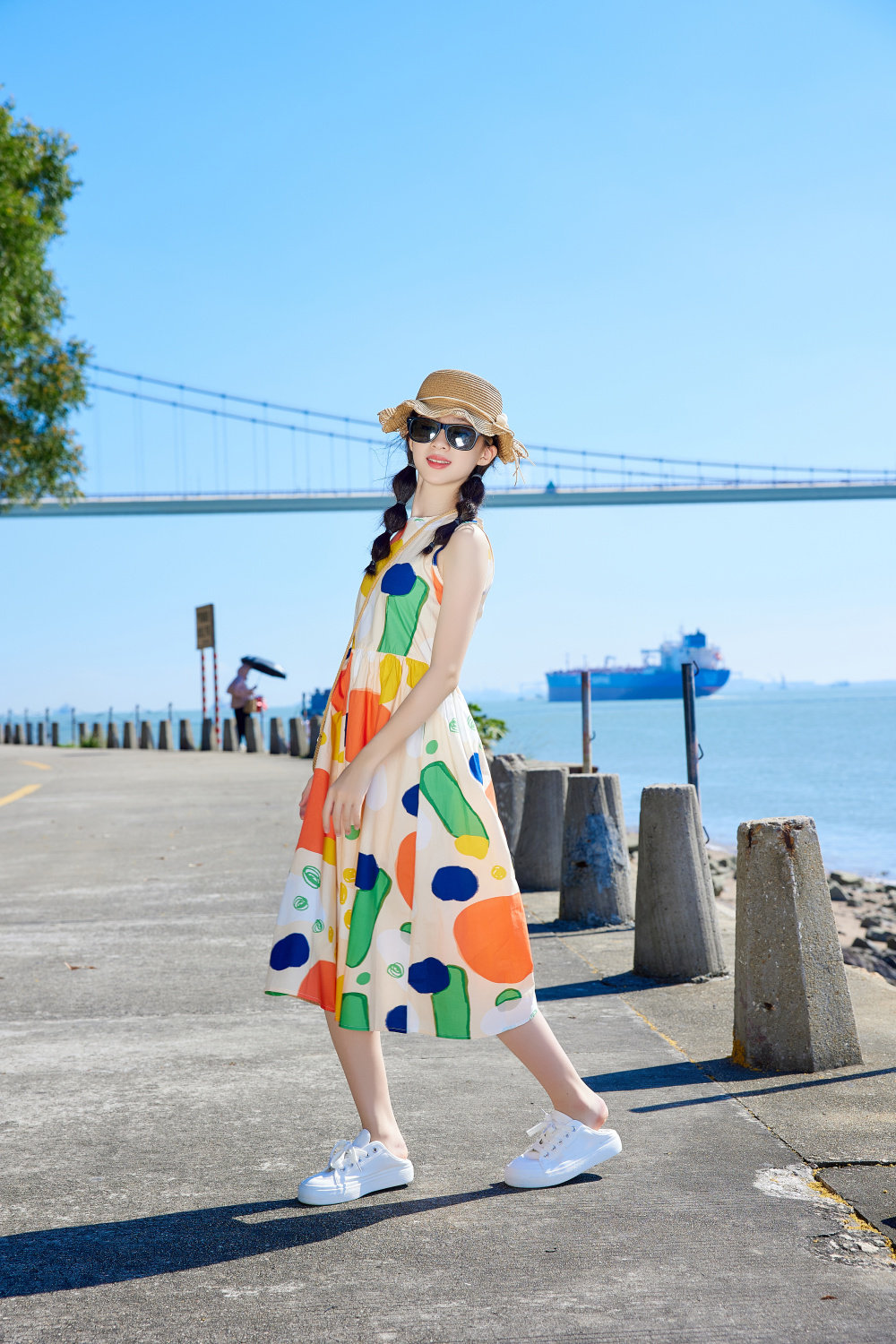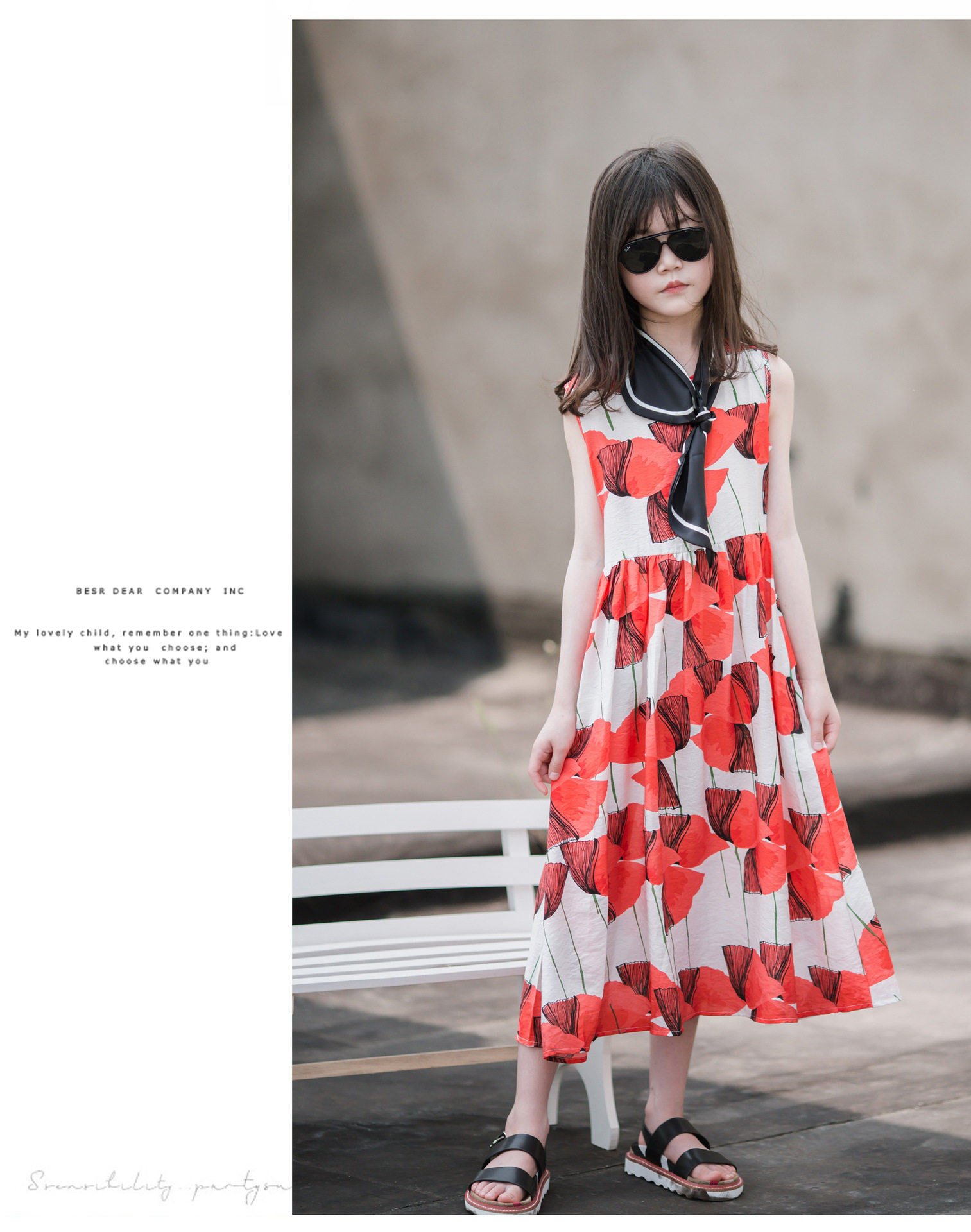小清新女童沙灘裙洋氣棉波西米亞長裙過膝中大兒童海邊度假連衣裙