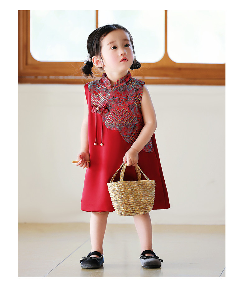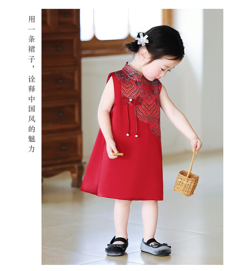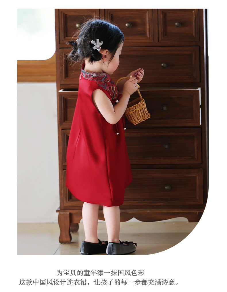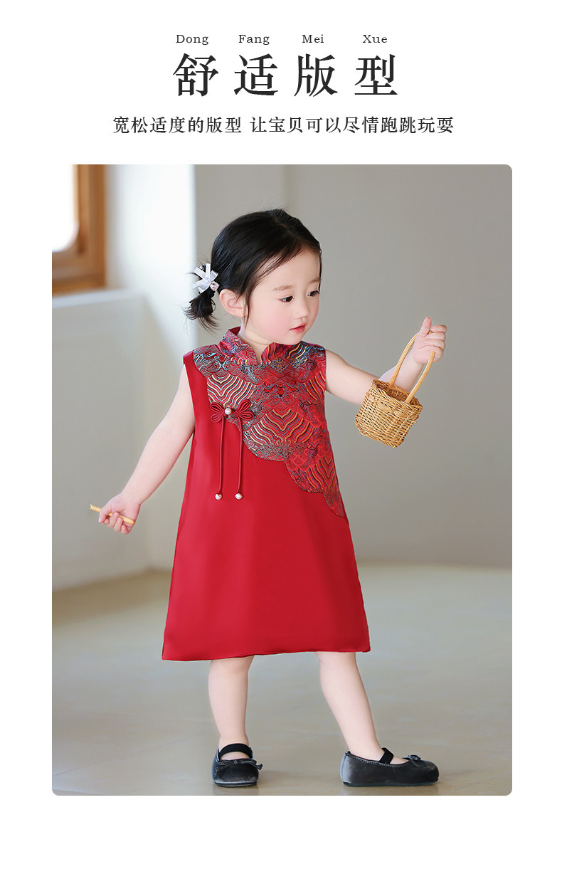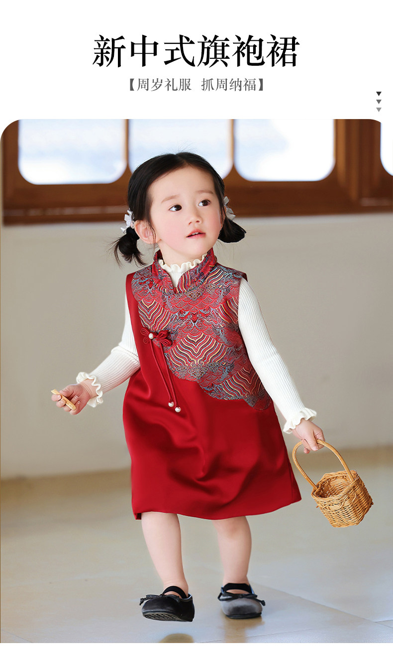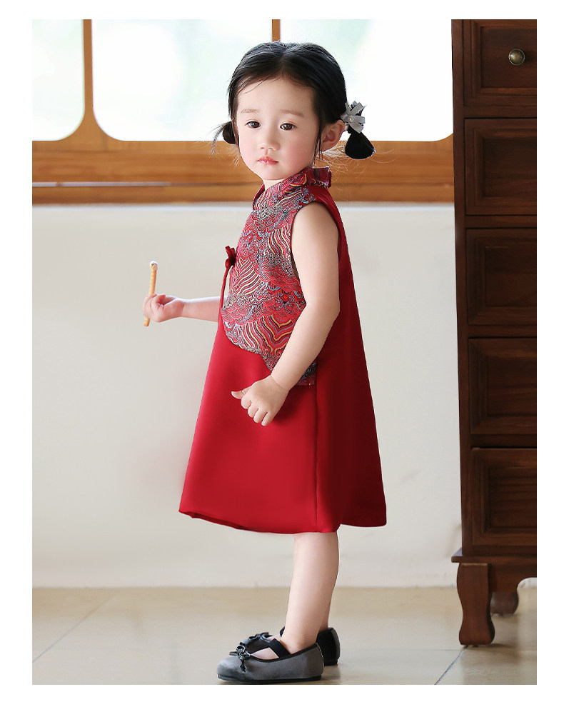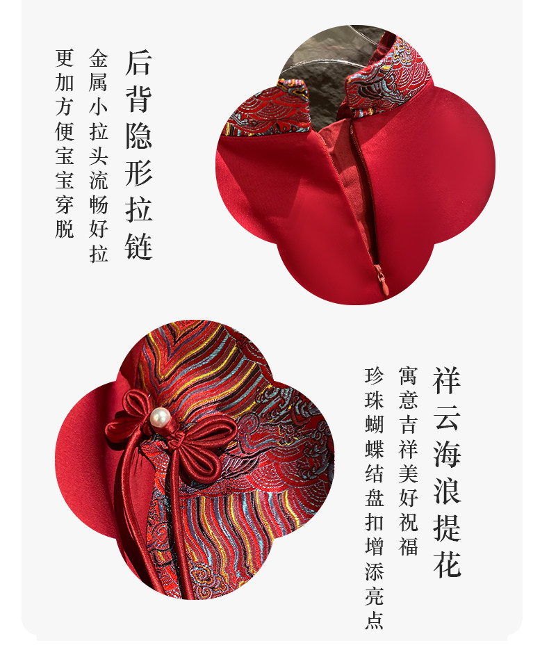 周嵗女寶寶禮服夏抓周宴幼兒童一嵗衣服中式紅色嬰兒生日女童旗袍