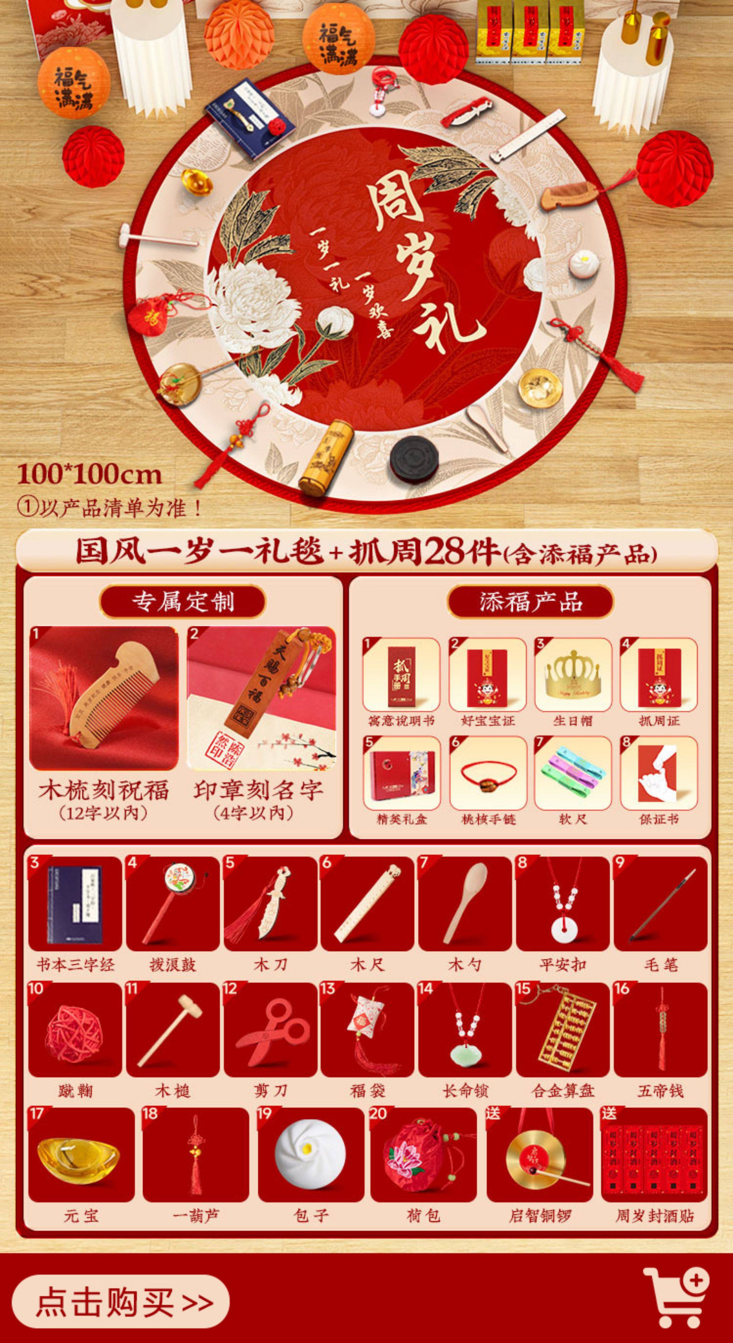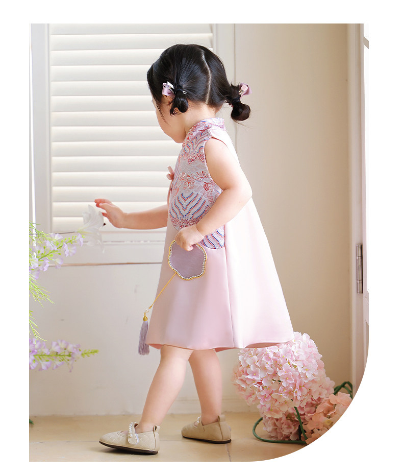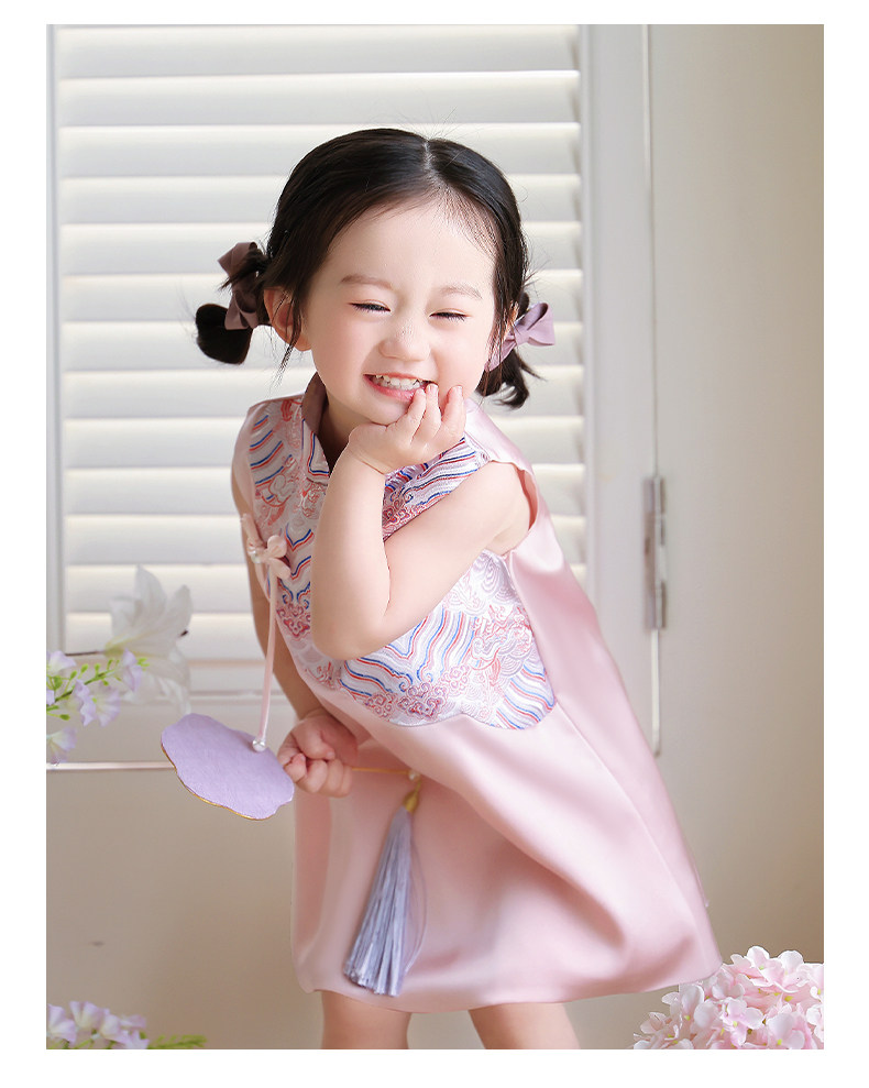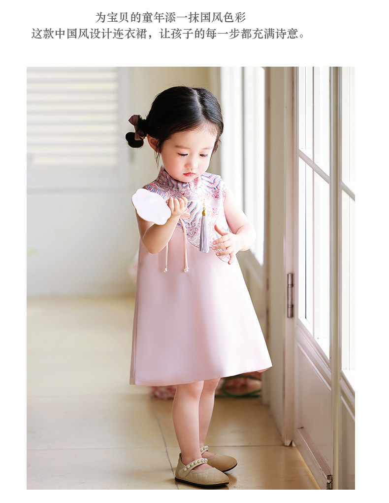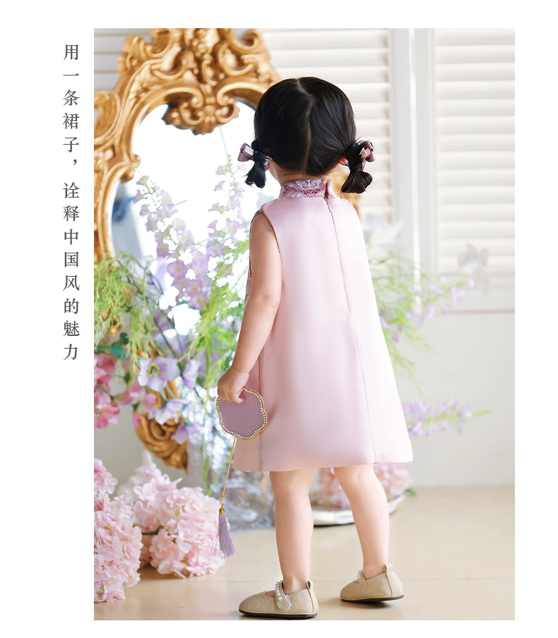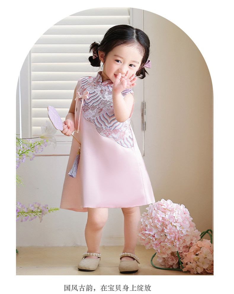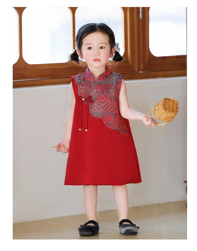 周嵗女寶寶禮服夏抓周宴幼兒童一嵗衣服中式紅色嬰兒生日女童旗袍