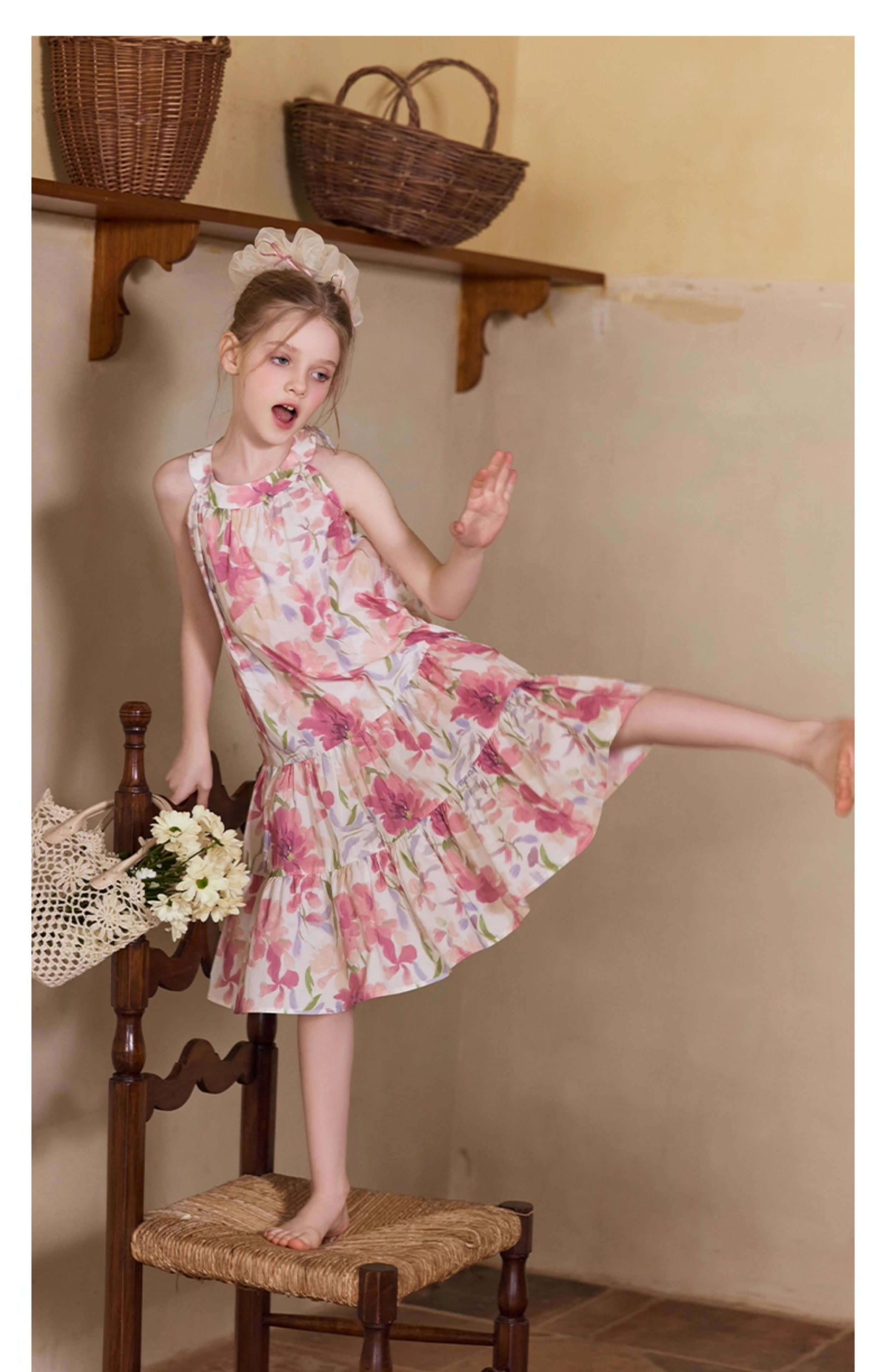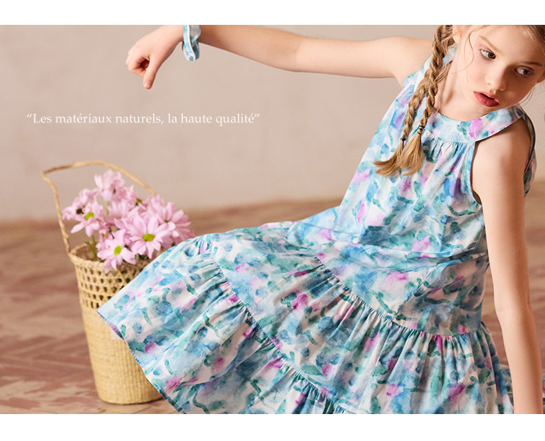 Little Naive連衣裙女童夏季新款純棉碎花裙子兒童無袖慵懶背心裙