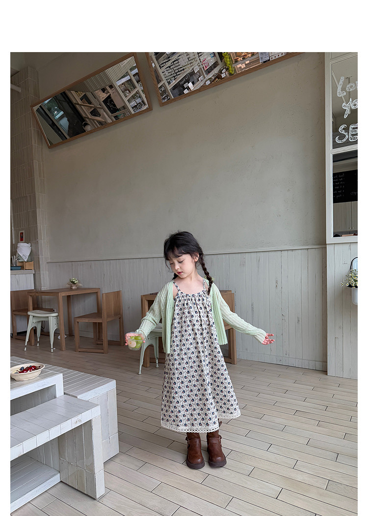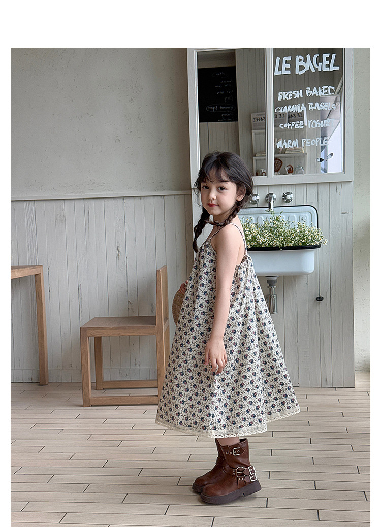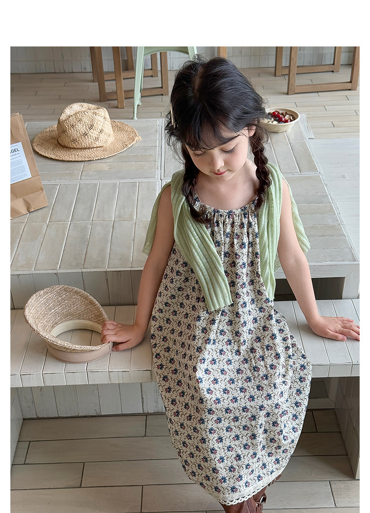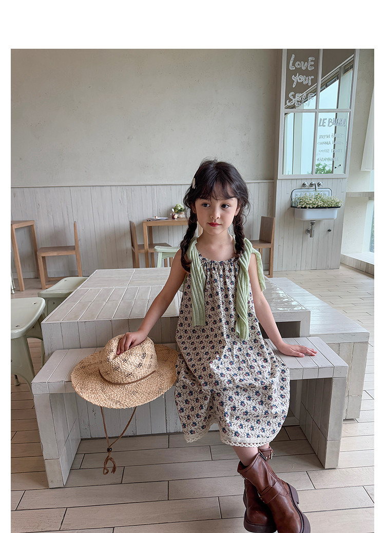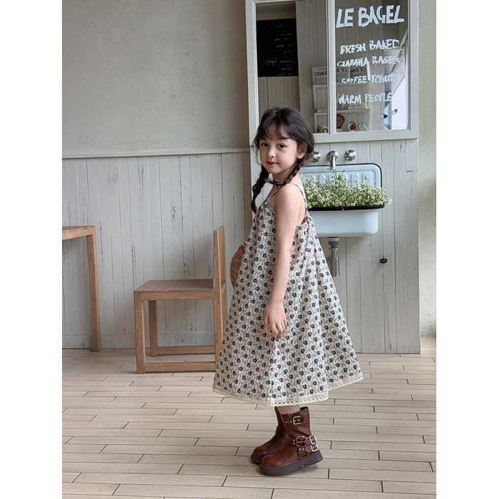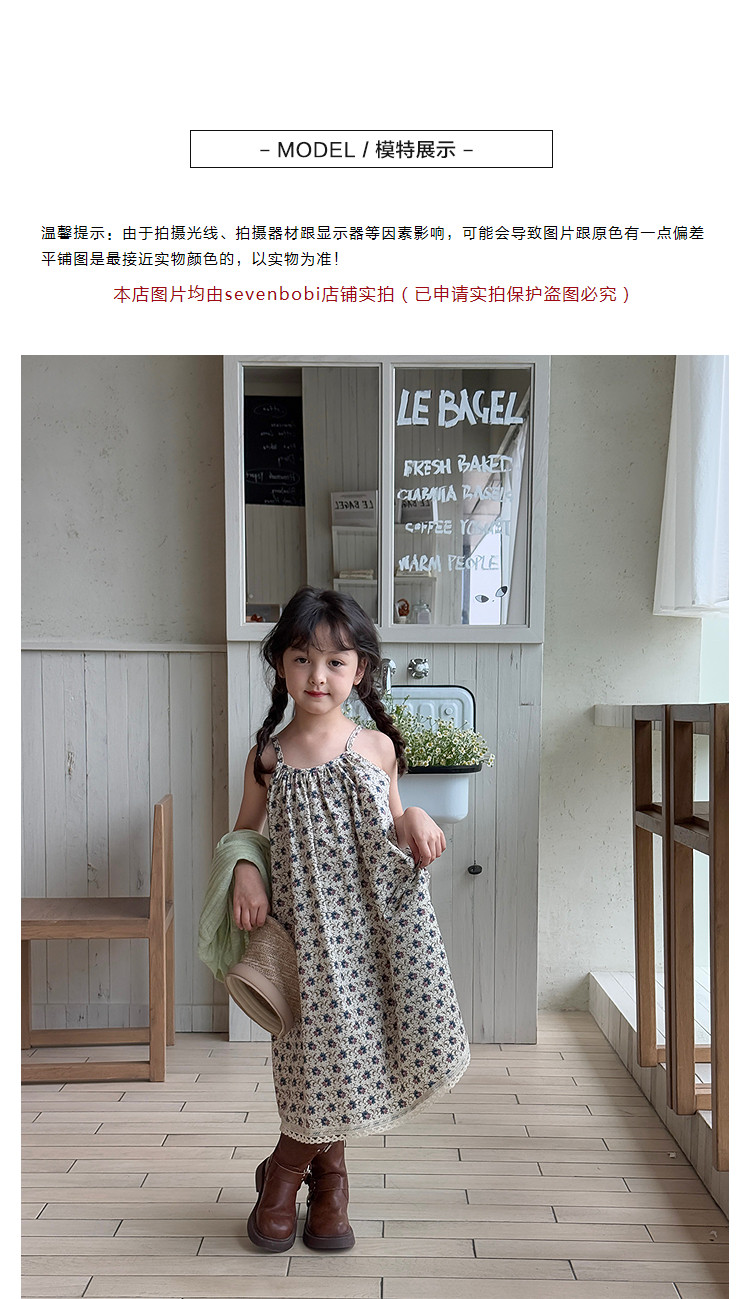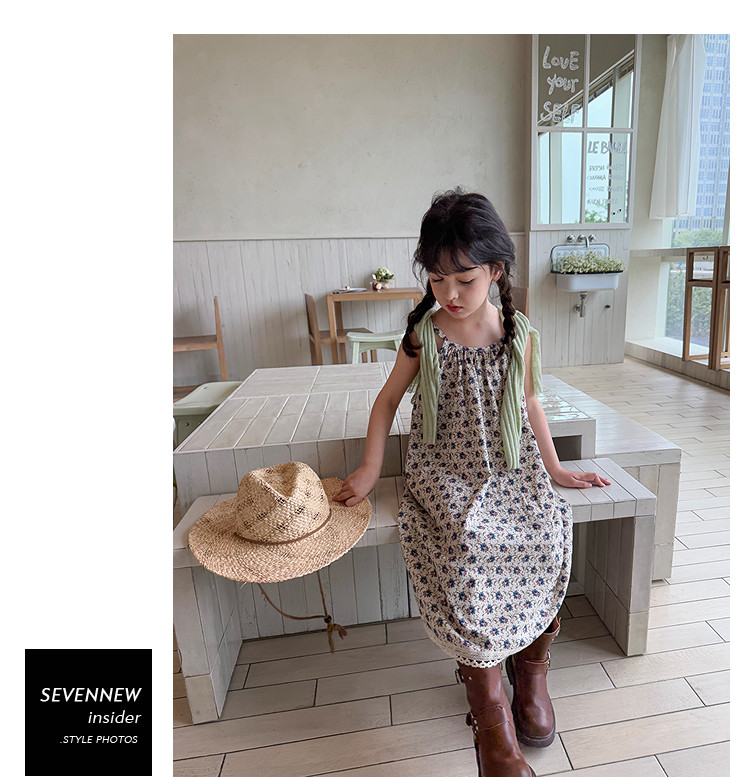 柒號童倉女大童韓版洋氣碎花吊帶裙夏裝新款女童田園風波點連衣裙