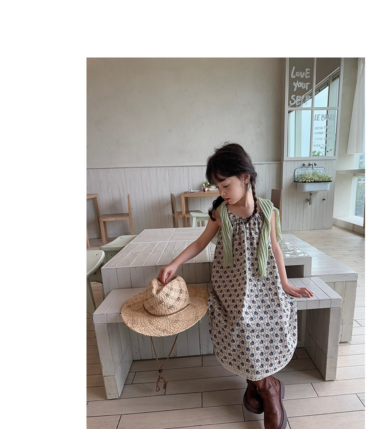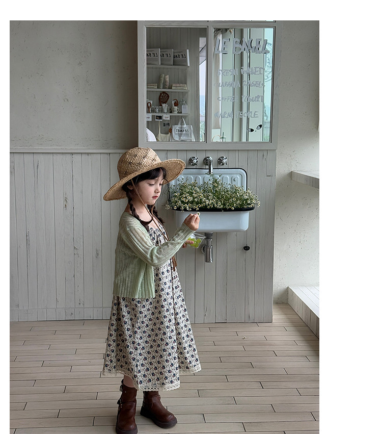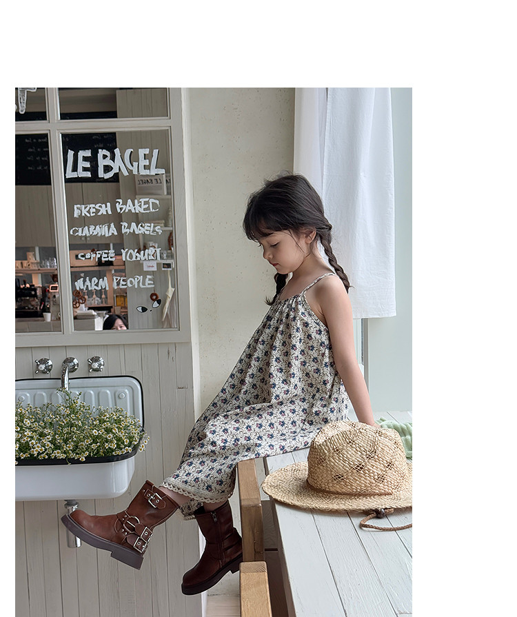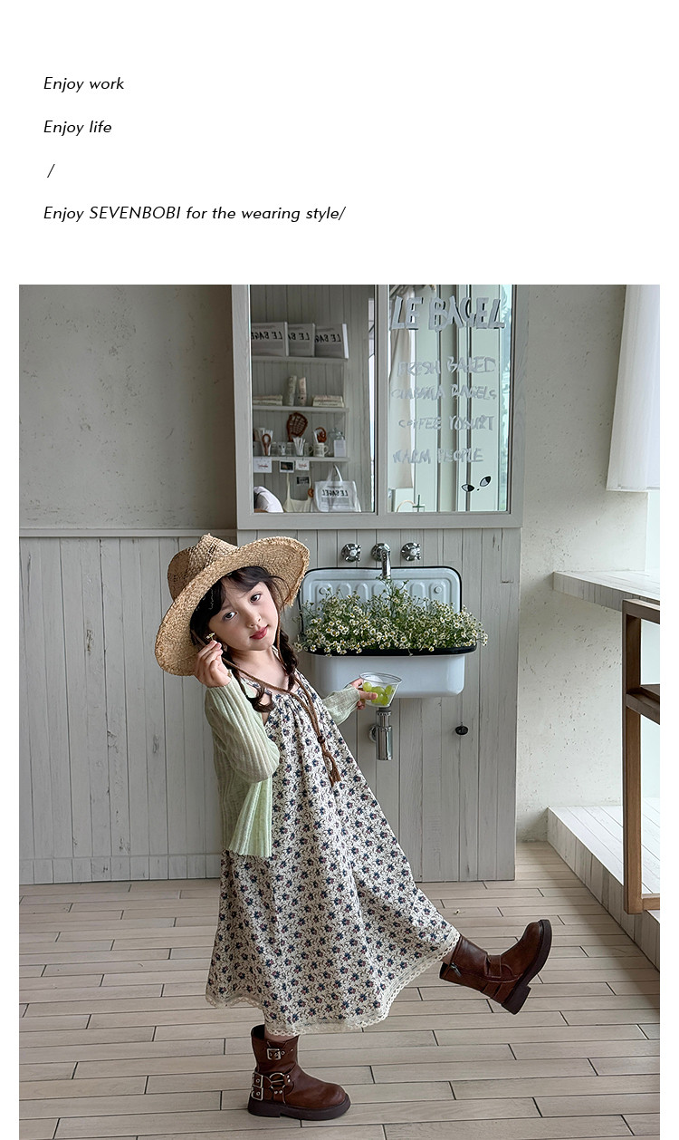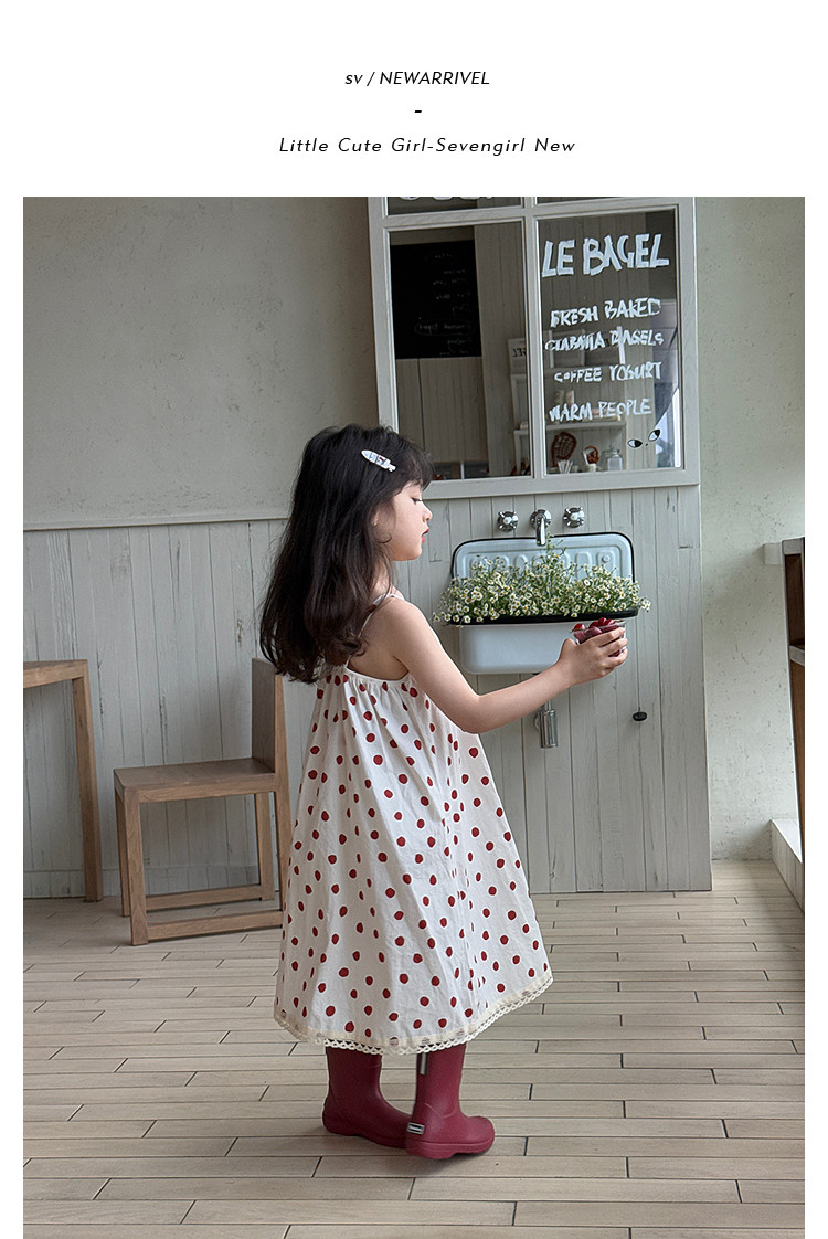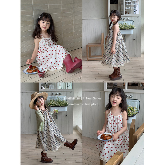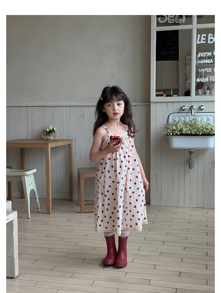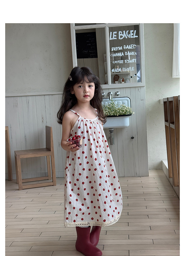 柒號童倉女大童韓版洋氣碎花吊帶裙夏裝新款女童田園風波點連衣裙