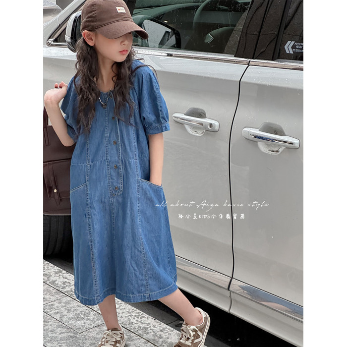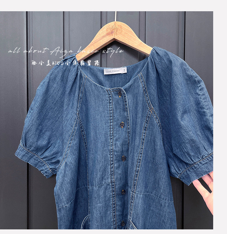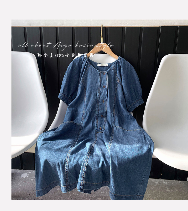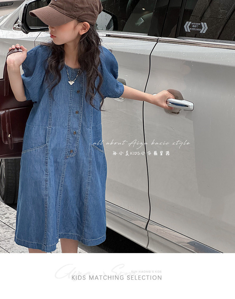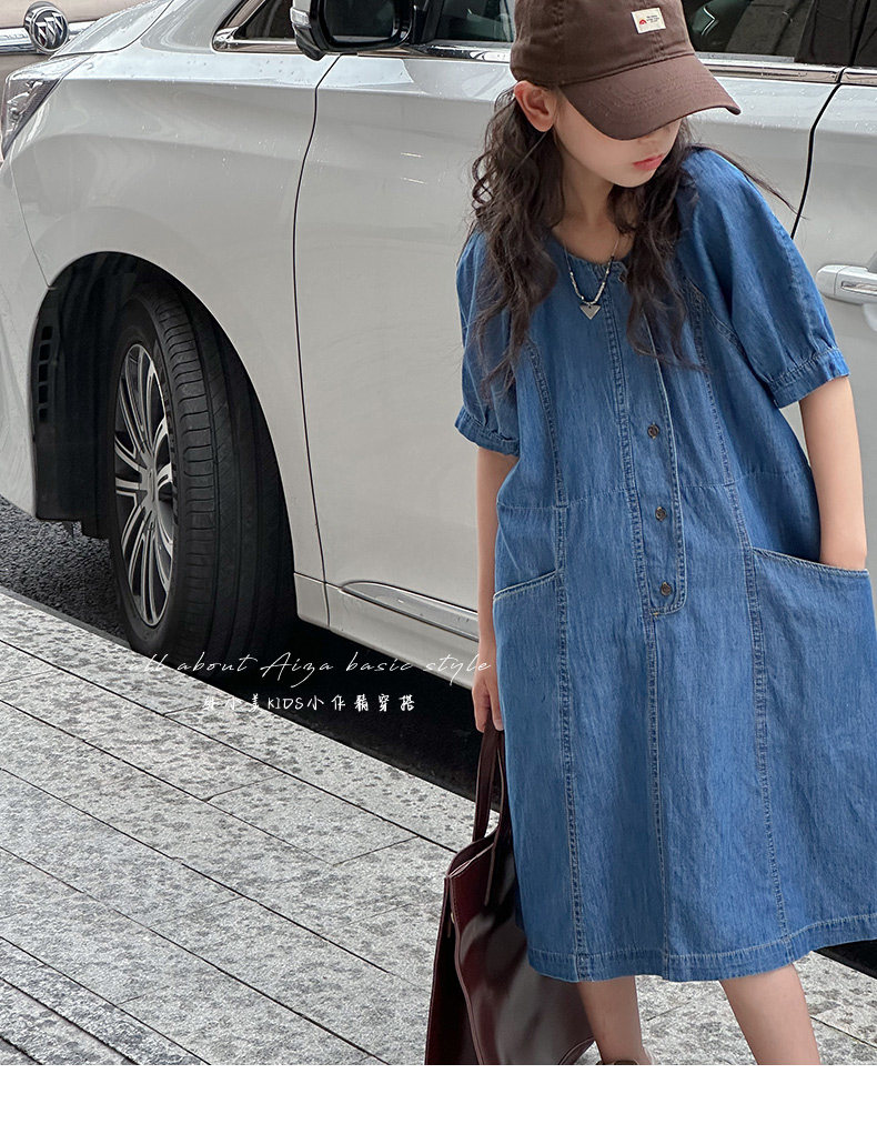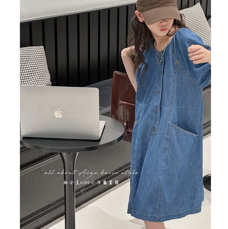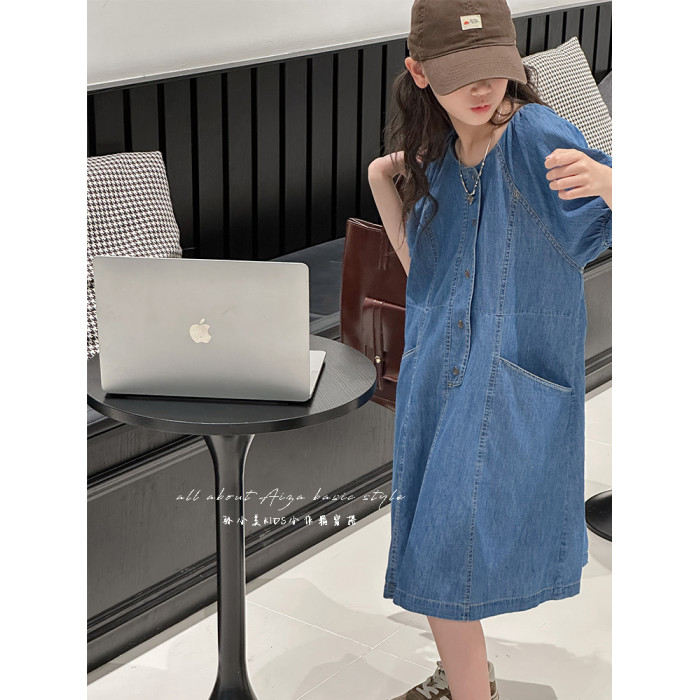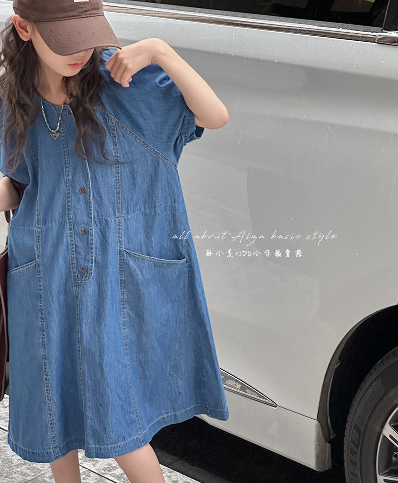 韓國童裝女童牛仔連衣裙夏裝兒童短袖裙子2025新款中大童女孩夏季