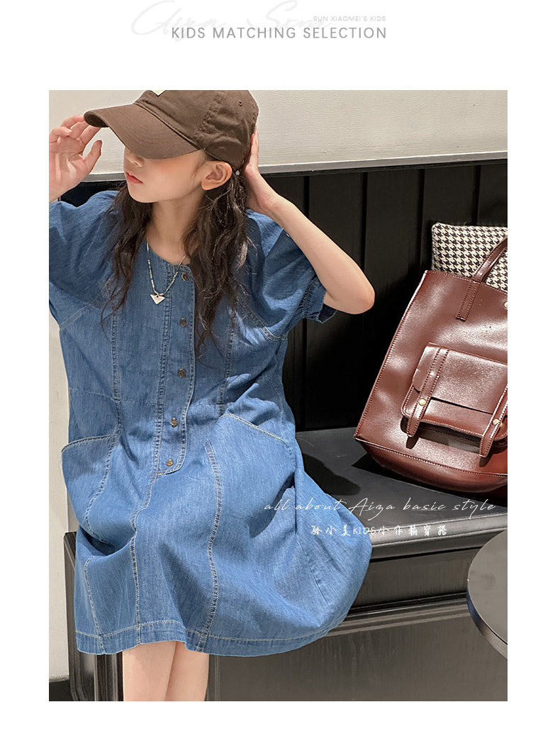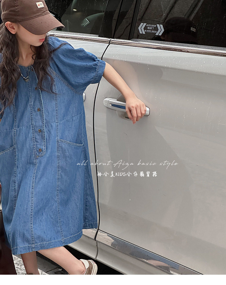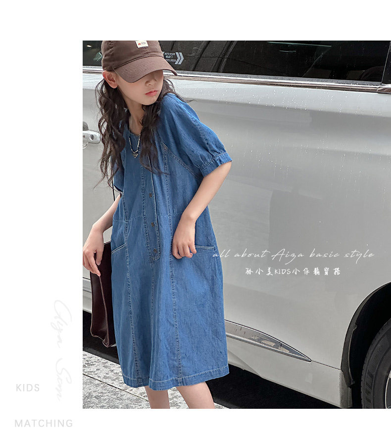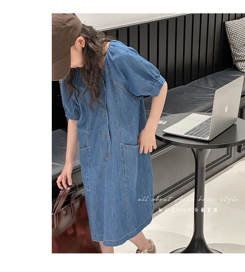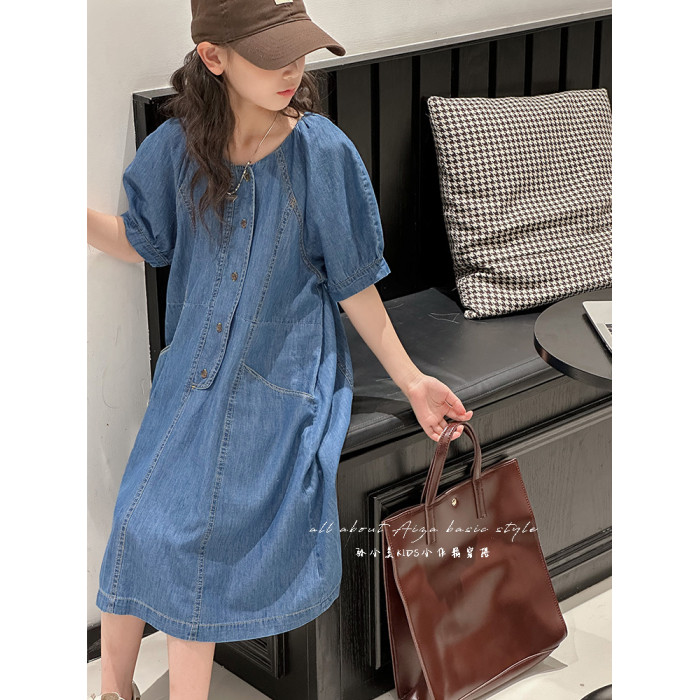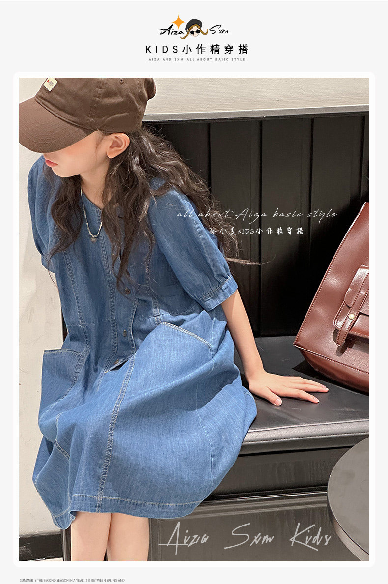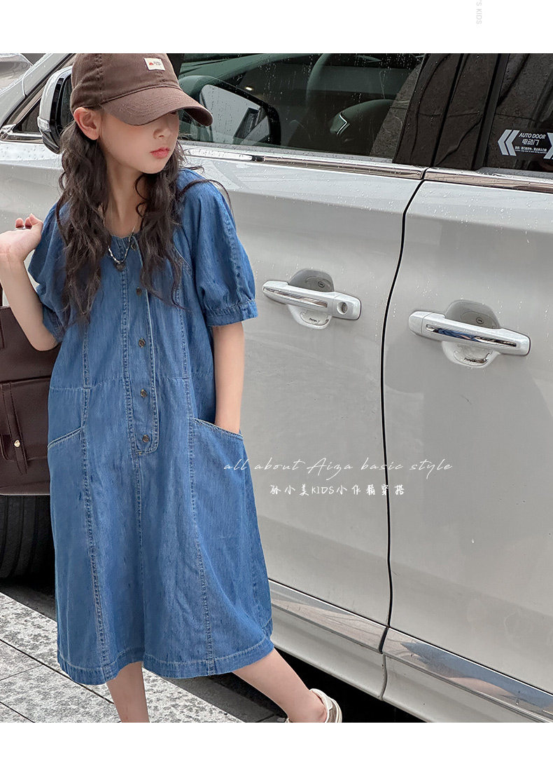 韓國童裝女童牛仔連衣裙夏裝兒童短袖裙子2025新款中大童女孩夏季