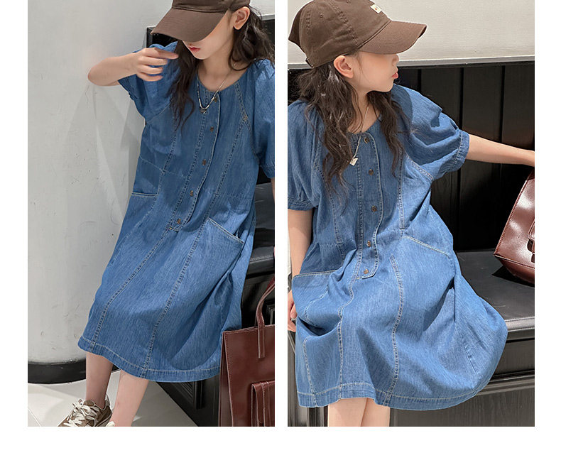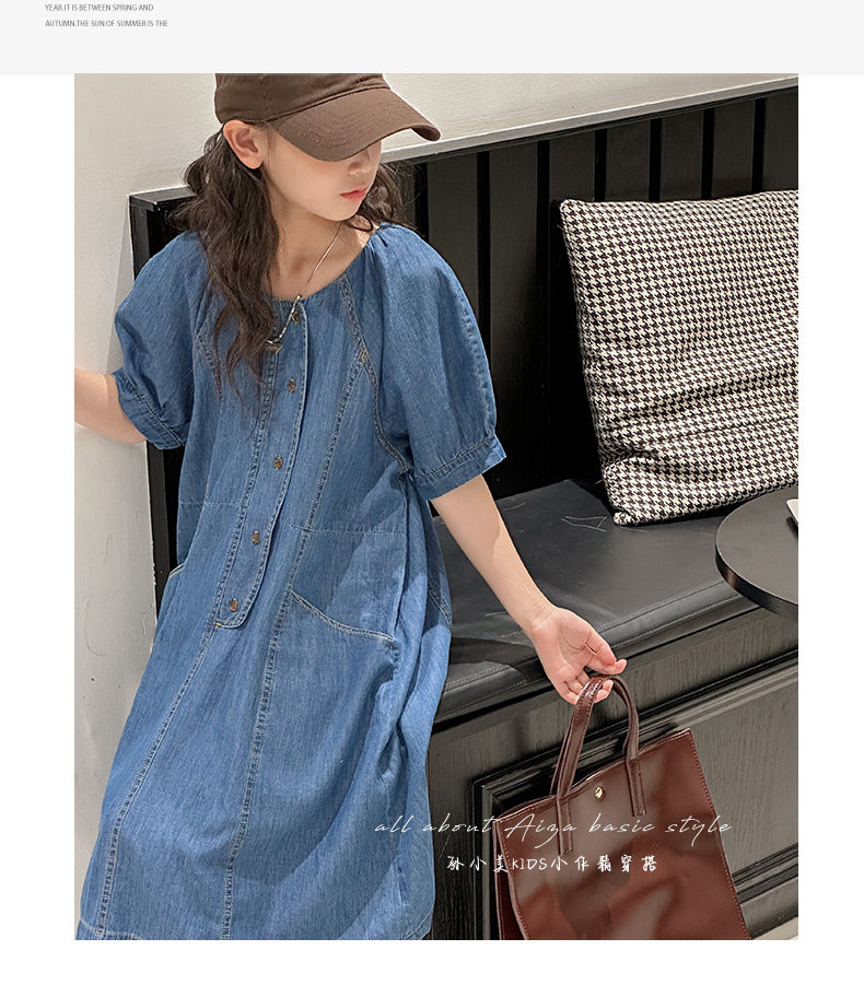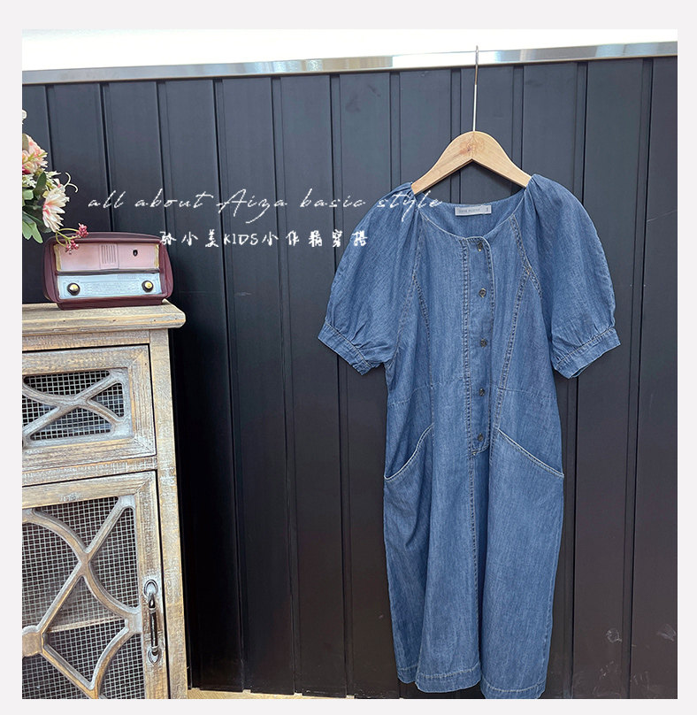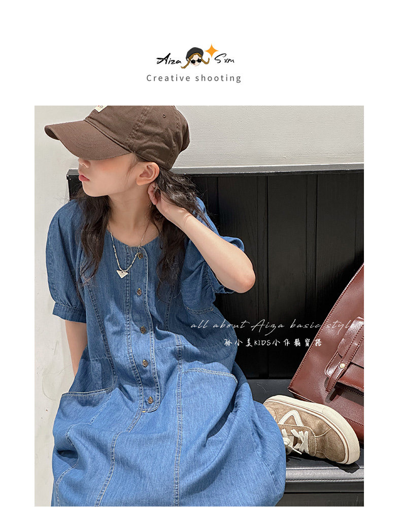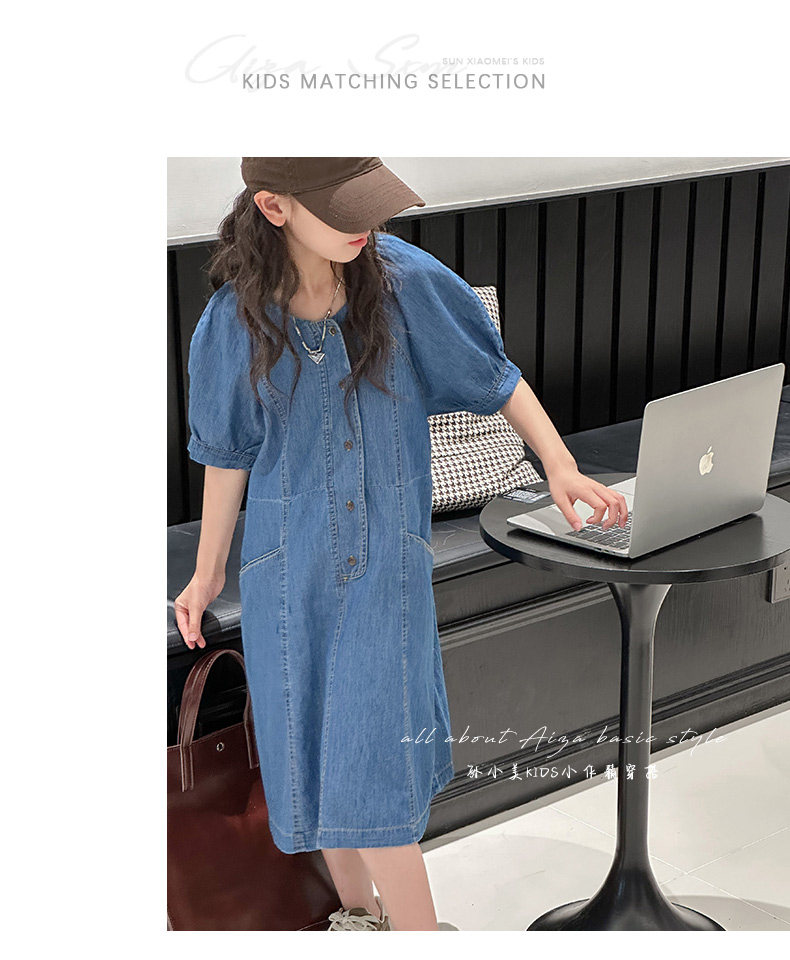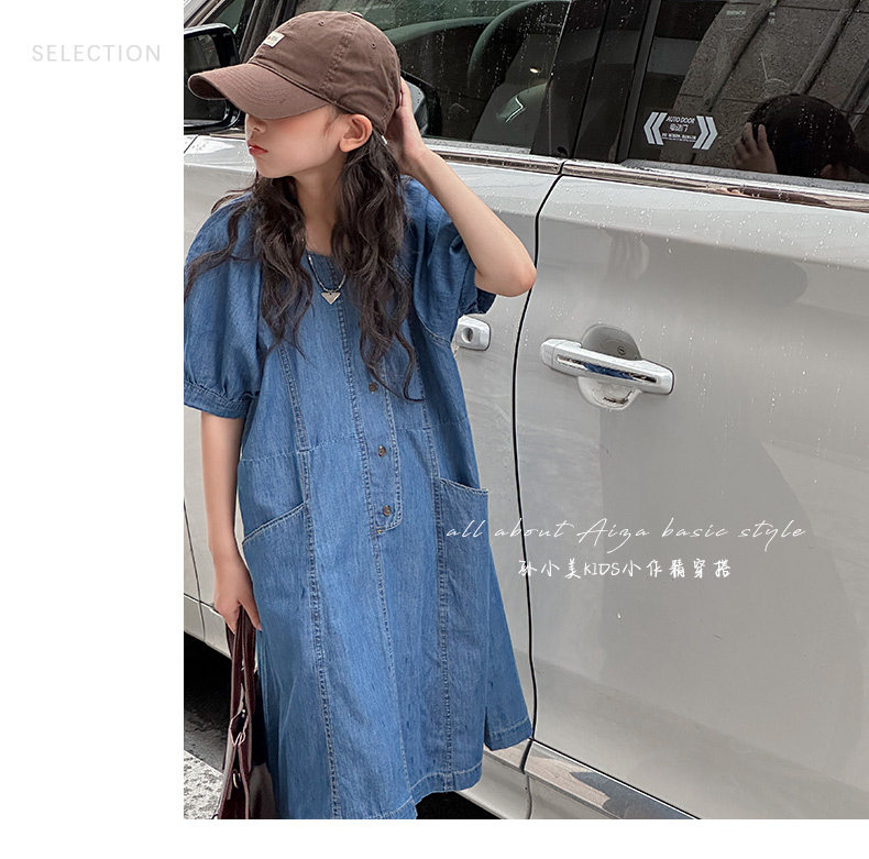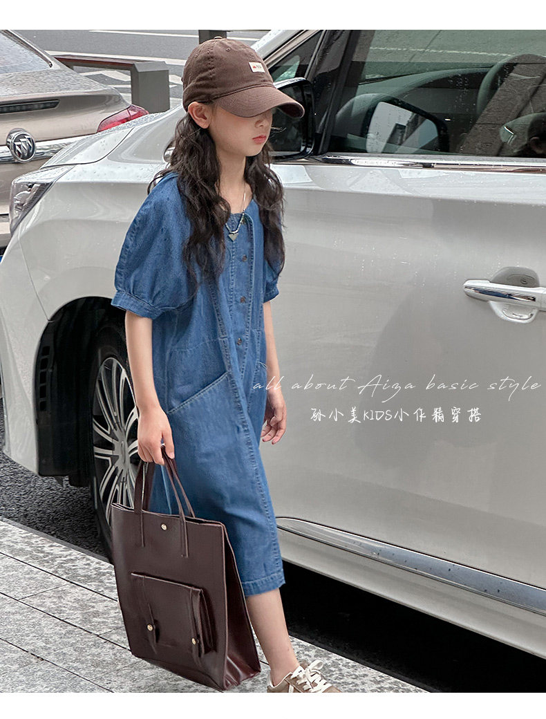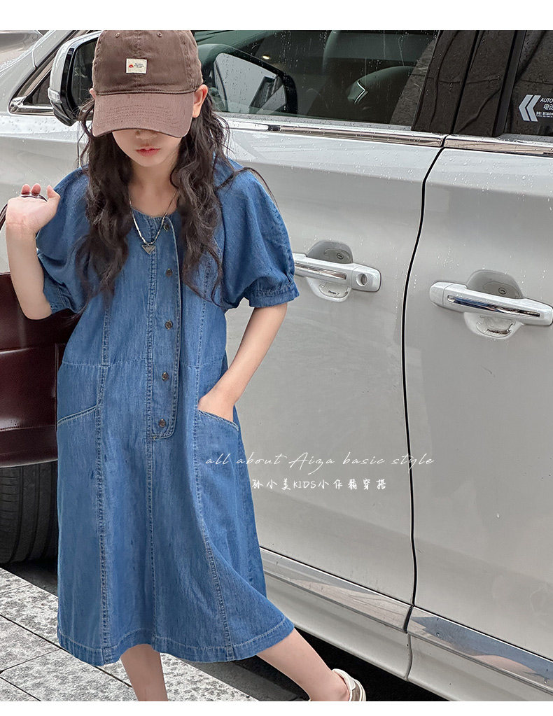 韓國童裝女童牛仔連衣裙夏裝兒童短袖裙子2025新款中大童女孩夏季