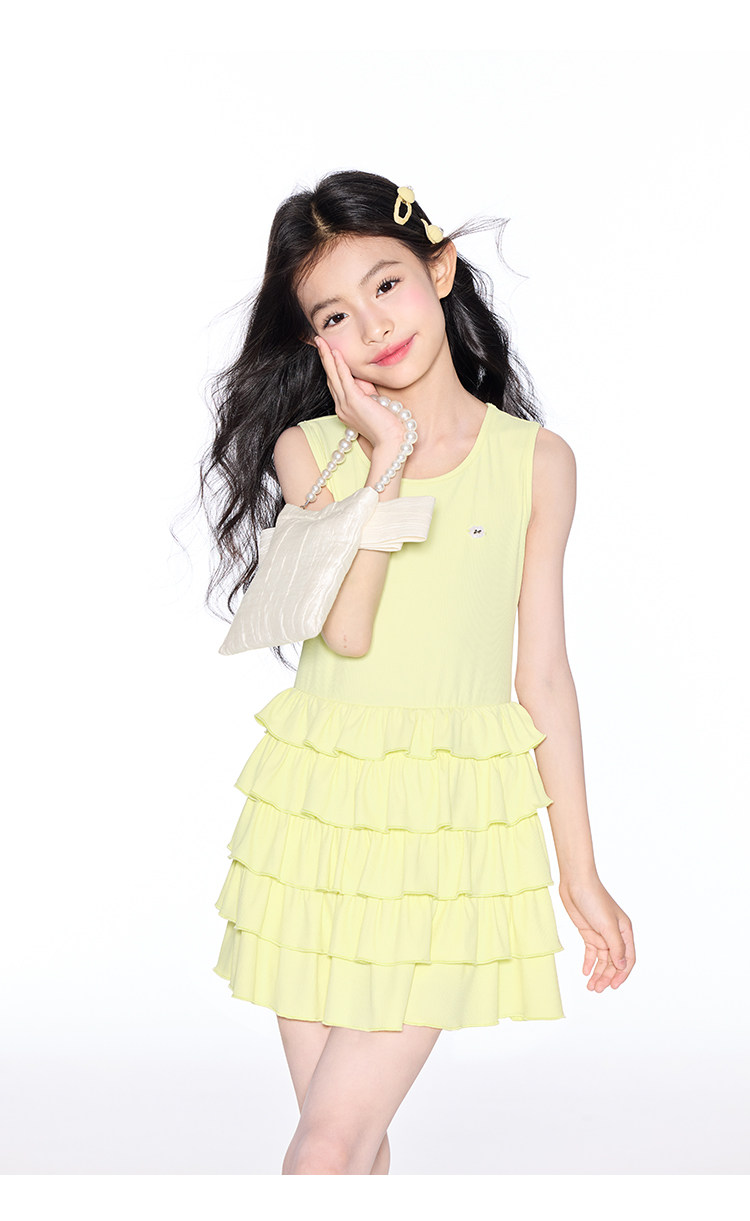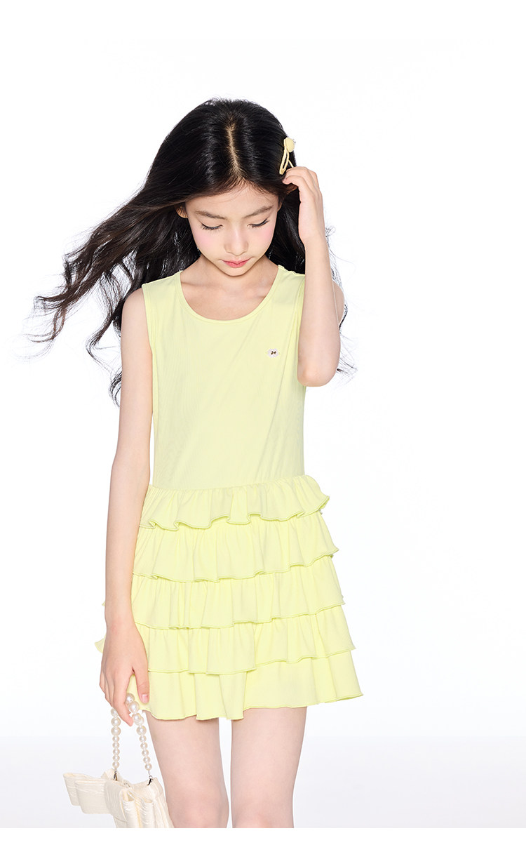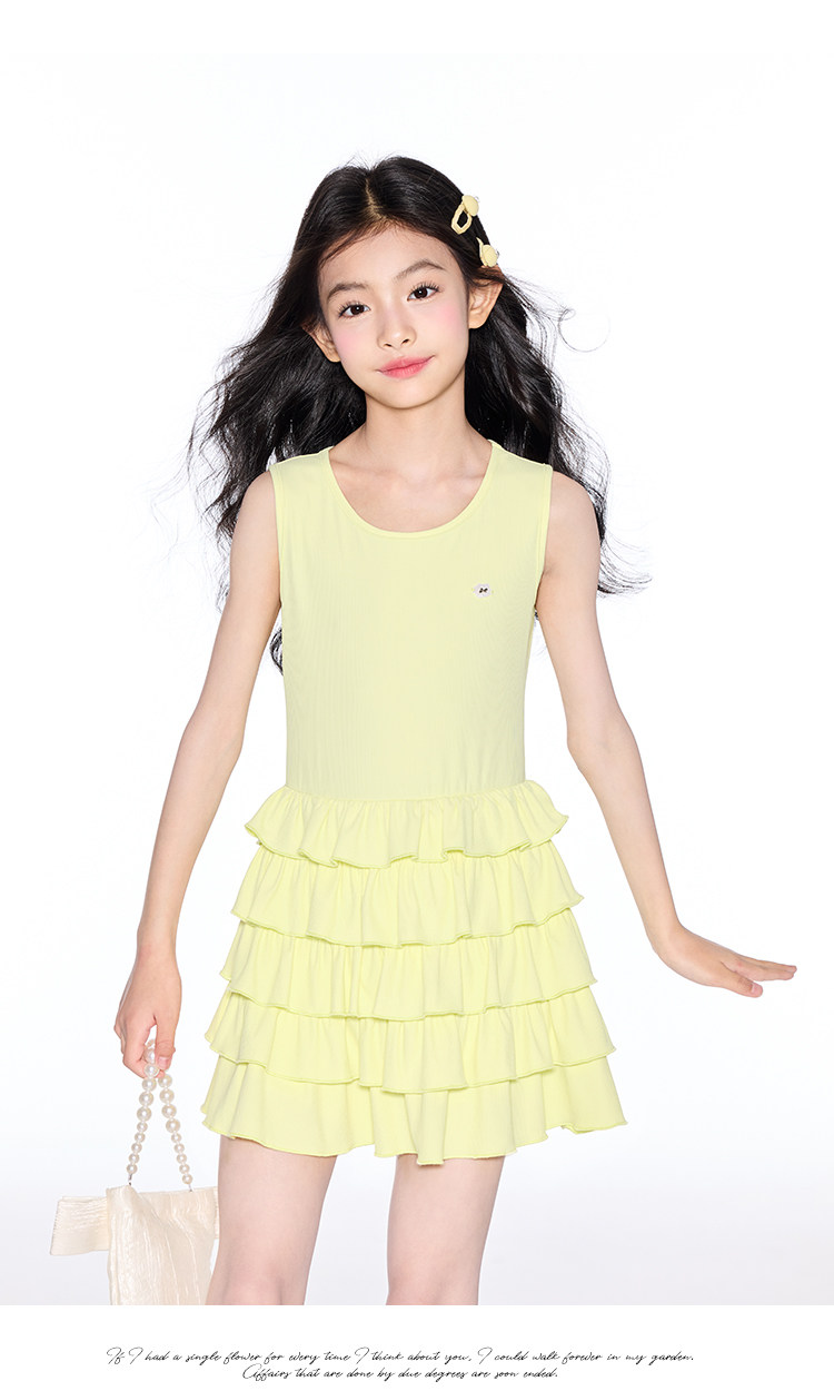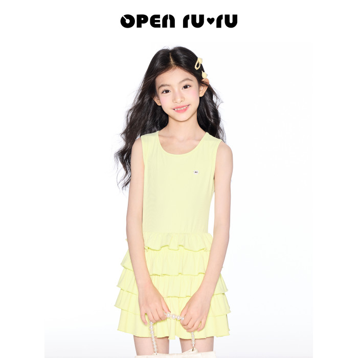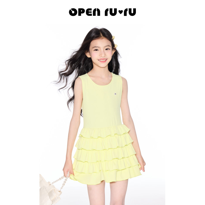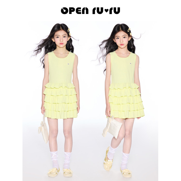opennunu女童花邊無袖背心裙夏季兒童設計感蛋糕裙圓領親膚連衣裙