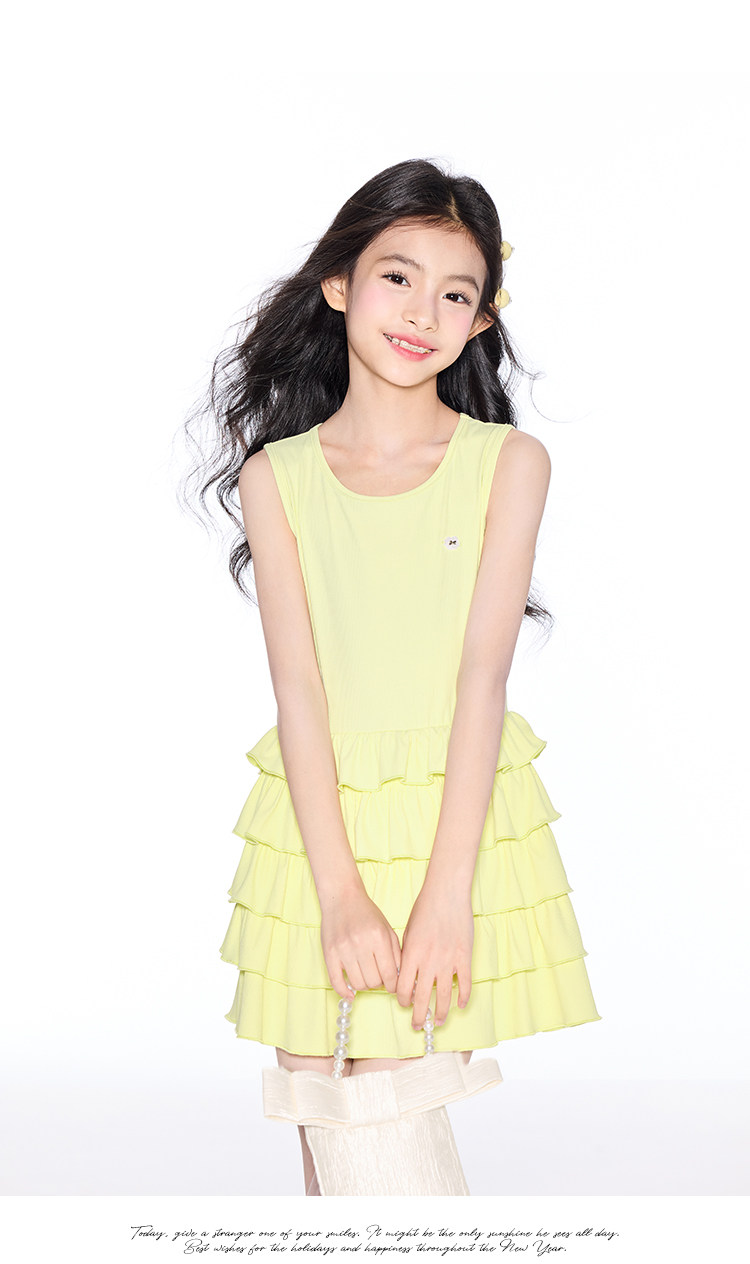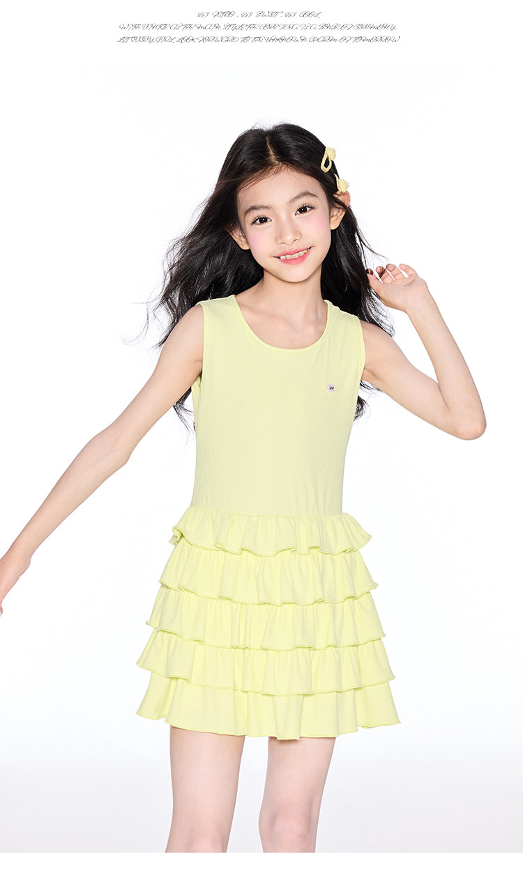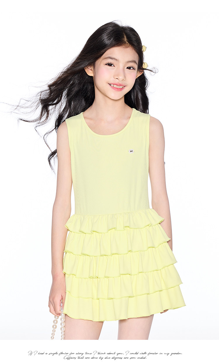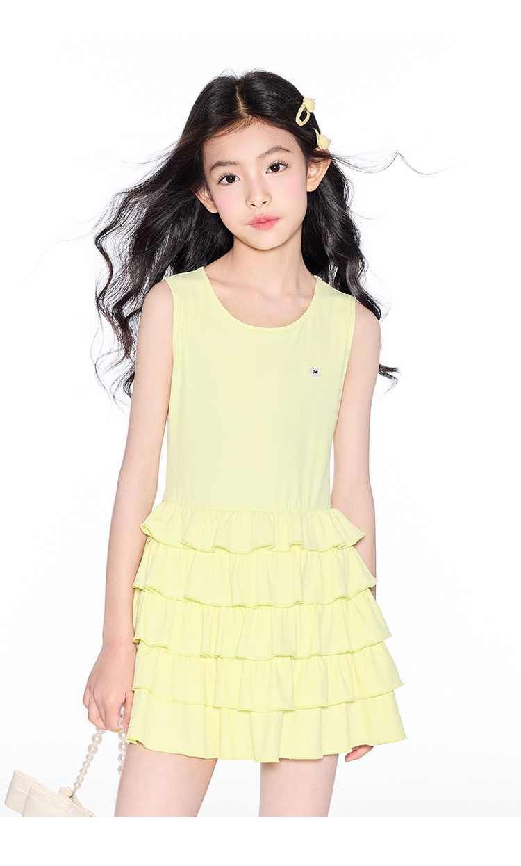 opennunu女童花邊無袖背心裙夏季兒童設計感蛋糕裙圓領親膚連衣裙
