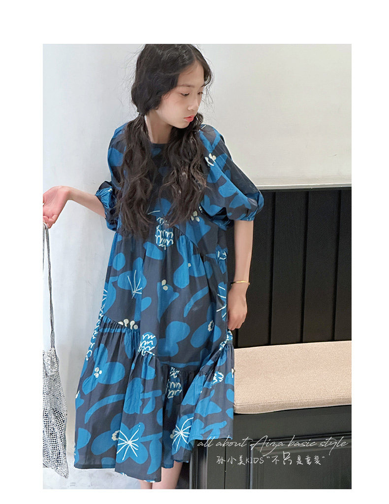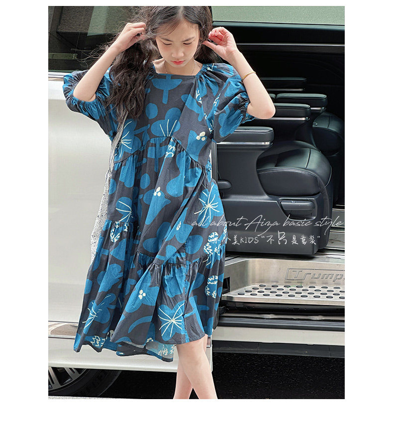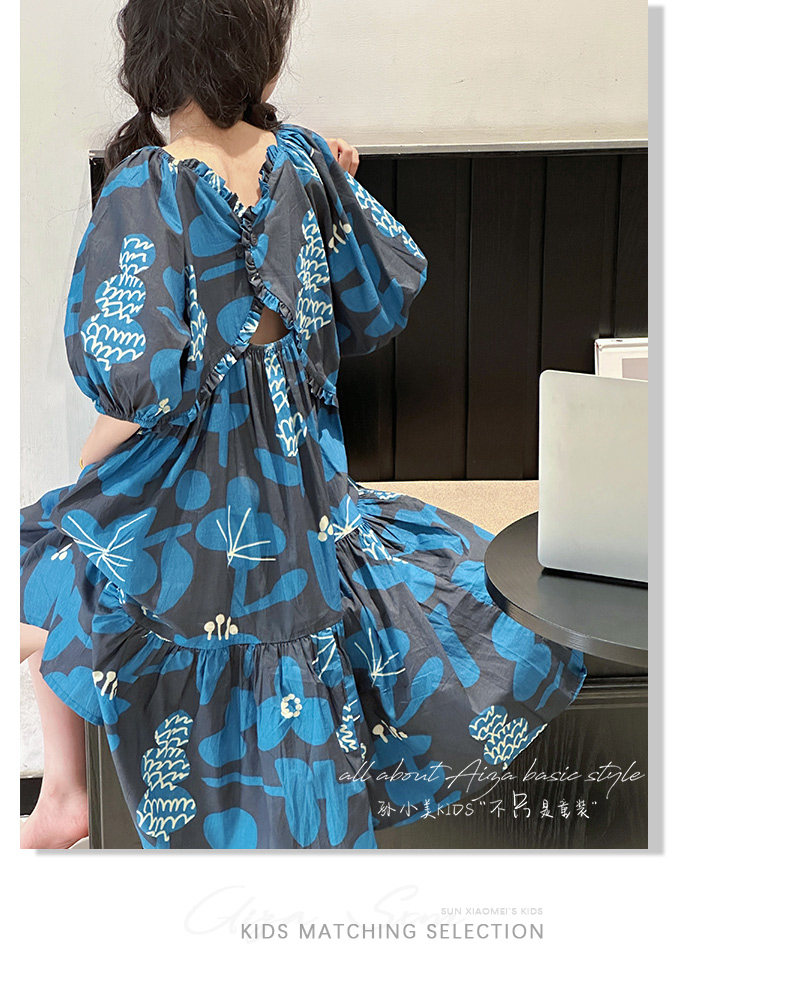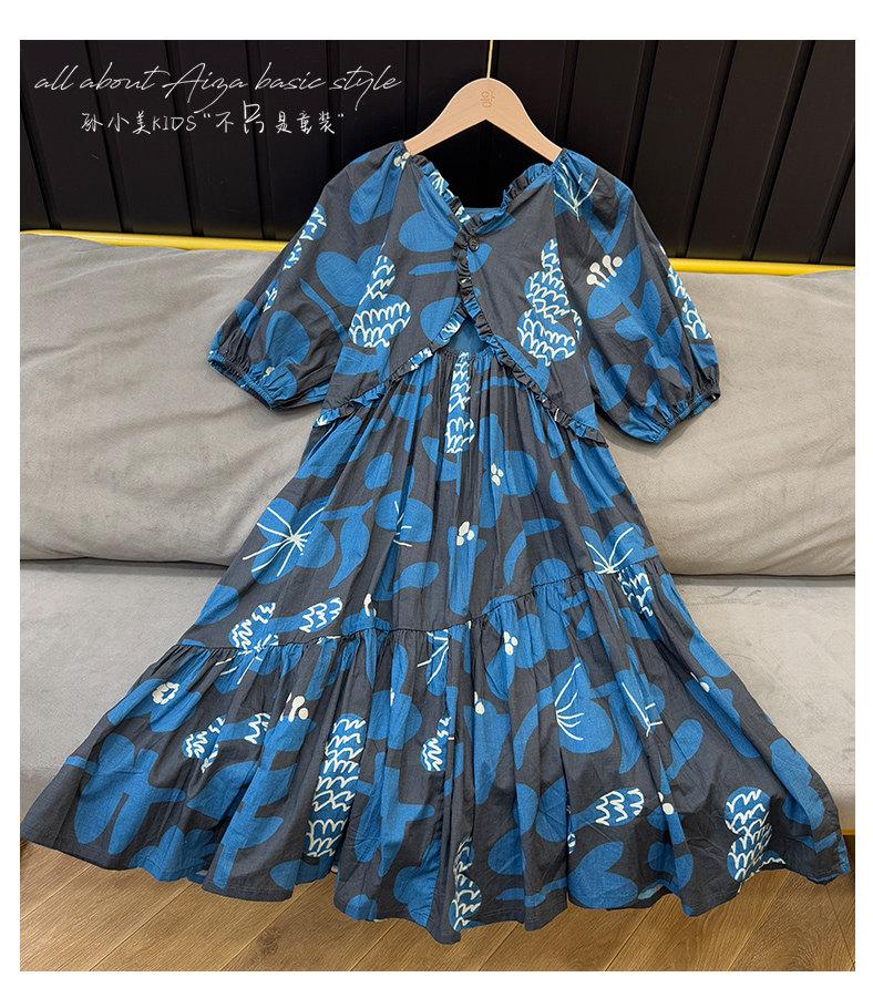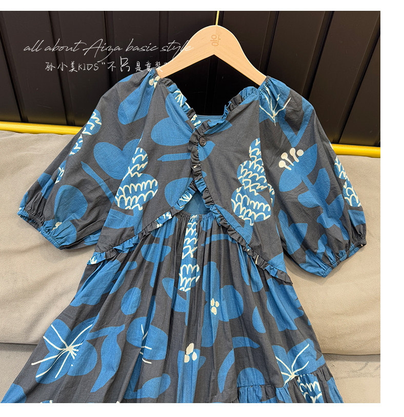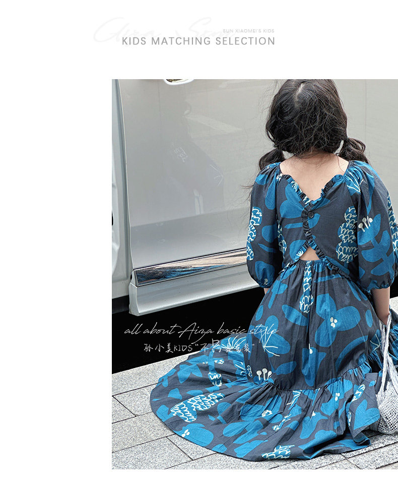 孫小美kids法式女童短袖連衣裙2025夏裝新款兒童碎花裙子氣質長裙