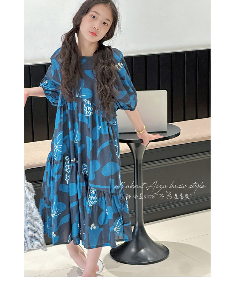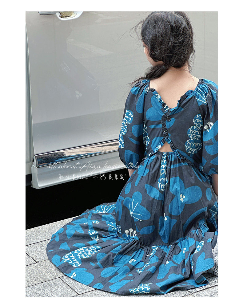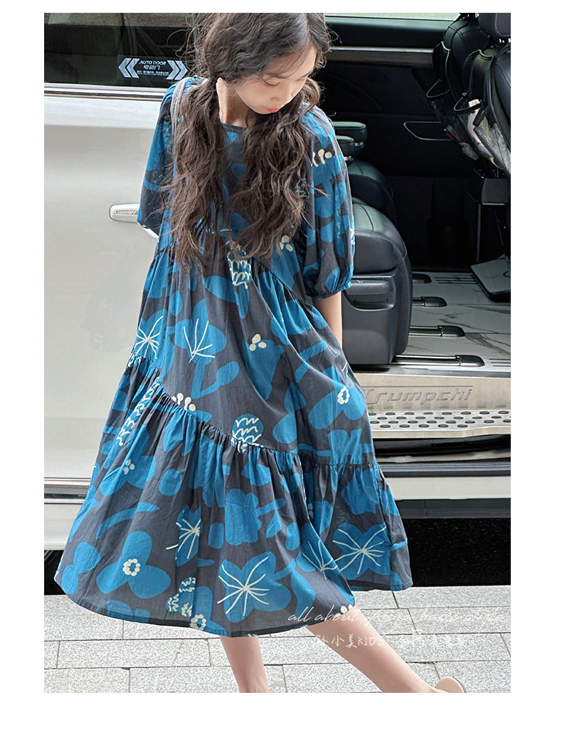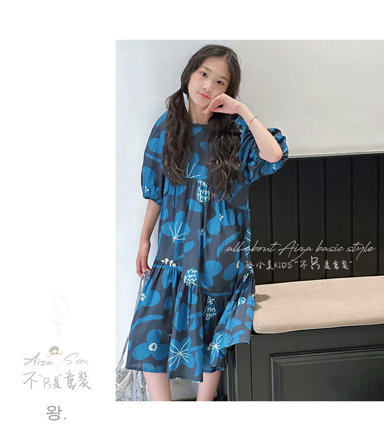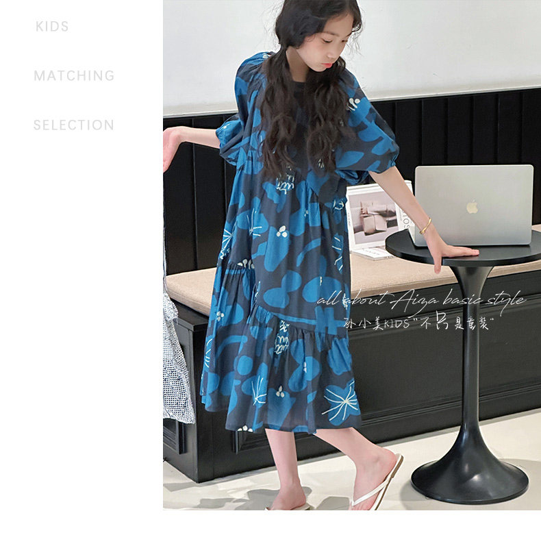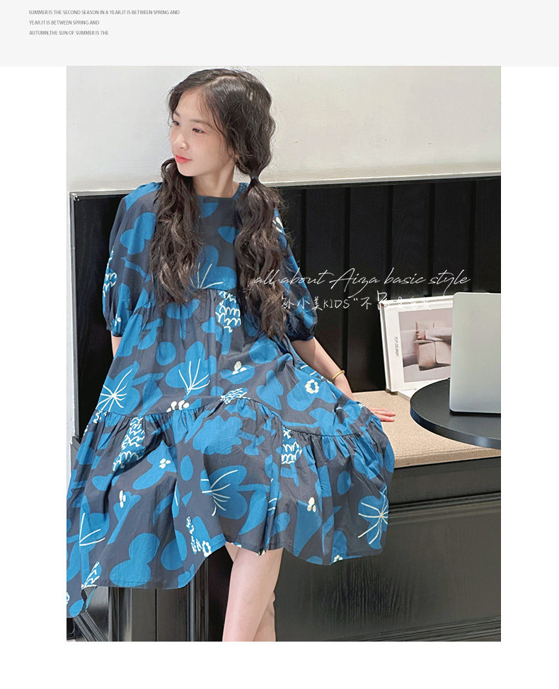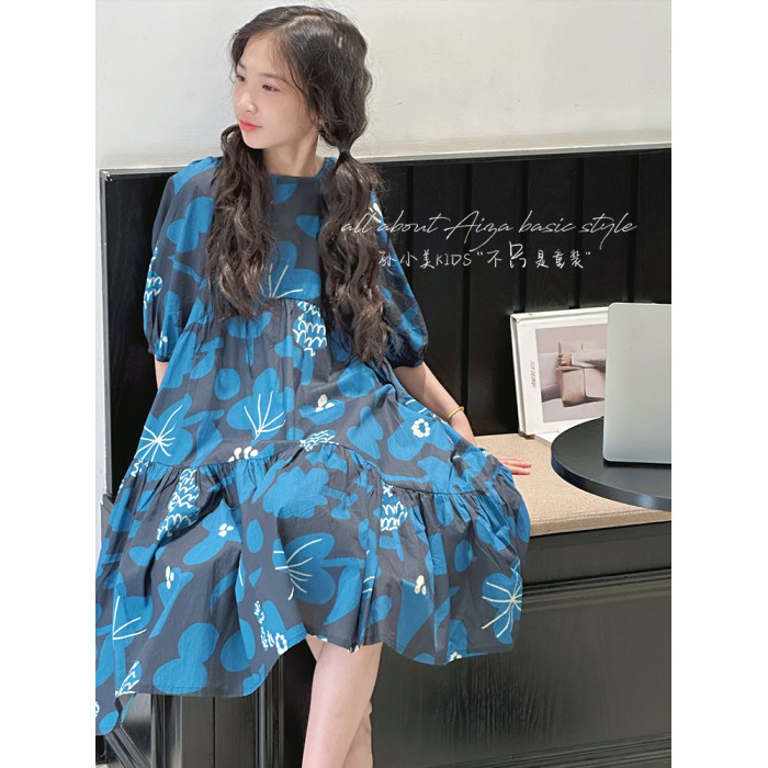 孫小美kids法式女童短袖連衣裙2025夏裝新款兒童碎花裙子氣質長裙