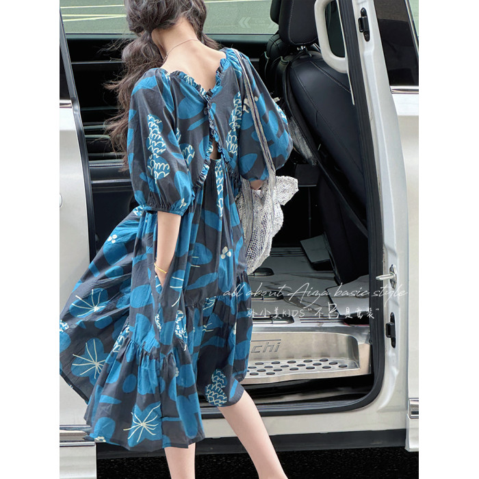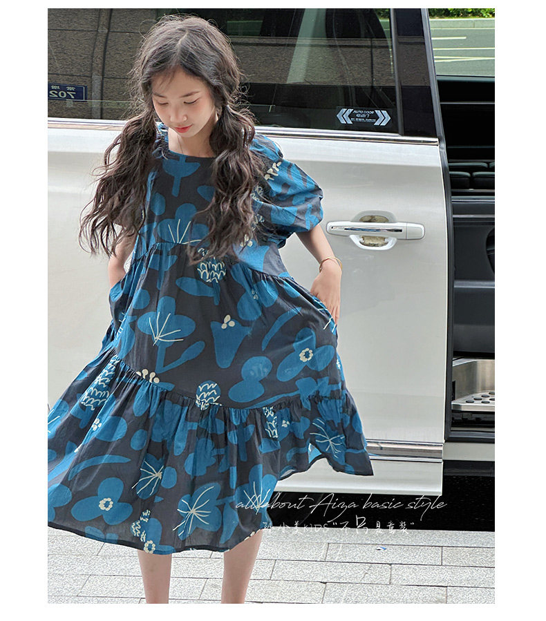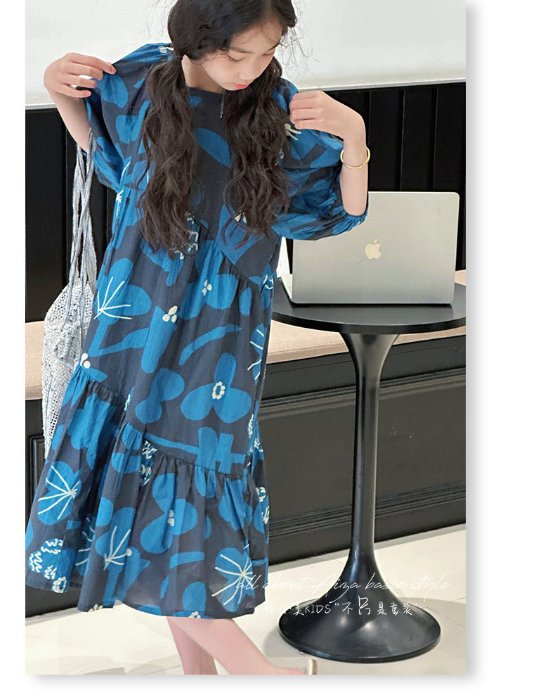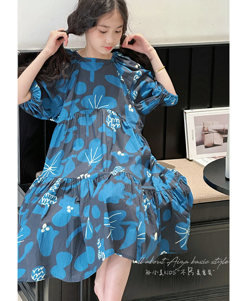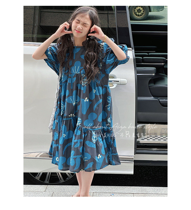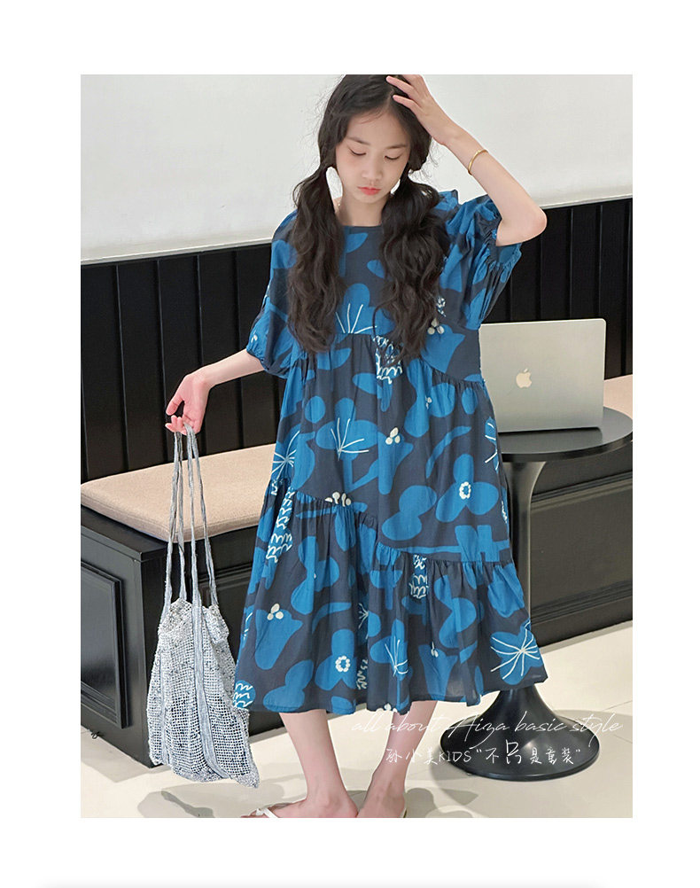 孫小美kids法式女童短袖連衣裙2025夏裝新款兒童碎花裙子氣質長裙