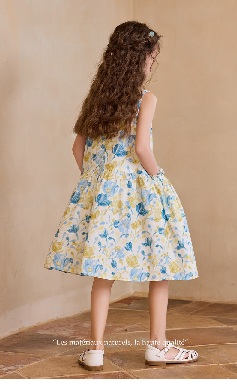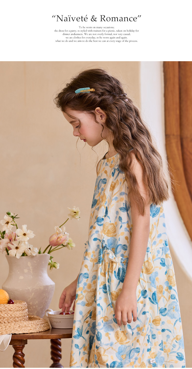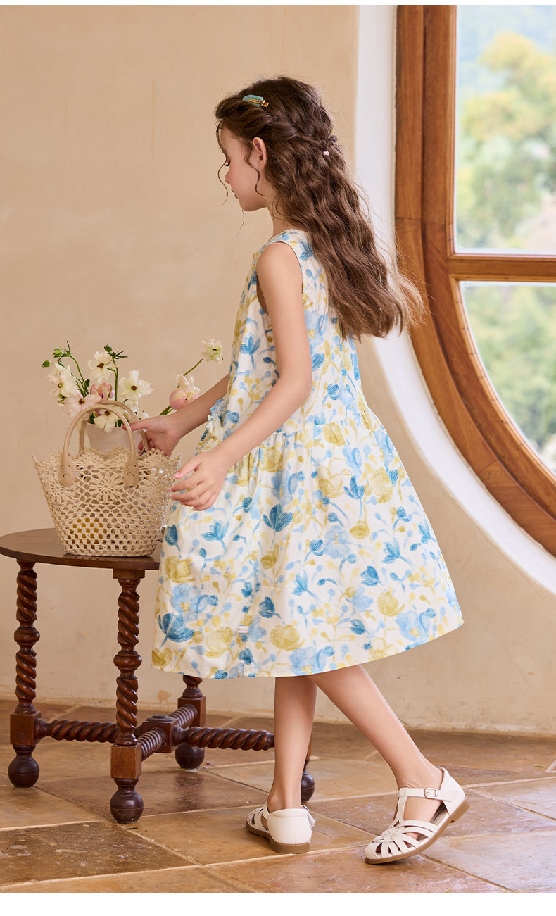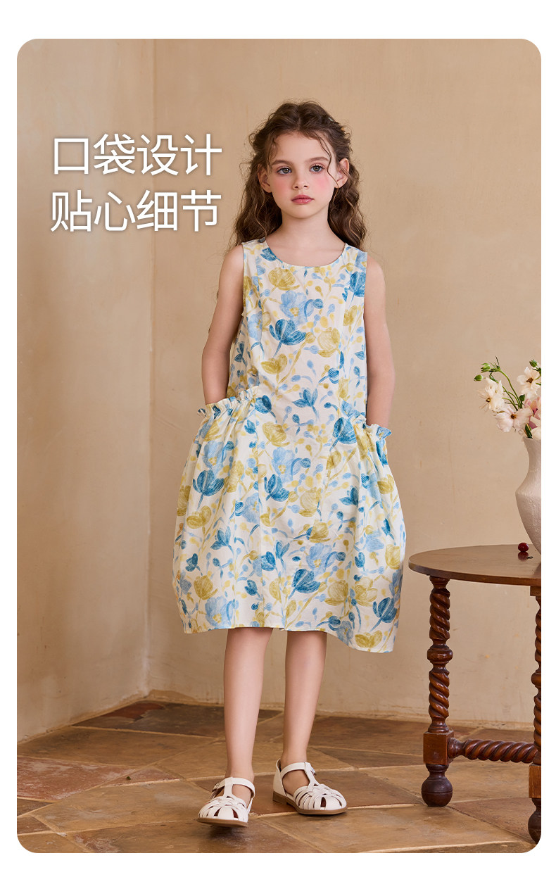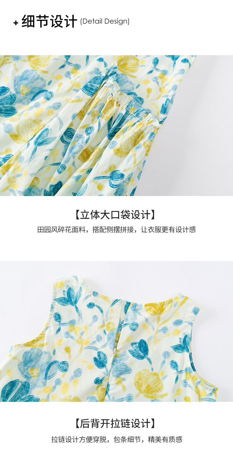 Little Naive女童純棉連衣裙夏季新款印花背心裙兒童口袋碎花裙