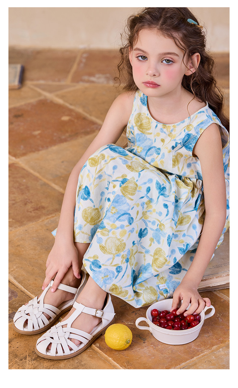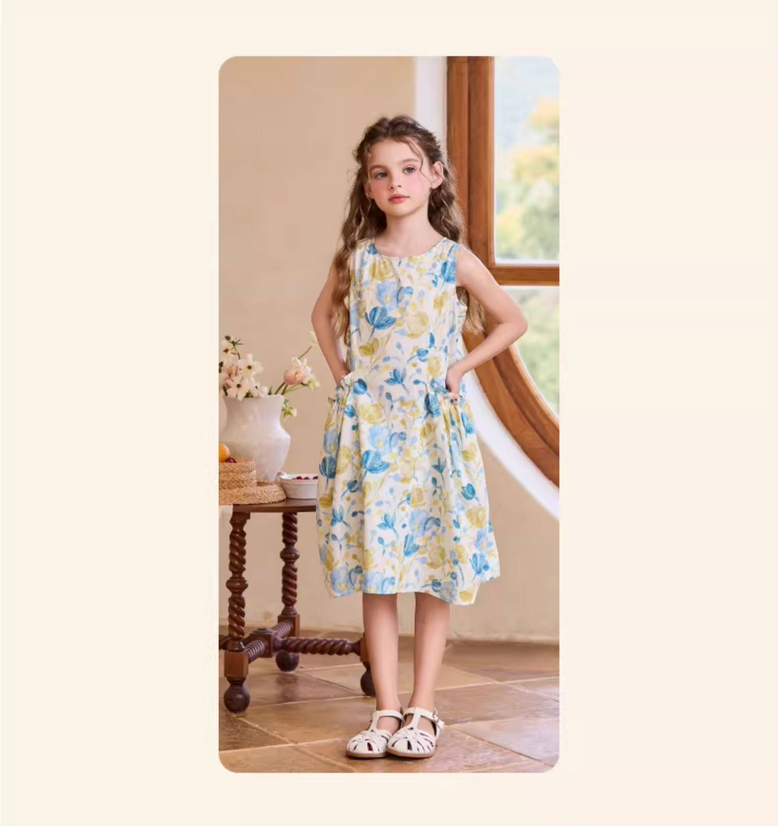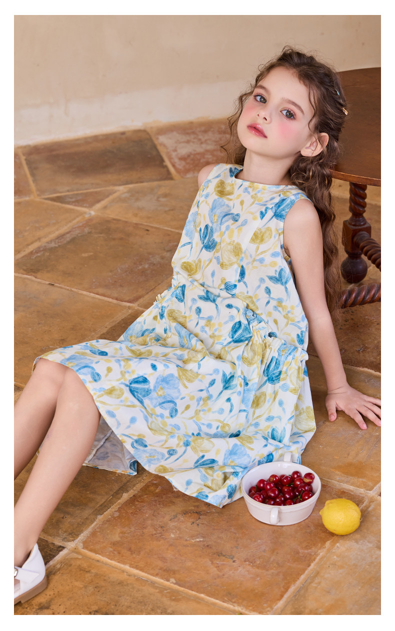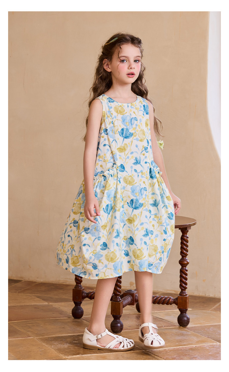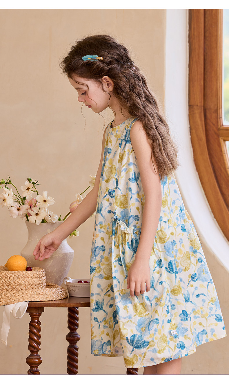 Little Naive女童純棉連衣裙夏季新款印花背心裙兒童口袋碎花裙