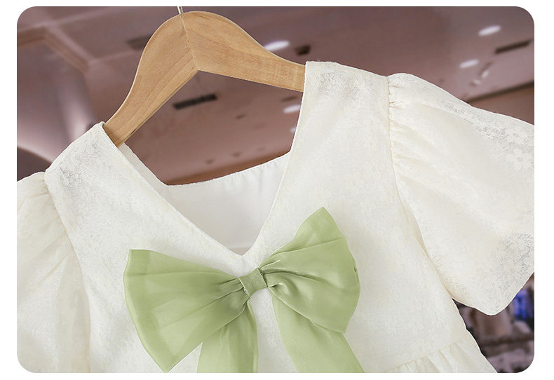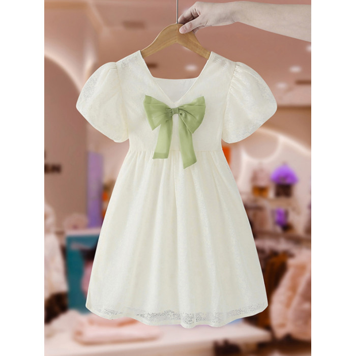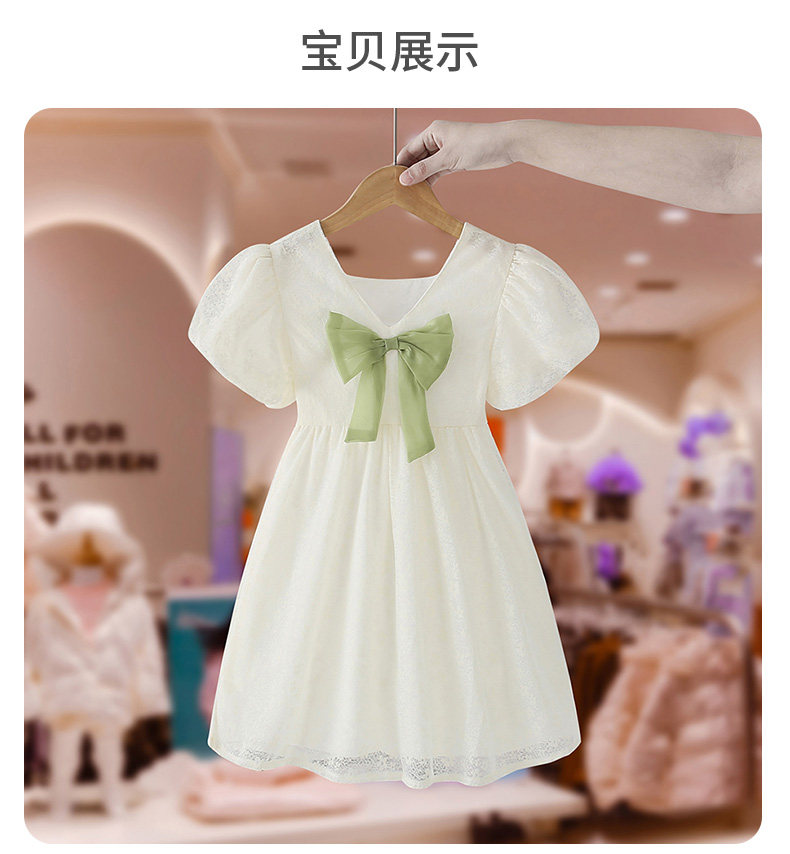 女童夏裝連衣裙洋氣時髦蝴蝶結蕾絲公主裙夏款網紅兒童短袖裙子薄