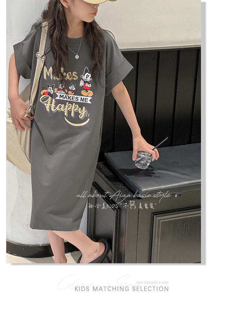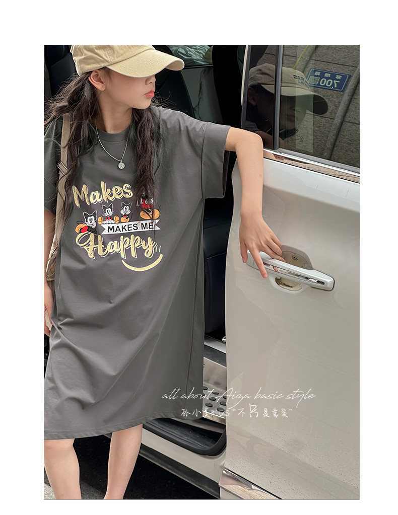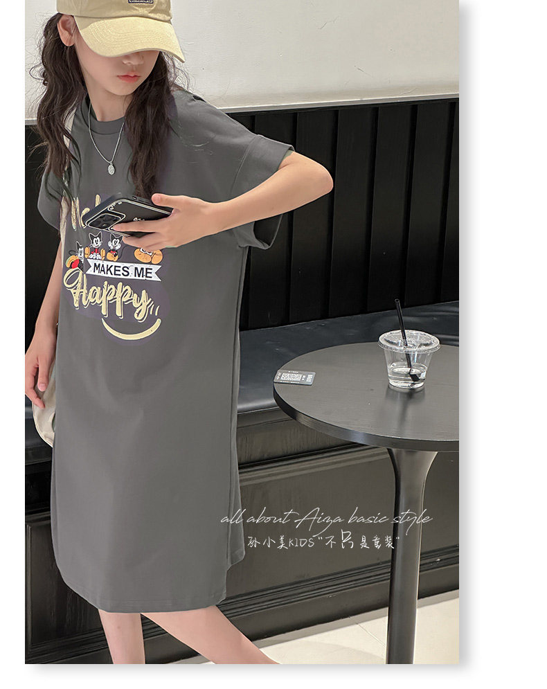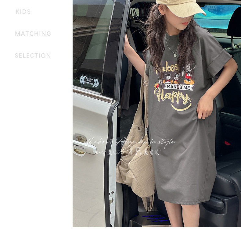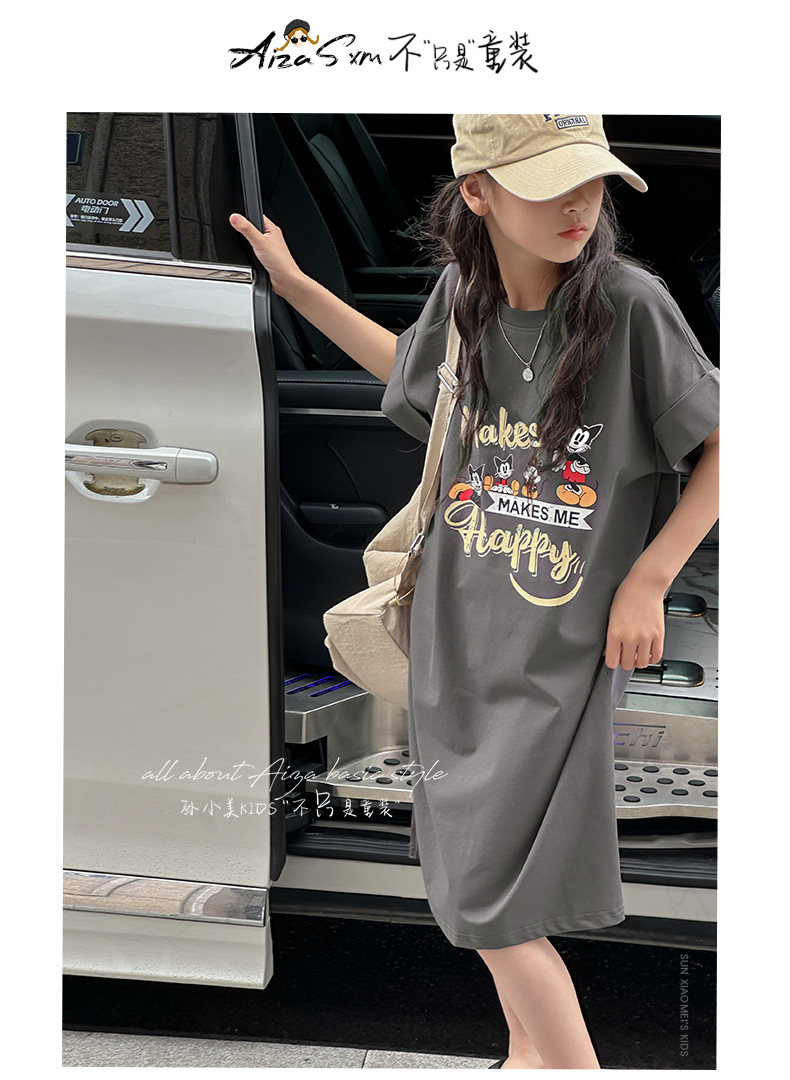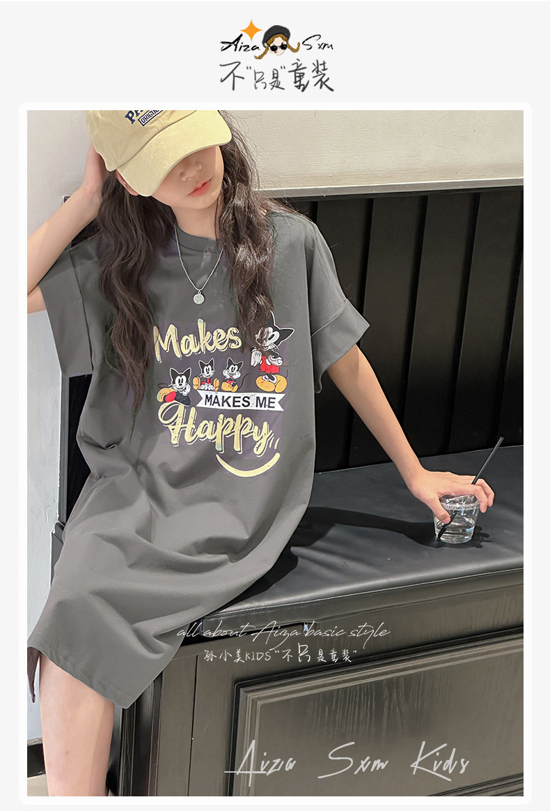 韓國童裝女童夏季連衣裙2025新款兒童短袖裙子女孩寬鬆休閒T恤裙