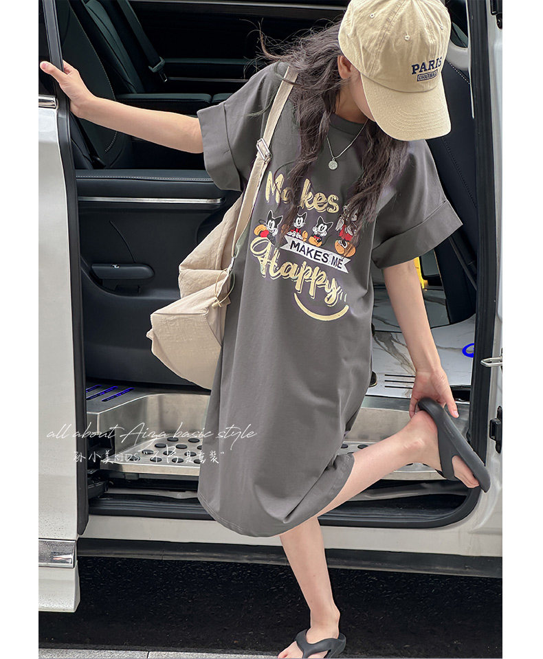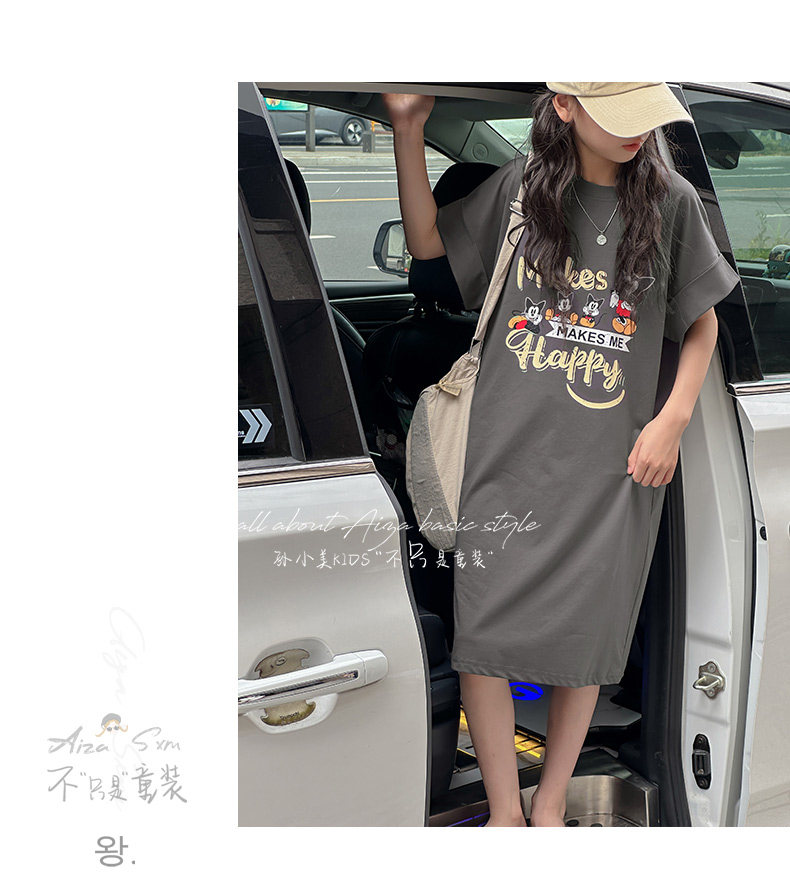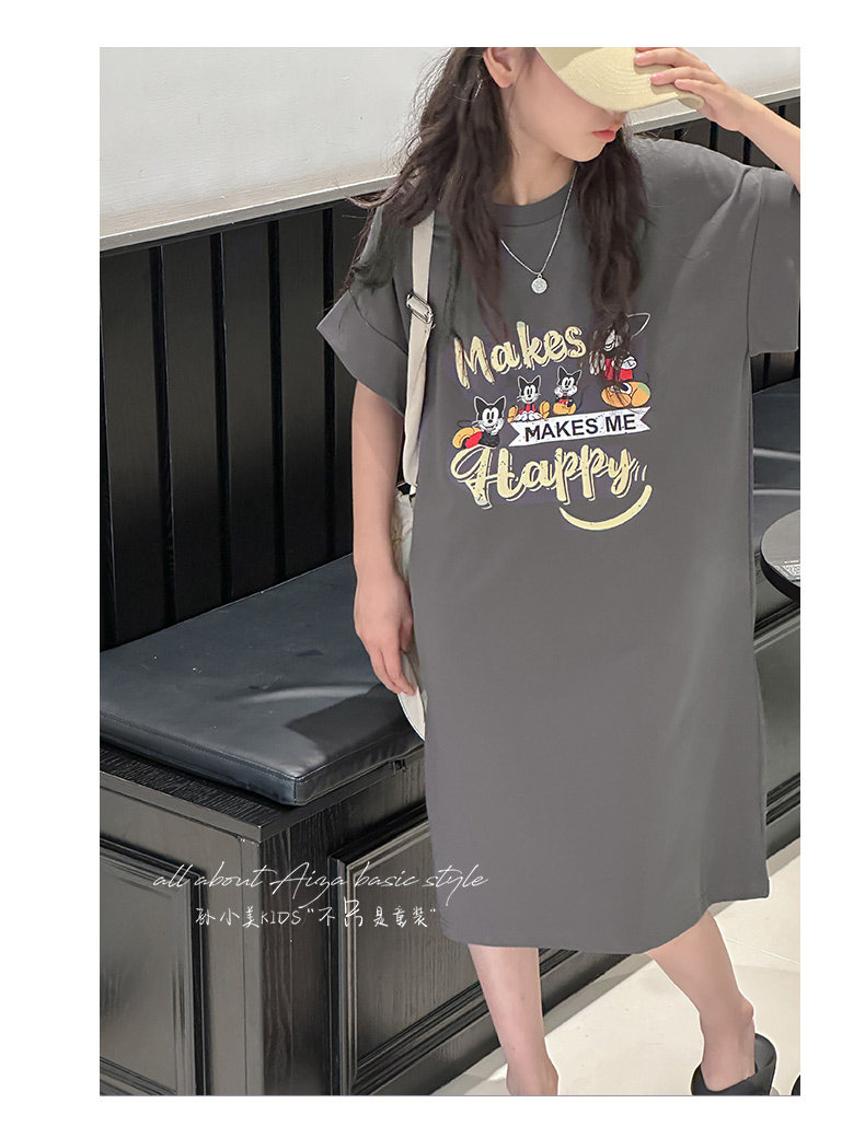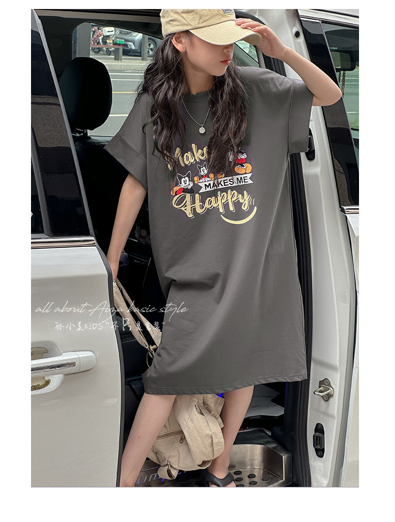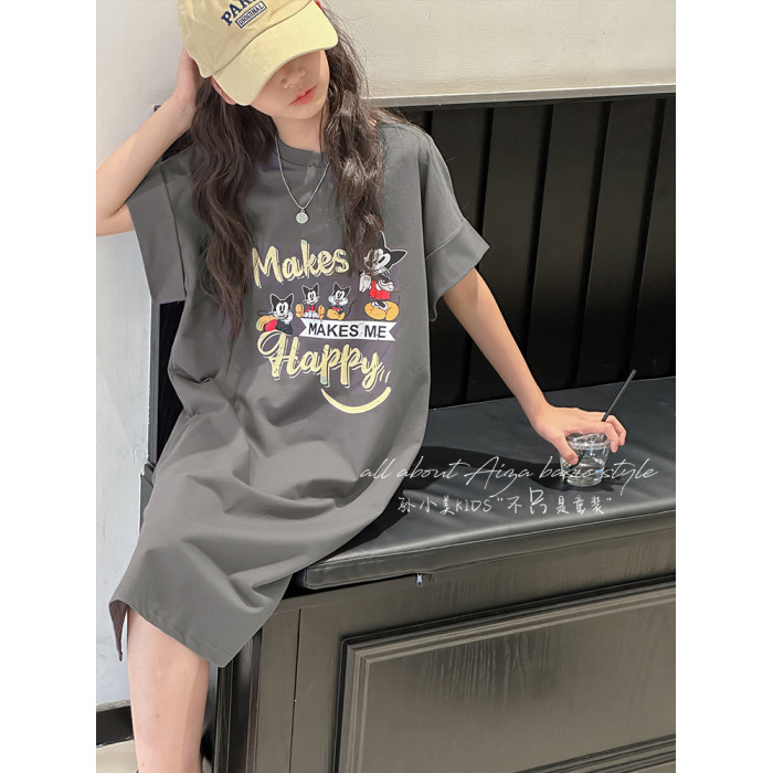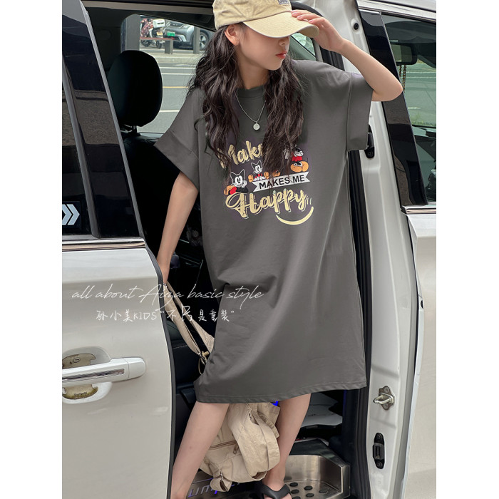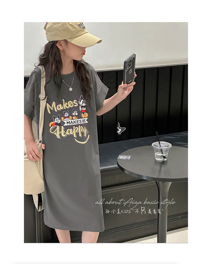 韓國童裝女童夏季連衣裙2025新款兒童短袖裙子女孩寬鬆休閒T恤裙