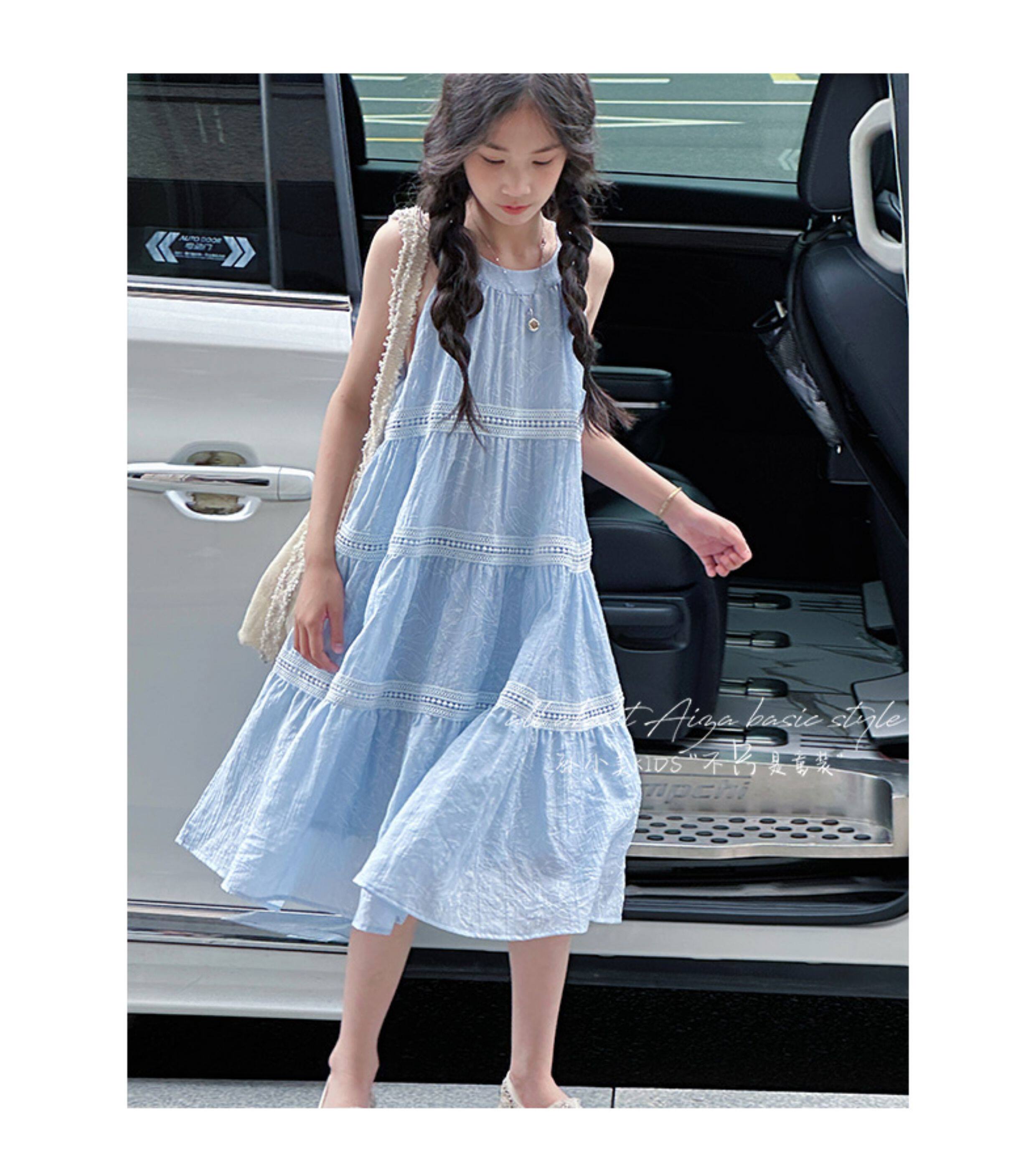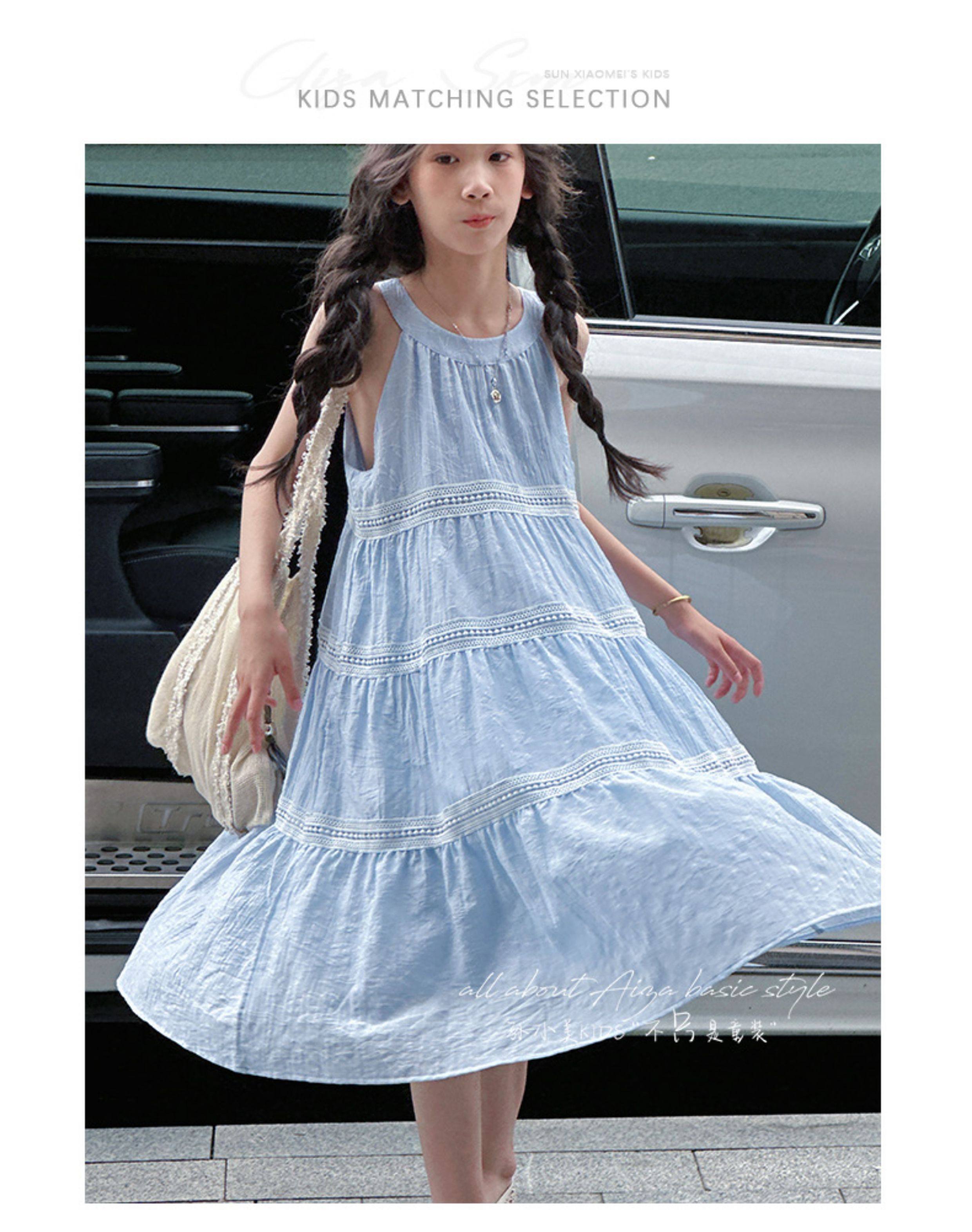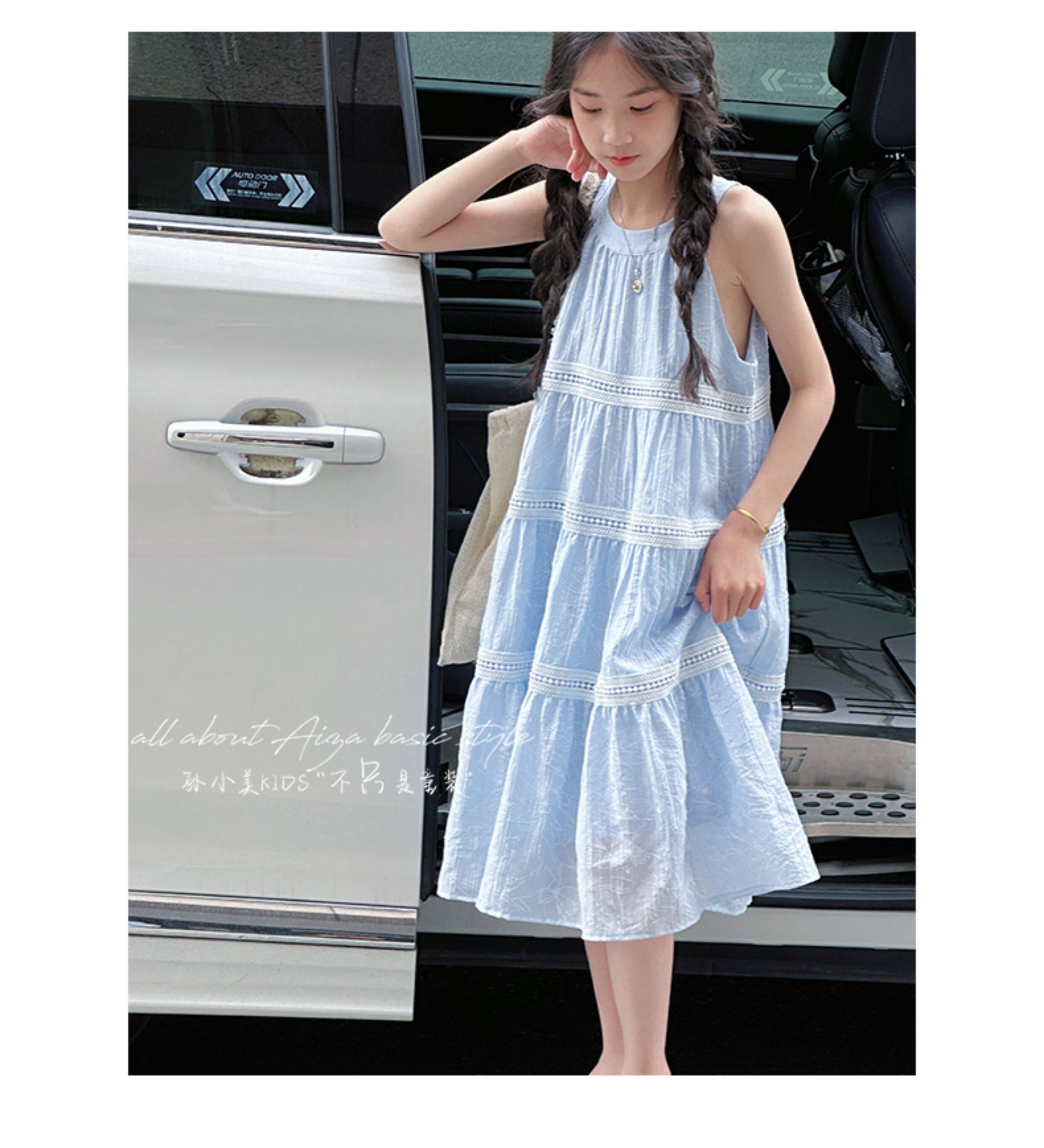 孫小美kids 蕾絲拼接女童連衣裙2025新款夏裝兒童氣質裙子背心裙