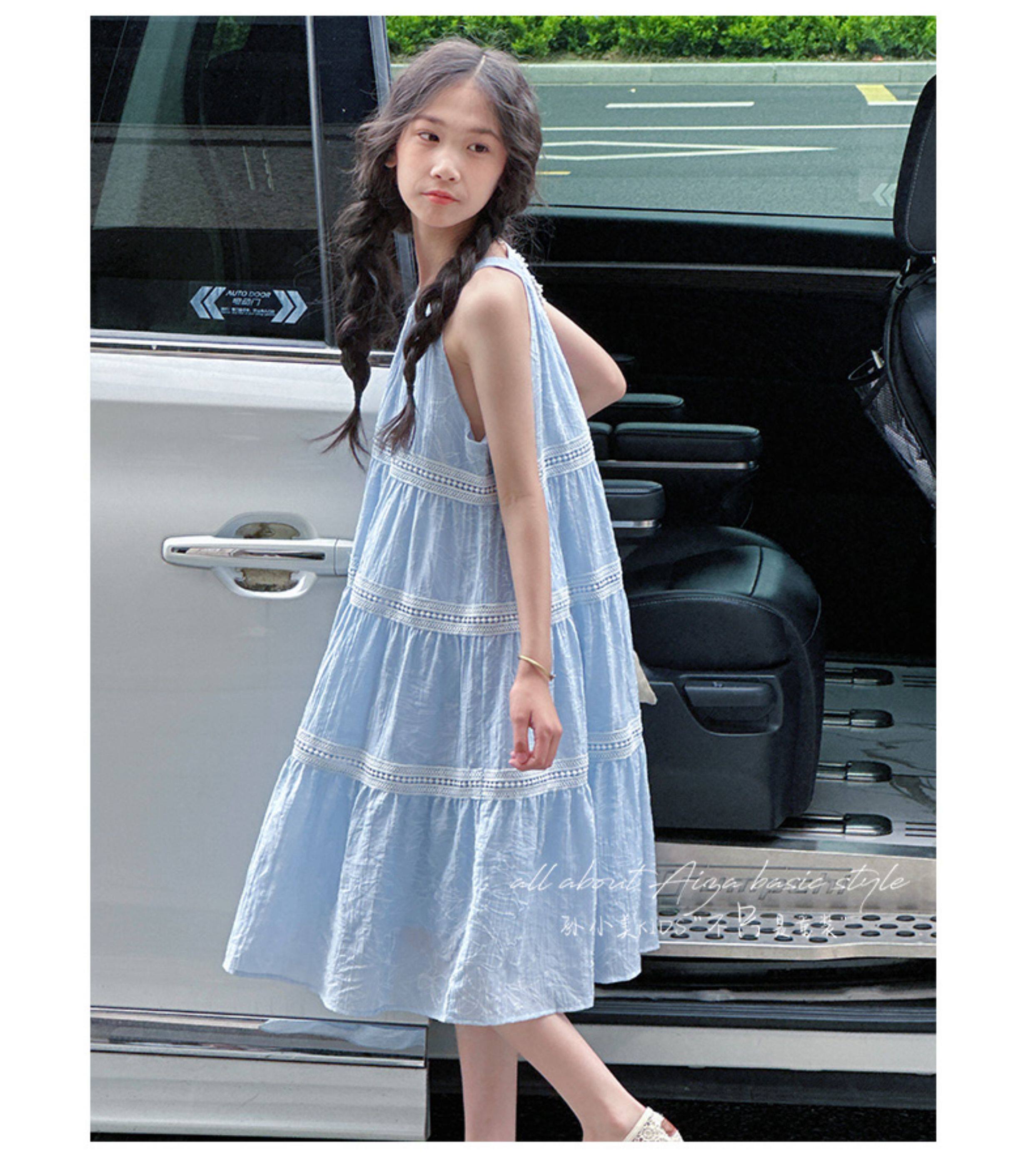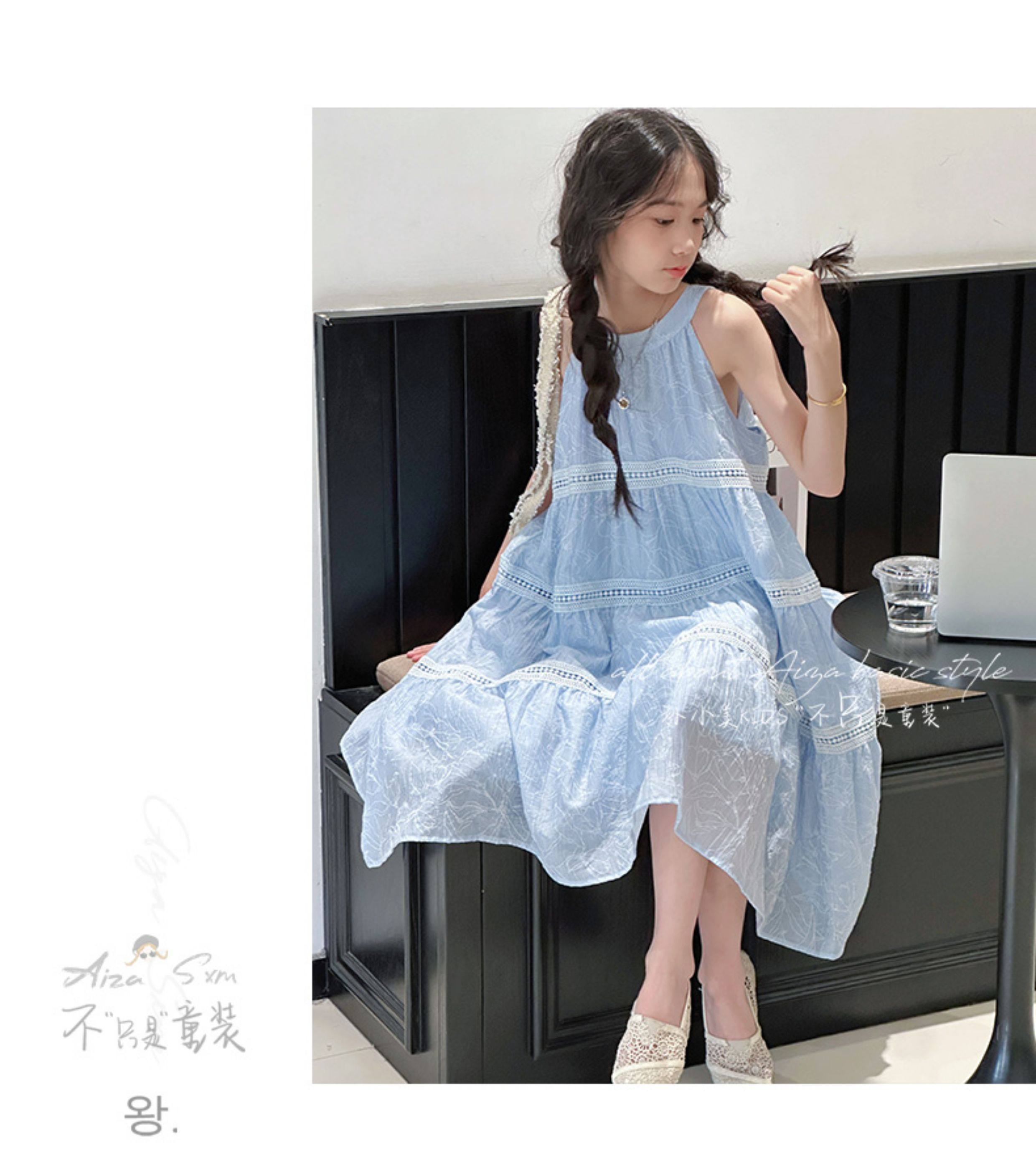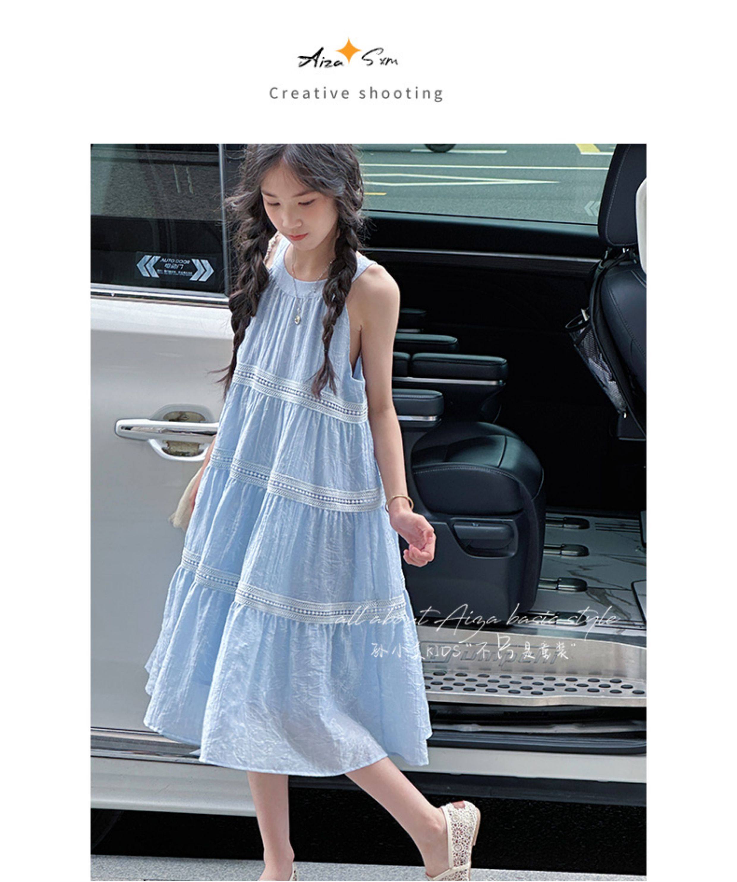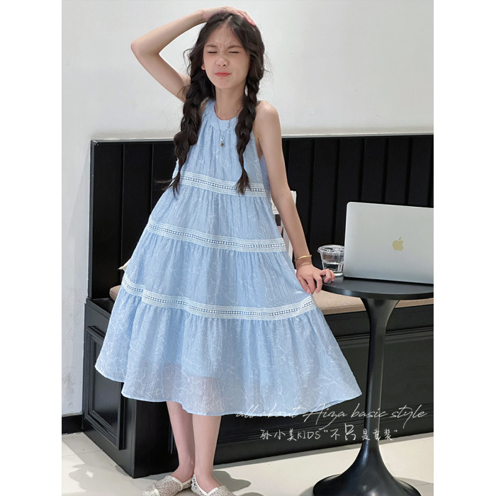 孫小美kids 蕾絲拼接女童連衣裙2025新款夏裝兒童氣質裙子背心裙