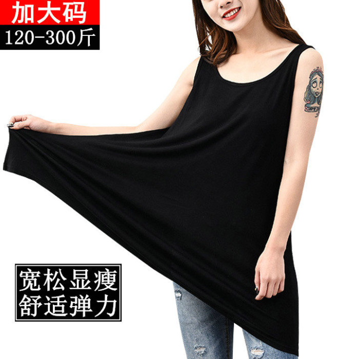 加肥加大碼女裝300斤夏胖mm寬松遮肚子背心裙270斤a字打底衫250斤