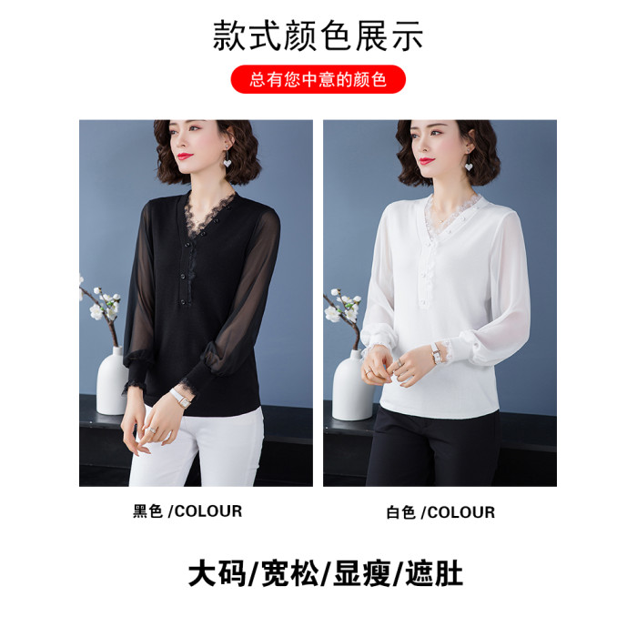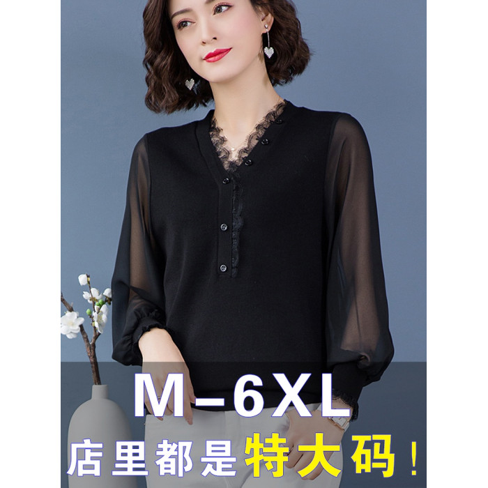 胖mm特大碼女裝春秋季加肥冰絲200斤寬松減齡v領上衣遮打底衫