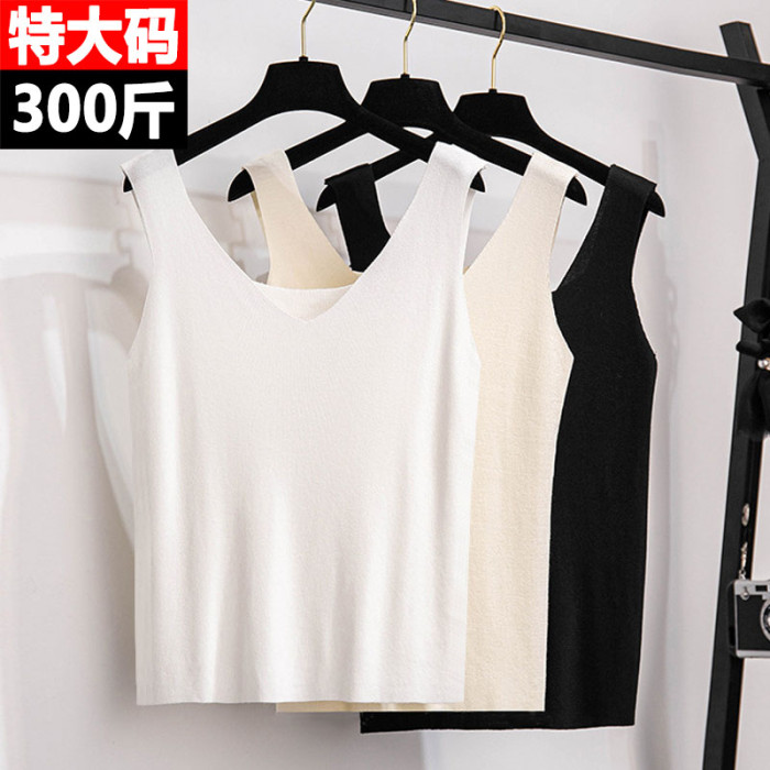 300斤特大碼女裝胖mm冰絲背心夏季薄款V領打底衫彈力內搭吊帶上衣