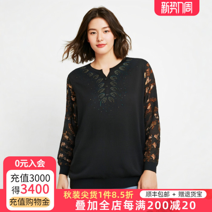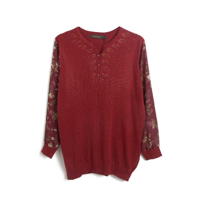 胖太太大碼女裝秋冬新品通勤純色雪紡拼接打底衫針織衫621101110