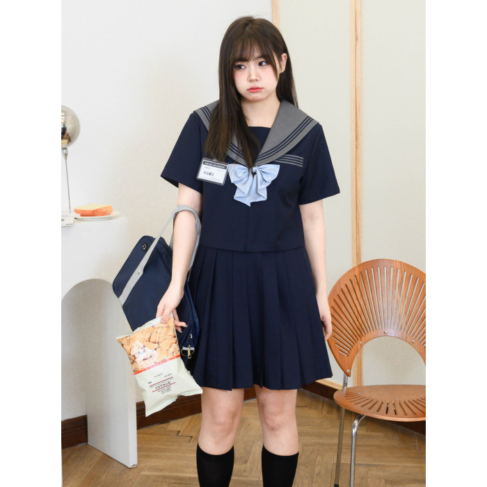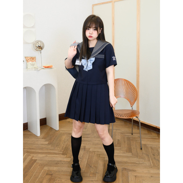 阿車家的大碼jk原創南山一中短長袖水手服短裙學院風海軍領套裝秋