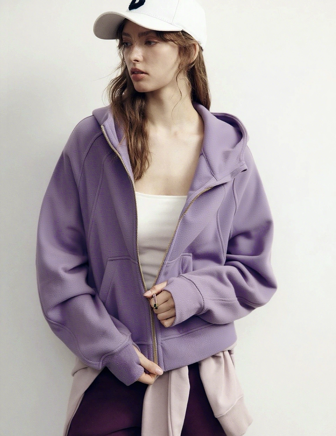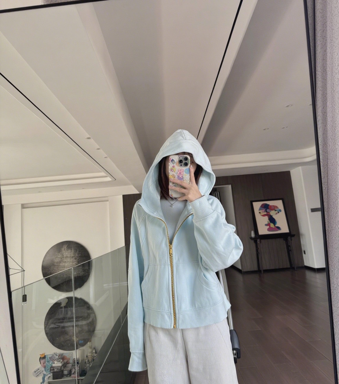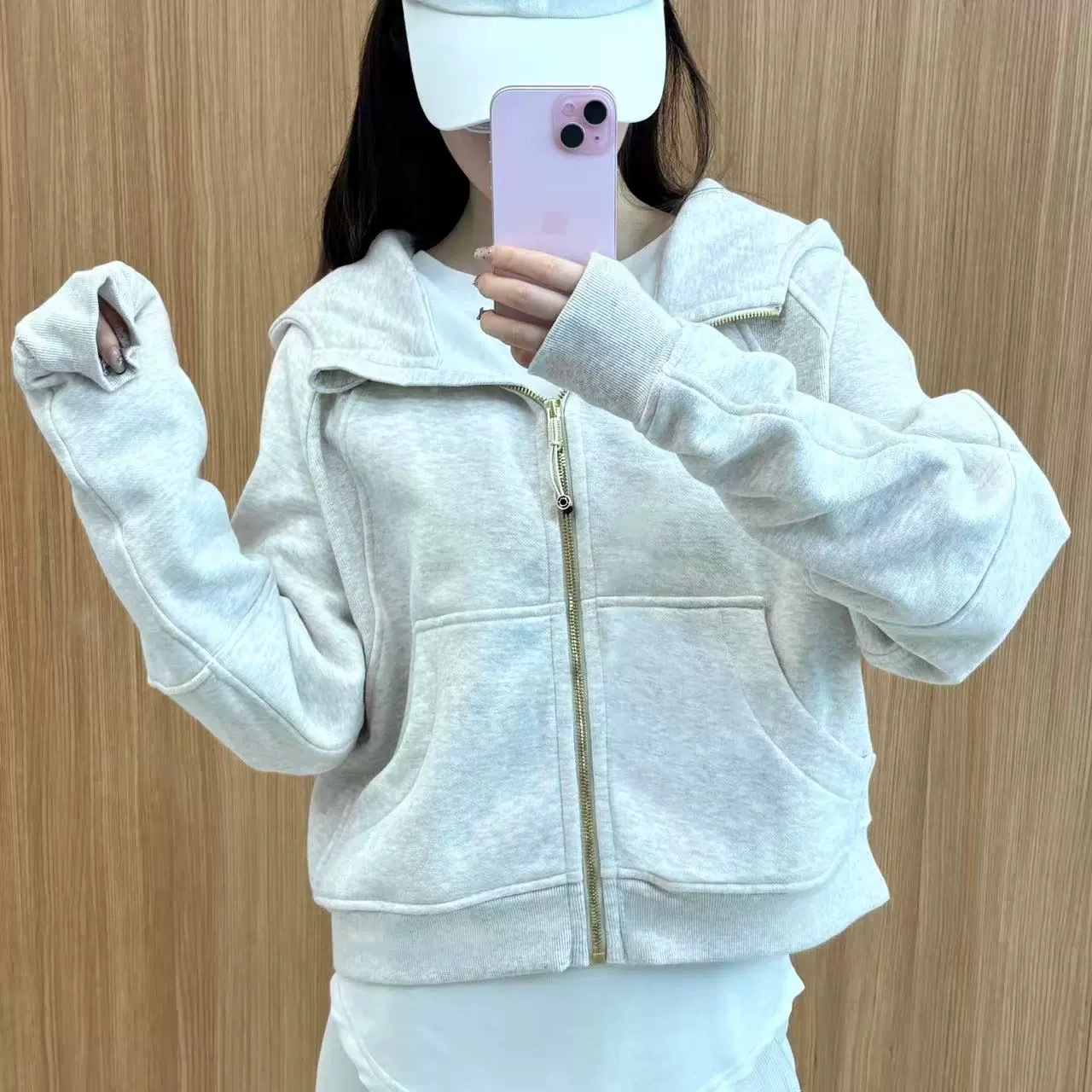 lulufend秋冬同款衛衣全拉鍊運動健身連帽上衣金拉鍊寬松開衫外套