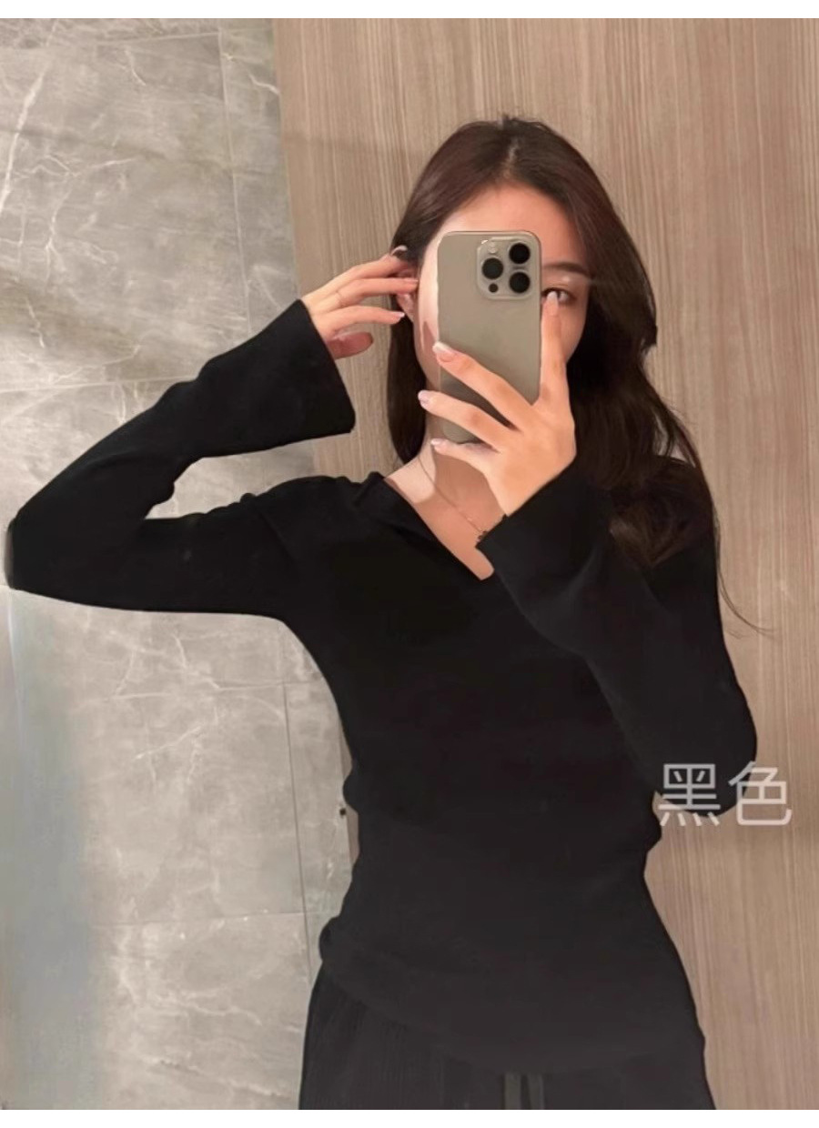 高級感v領軟糯毛針織衫女春秋季修身顯瘦內搭打底衫正肩氣質上衣