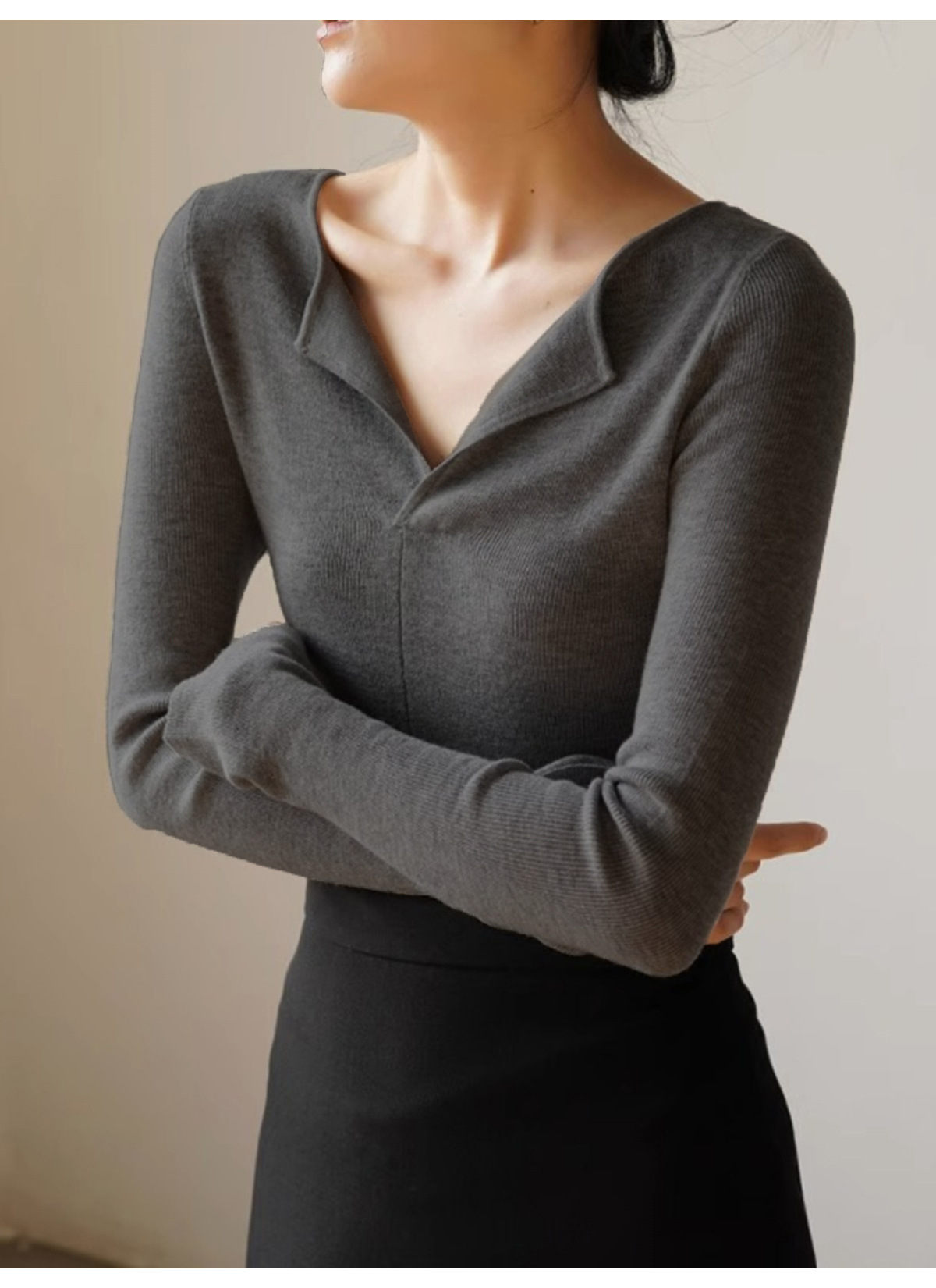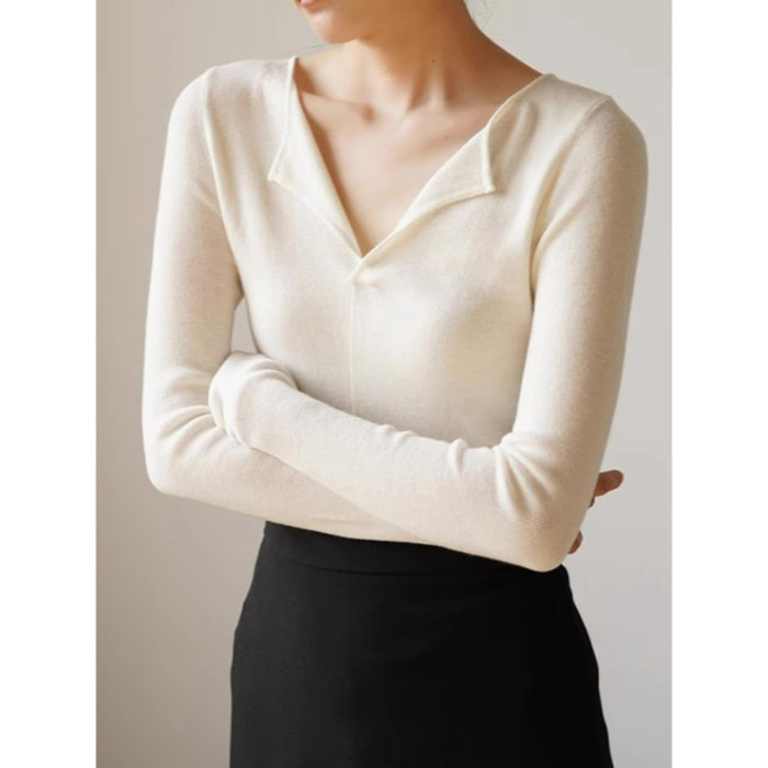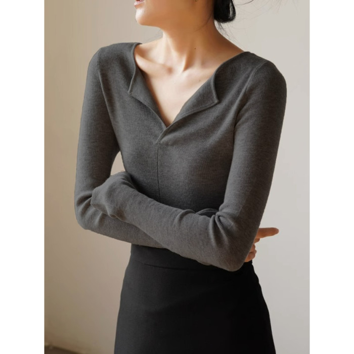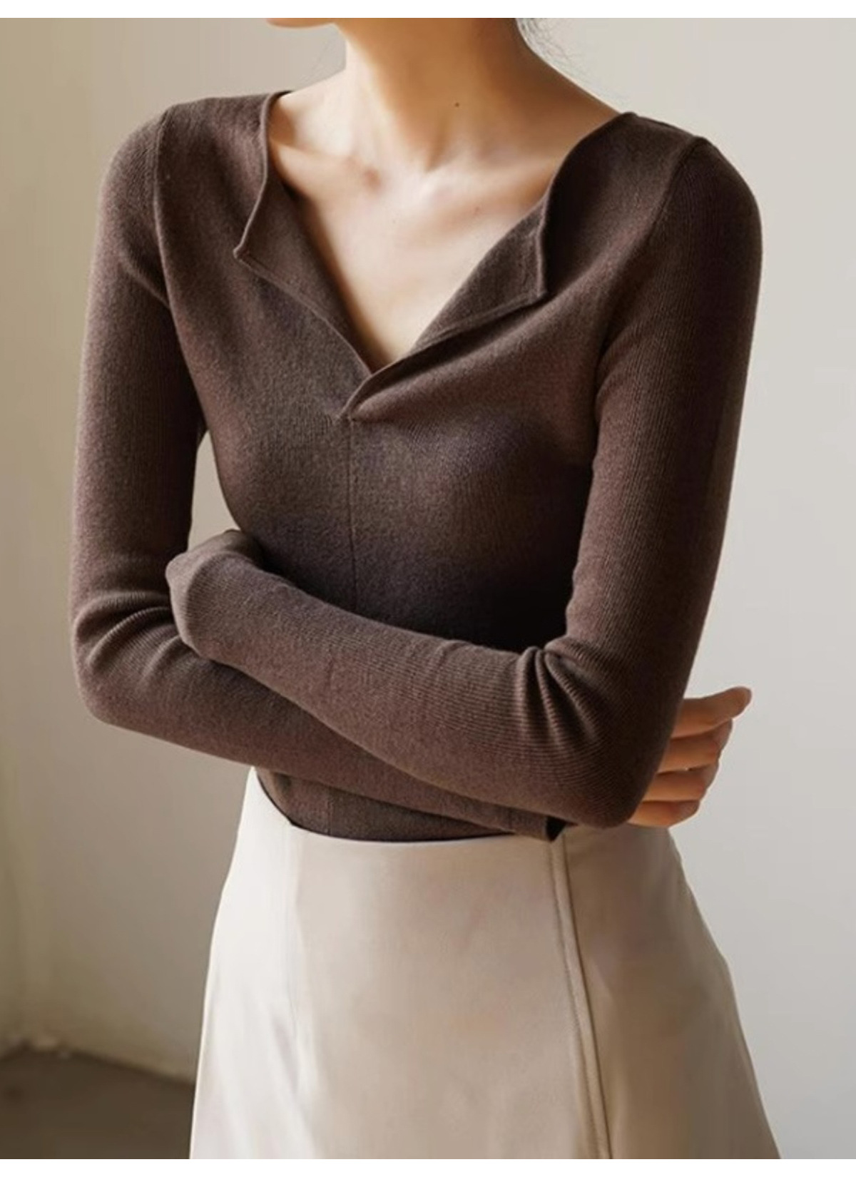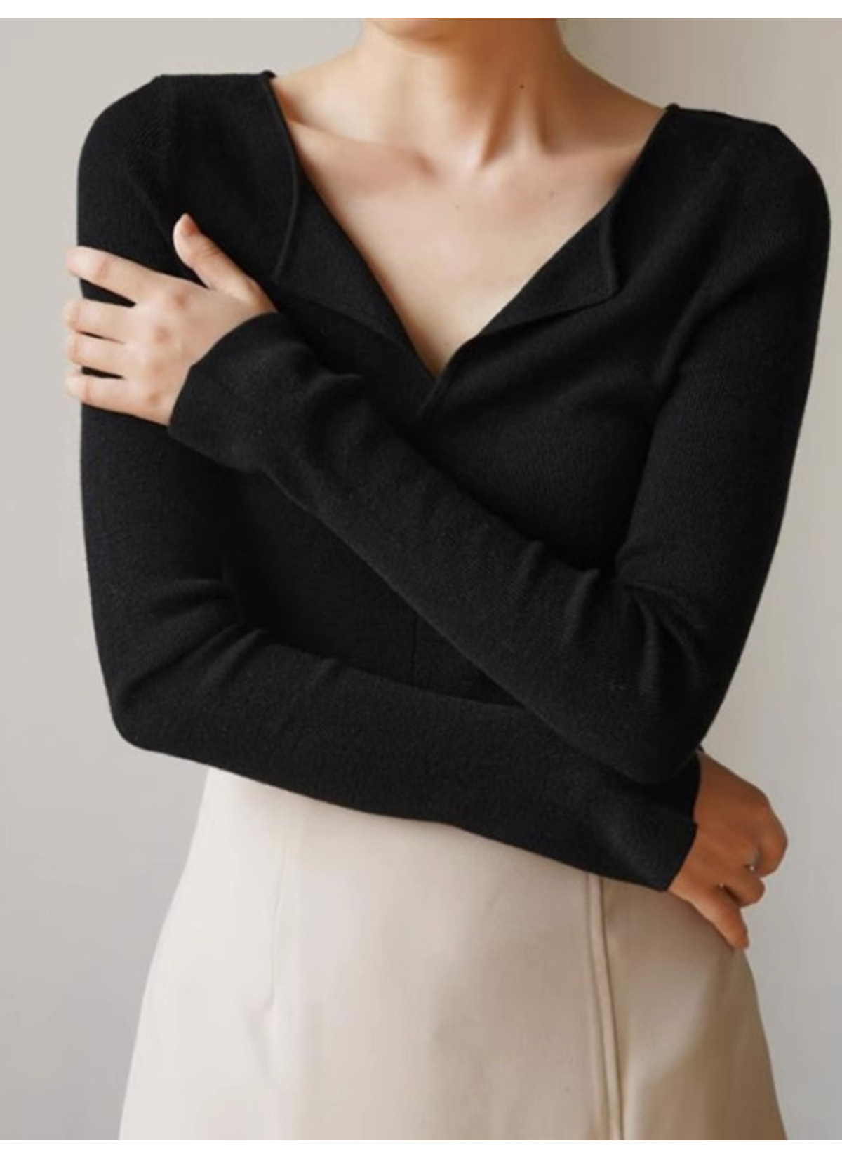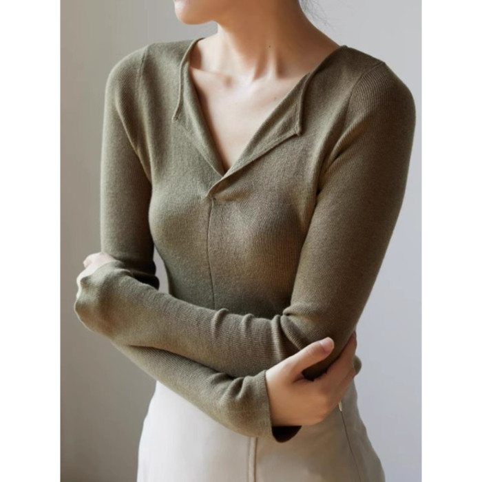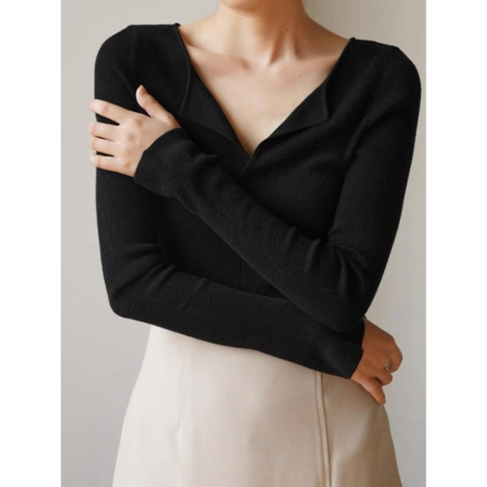輕熟風V領純欲針織衫秋冬修身高級感內搭長袖上衣毛衣打底衫女