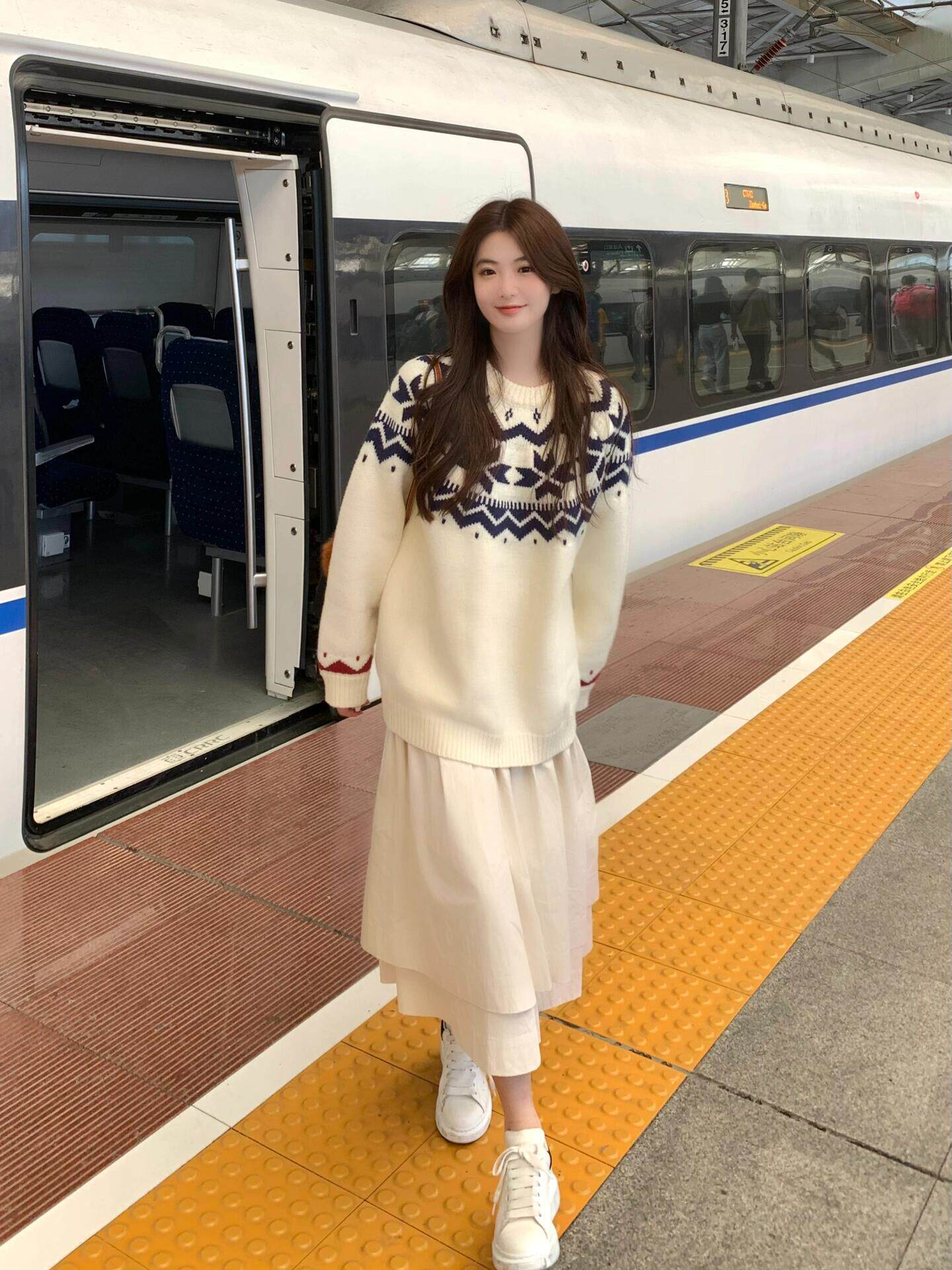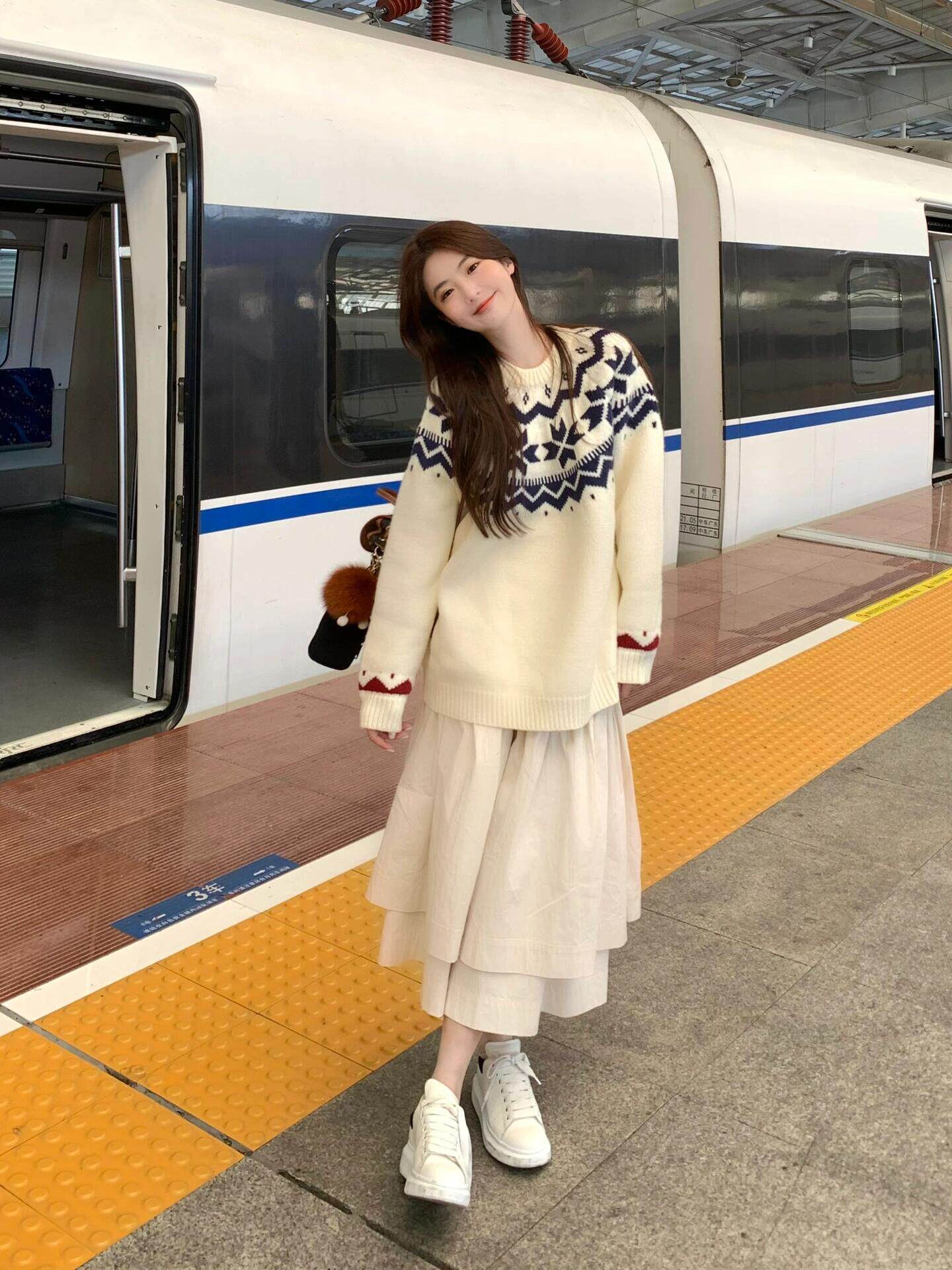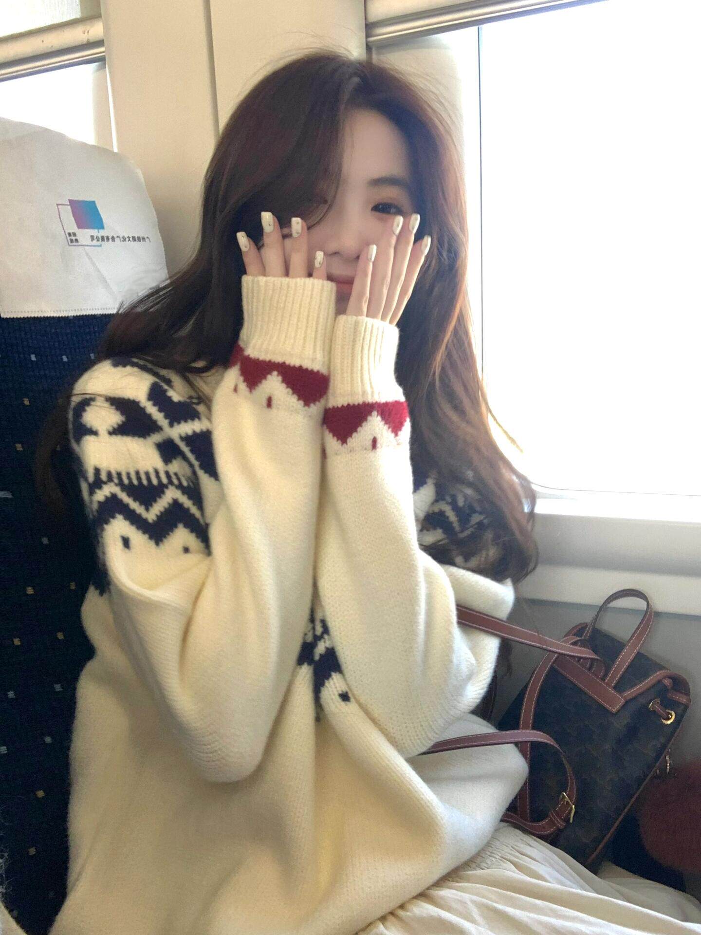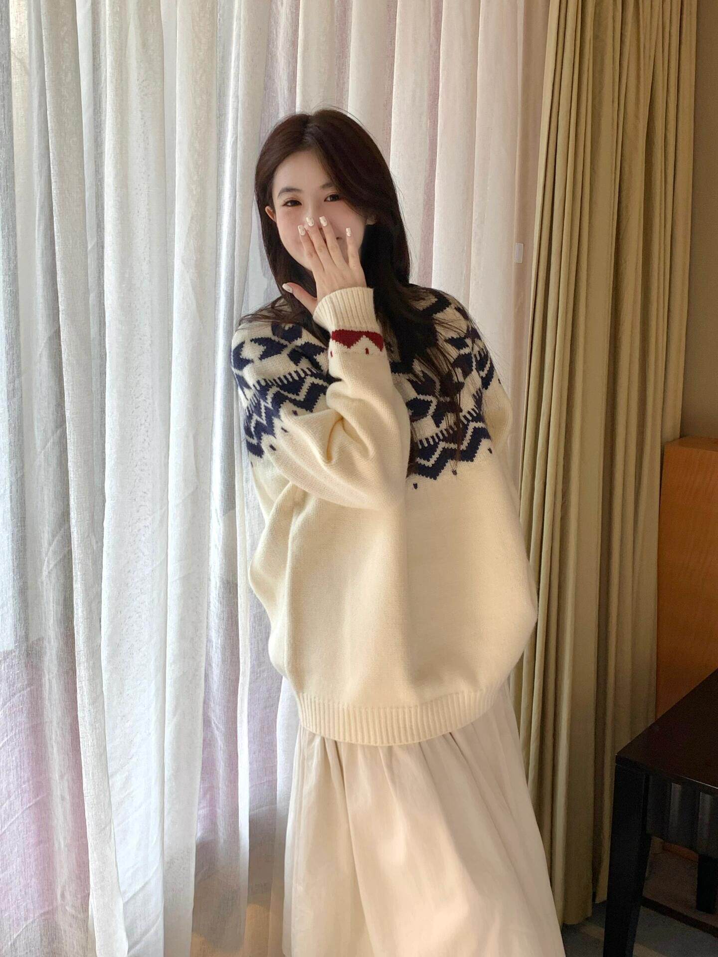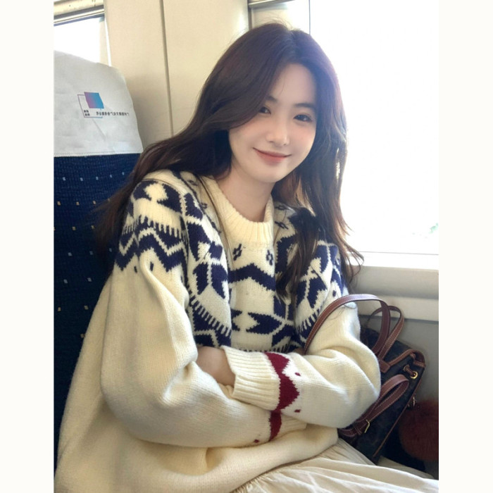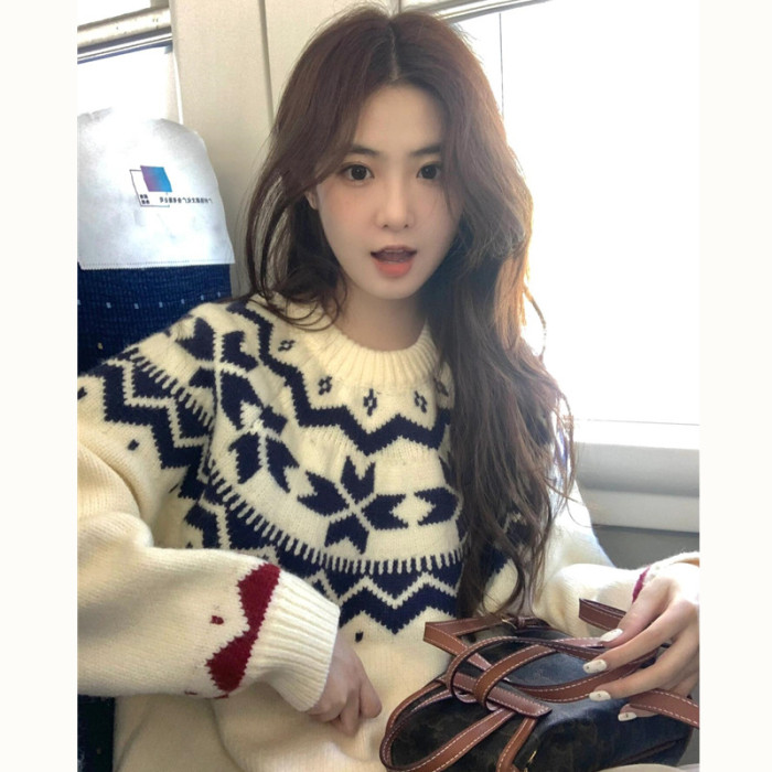 費爾島復古聖誕毛衣女秋冬新款寬松加厚溫柔慵懶風圓領軟糯上衣