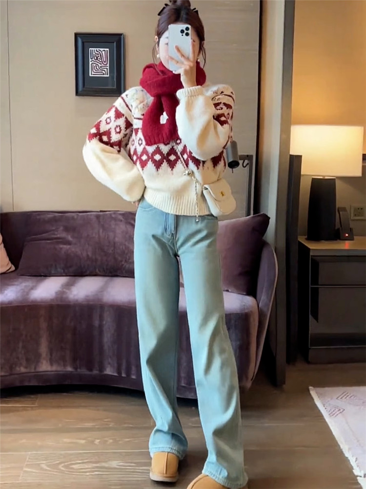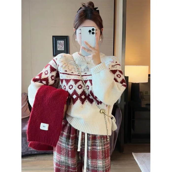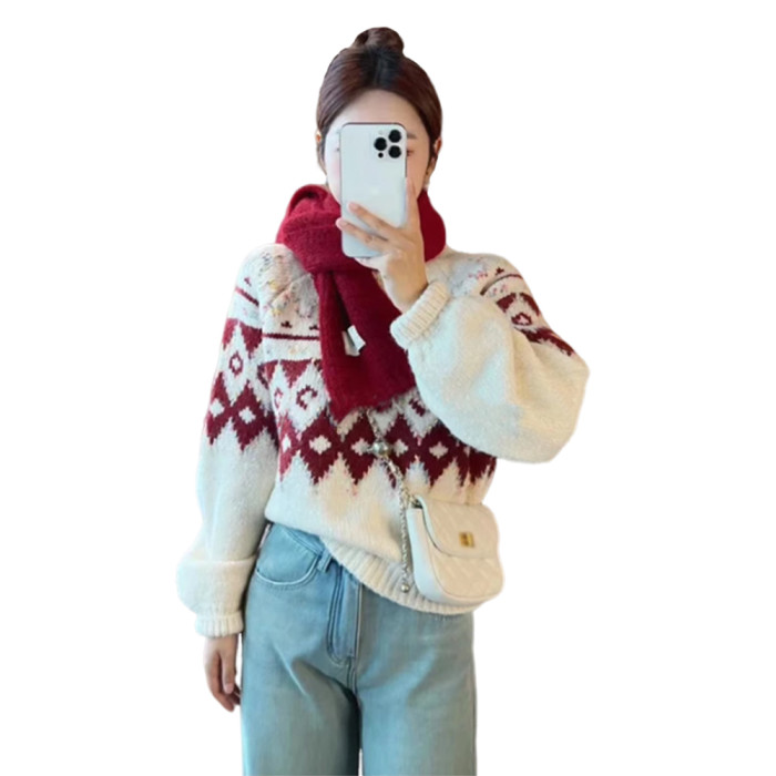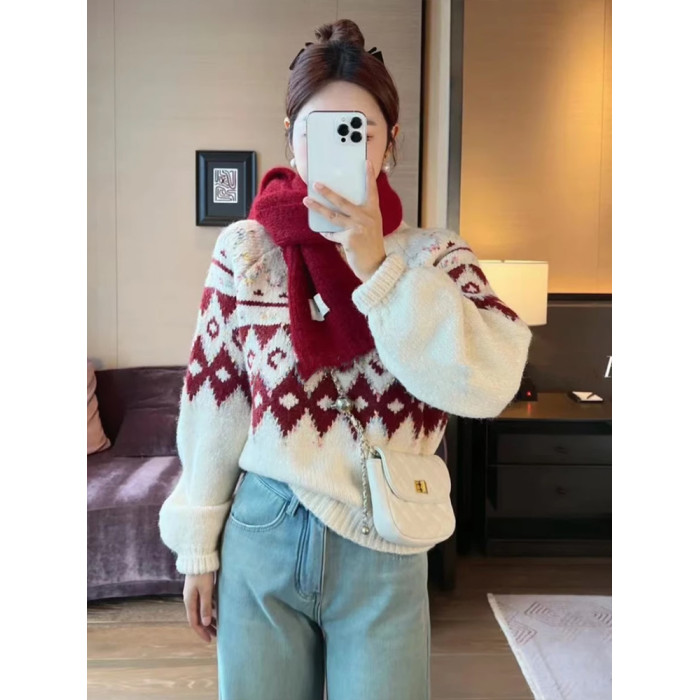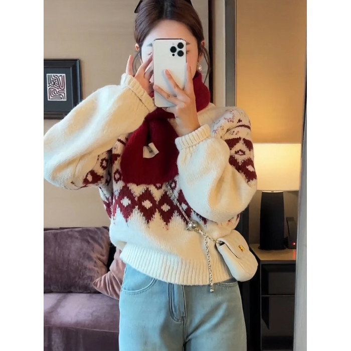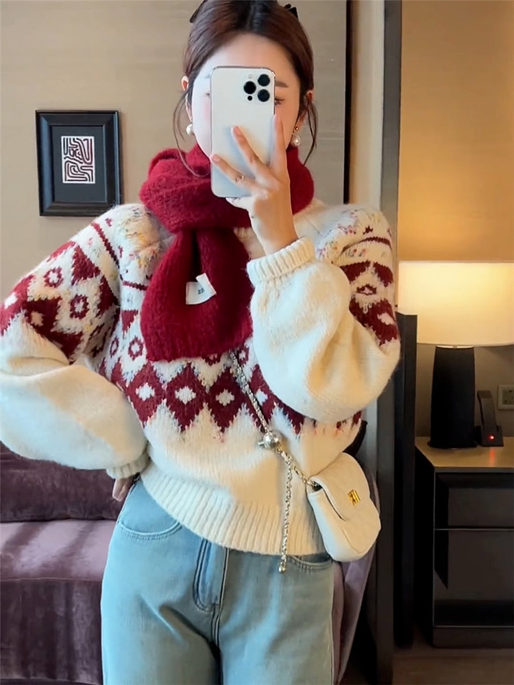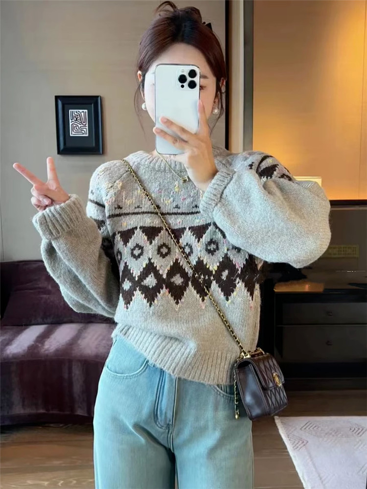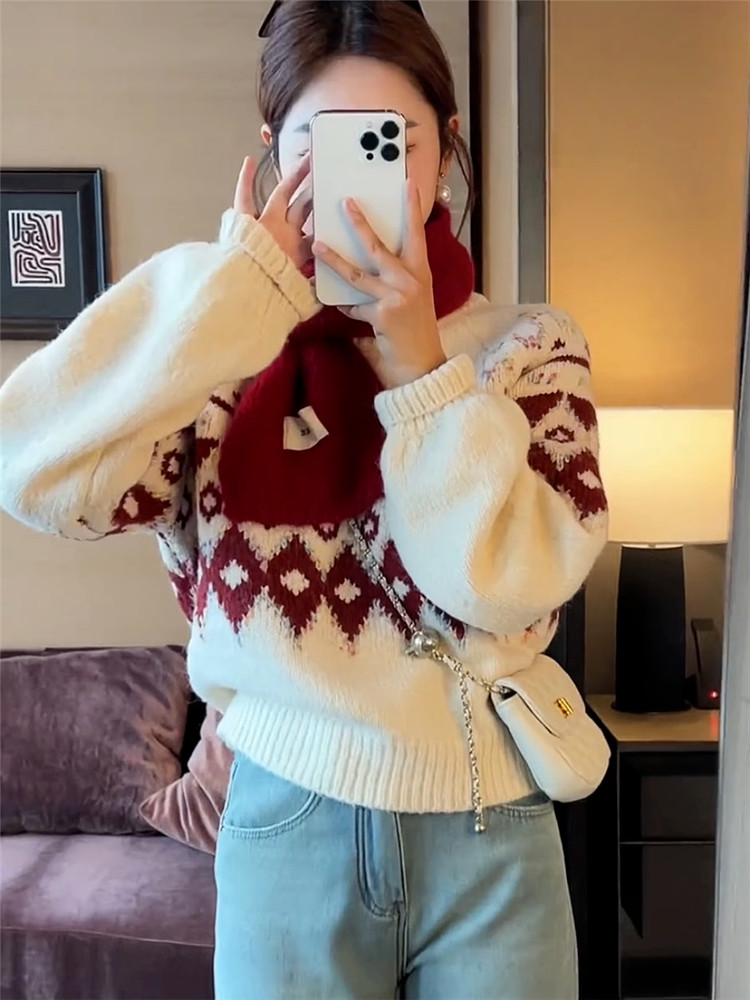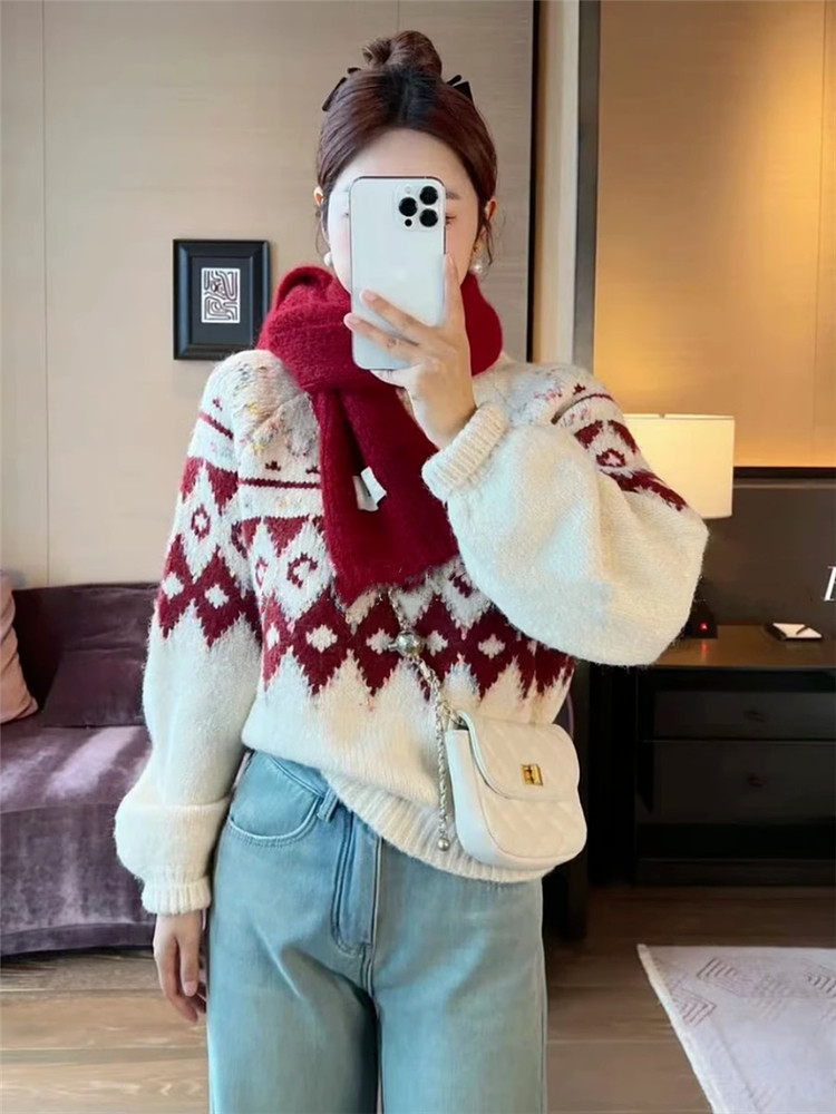 圓領套頭費爾島毛衣女秋冬季2025新款慵懶加厚內搭打底針織衫上衣